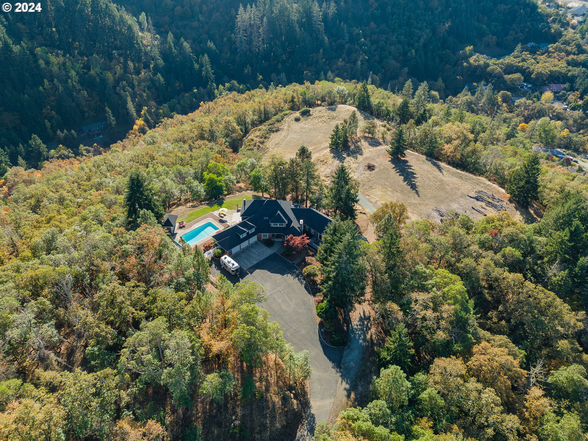 This is more than just a home; it’s a lifestyle! Your dream property is a stunning classic estate nestled on almost 30 lush private acres. One of few true luxury homes in Douglas County, this beautiful home offers almost 6,000 sqft of luxurious living space. The magical setting features sweeping, panoramic views encompassing open skyline and emerald green forest, an incredible glimpse of nature and wildlife at your doorstep. The expansive outdoor living space and sparkling pool can feel like a sublime summer house or cozy winter retreat. Upon entering you are greeted with a grand staircase and foyer to make an impressive first impression. The stunning custom kitchen featuring high end appliances, coffered ceilings, huge island, built in breakfast nook and wet bar, is an entertainers dream. Paired with the gorgeous formal dining room with fireplace and adjoining conversation cove, this home is meticulously crafted for both grand entertaining and intimate gatherings. The newly constructed master suite is nothing short of aluxury 5 star hotel experience. From the glamorous walk in closet to the swoon worthy spa-like master bath with heated floors and oversized walk in shower to the romantic ambiance of the fire lit bedroom, you’ll never want to leave the house. The beautifully appointed additional junior suites and guest rooms on the upper floor allows ample space for comfortable multigenerational living and hosting guests alike. The ground floor home office can also double as an additional bedroom. The finished basement and additional RV garage provides for shop space, home gym, RV, boat and toy storage. Additional buildable lot offers endless opportunities to build an additional home, shop, vacation rental or anything your heart desires. This is a home that you need to see to believe! Seller is offering buyer concessions towards closing costs, pre paids, and buy downs/discount points!