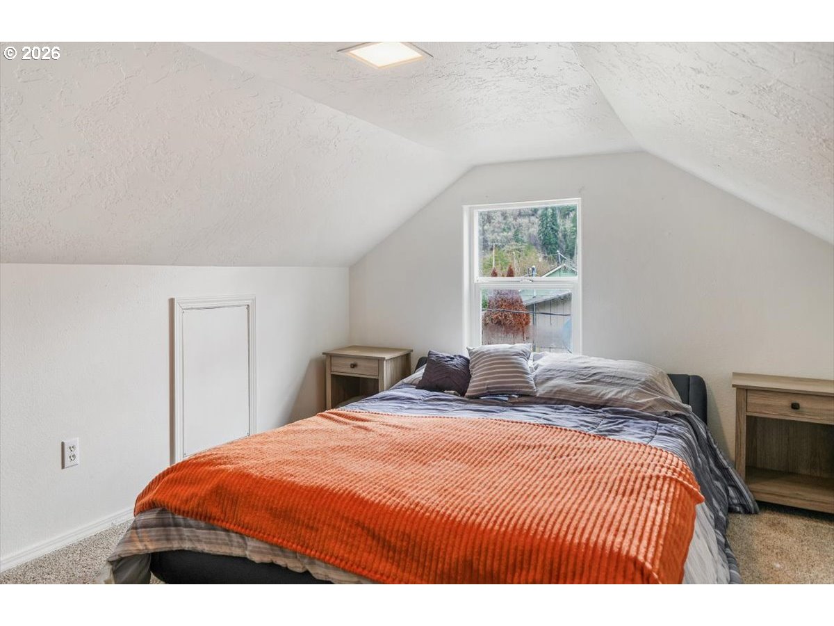 Welcome to 422 Elder Street in Drain. This beautifully updated home is move-in ready and boasts a host of attractive features. Step inside to discover modern updates throughout, including new flooring, windows, and fresh interior and exterior paint. The spacious open-concept kitchen and dining area are perfect for entertaining, offering ample storage and counter space, along with updated appliances. Relax in the cozy living room, featuring an electric fireplace and plenty of room for your favorite furniture. The primary bedroom is conveniently located on the main floor, alongside a second bedroom and the stunning main bathroom. The fully renovated main bathroom showcases stylish finishes and custom tile work, adding a touch of elegance. Venture upstairs to find a large loft that serves as a versatile third bedroom, ideal for guests or a home office. For added convenience, an indoor laundry area simplifies daily chores. Outside, enjoy the expansive fully fenced backyard, providing privacy and endless possibilities for gardening, pets, and entertaining. The spacious back patio is perfect for summer BBQs, making it an ideal spot for gatherings. Additionally, the oversized detached two-car garage offers ample storage space, while extra driveway parking and convenient alley access make RV parking a breeze. This property also presents an exciting investment opportunity, with the potential to partition the lot for future developmentâbuyers are encouraged to complete their due diligence with the county regarding requirements. An inspection report is available, with many repairs already completed, and the seller plans to install a new roof prior to closing. Shown by appointment only. Contact your broker today to schedule a private showing!