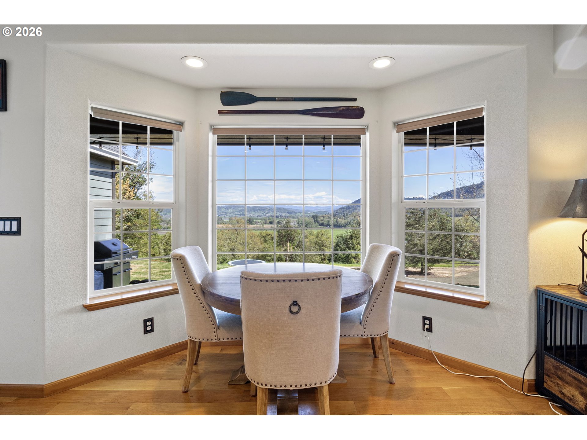 Private 5-Acre Retreat with Panoramic Views, Guest Studio & Dual AccessCustom-built retreat on 5 private acres with breathtaking panoramic views in every direction, overlooking vineyards, the South Umpqua River, and the Callahan Mountains.Designed for true single-level living, this 3 bed, 2.5 bath home offers an open-concept layout with granite countertops, gas appliances, vaulted cedar ceilings, wood floors, and a striking floor-to-ceiling stone fireplace. Large windows throughout frame the surrounding landscape, bringing the outdoors in from nearly every room.The spacious primary suite features a walk-in closet, double vanity, and tiled walk-in shower.Set behind a gated entrance, the property offers privacy, usable land, a covered patio, fenced yard, and RV parking, perfect for enjoying the peaceful setting and expansive views. Dual access from separate roads provides added convenience for trailers, RVs, or flexible use of the property. A standout feature is the detached shop with a fully equipped studio, including kitchen, bath, and laundry, ideal for guest accommodations, extended living, or potential rental use. Ask about assumable VA loan. Properties like this rarely come available! Call today for your private tour!