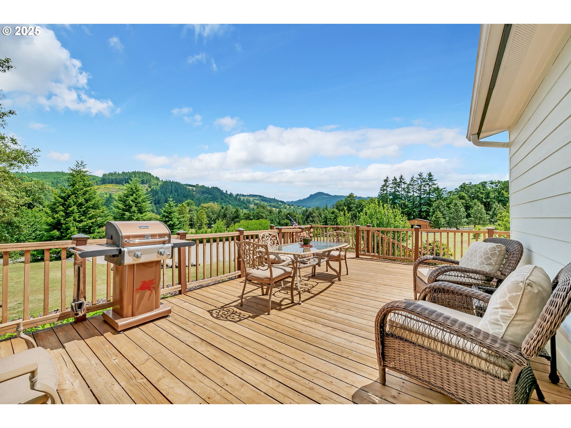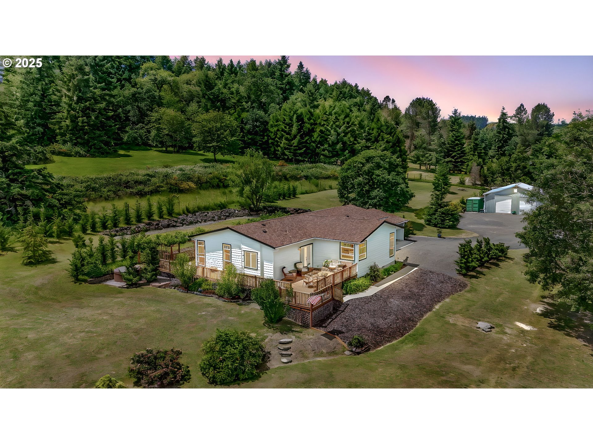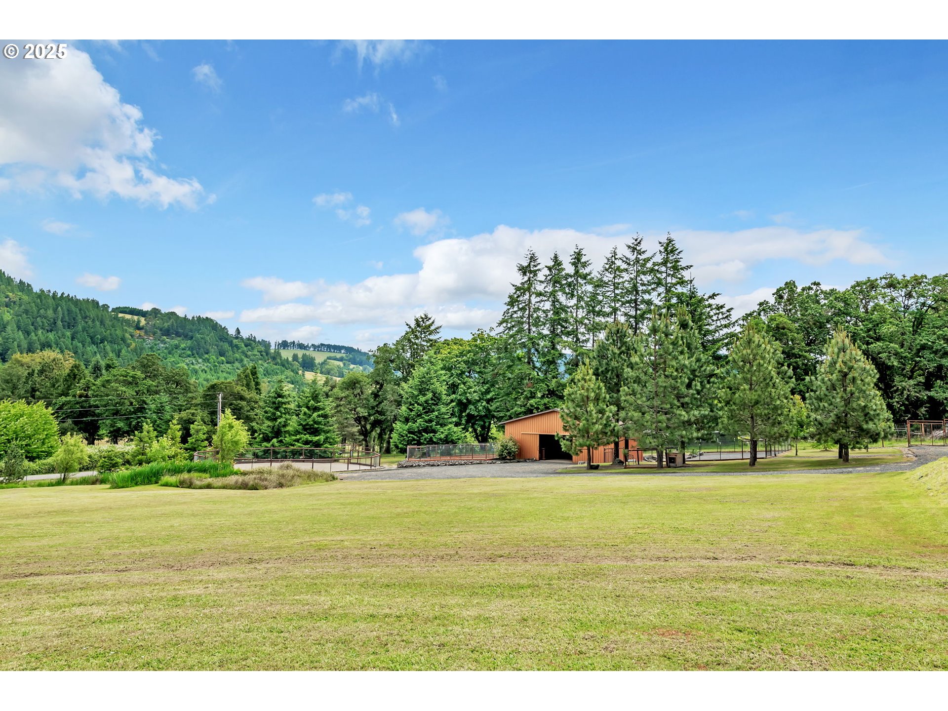 Here’s an exceptional property that’s the unique blend of functionality, beauty & serenity. Designed w/ versatility in mind, this property is ideal for EQUESTRIAN ENTHUSIASTS, HOBBY FARMERS, WORKSHOP LOVERS, or anyone seeking PRIVACY w/ SWEEPING MOUNTAIN VIEWS. Furthermore, enjoy WORLD-CLASS STEELHEAD, SALMON & BASS FISHING, w/ the PRIVATE ACCESS to the UMPQUA RIVER. Equestrian Highlights: Exquisitely designed 2017-built barn that features three matted 12’x12’ stalls w/ attached runs, a finished tack room, hay & shaving storage, an outdoor wash rack & convenient trailer parking. RIDE YEAR-AROUND in the 82’x140’ all-weather engineered outdoor arena or the 60-ft round pen- both designed w/ advanced drainage & premium/dust-free footing. The impressive 1,440 SQFT INSULATED WORKSHOP comes fully paneled w/ two RV doors, a concrete floor, 220 power, ample storage, & RV hook-up- perfect for projects, storage, or working from home. Two 10’x20’ storage sheds & a metal storage container provide additional flexibility. The 2008 triple-wide manufactured home is SPACIOUS & BRIGHT, offering an OPEN FLOOR PLAN ideal for both relaxation & entertaining. Recent improvements include a new roof (2024), exterior paint, new water heater & well pump. Step onto the 1,080 sq. ft. deck to soak in the INCREDIBLE MOUNTAIN VIEWS- or enjoy from your private hot tub! Throughout the property, you’ll find IMPRESSIVELY DESIGNED DRAINAGE, GENEROUS PASTURE SPACE, PERIMETER FENCING, MULTIPLE GATE ENTRIES, AMPLE PARKING & TURN-AROUND AREAS- making this property as practical as it is serene. You’ll also find a FRUIT TREE ORCHARD, multiple GARDEN AREAS & a PRIVATE POND. Conveniently located just 8 miles from town, this property offers the PERFECT BALANCE OF COUNTRY LIVING W/ MODERN ACCESSIBILITY. Pride of ownership is evident throughout this immaculately maintained property- offered at an exceptional value for all the features included. Don't miss the opportunity to make it yours!