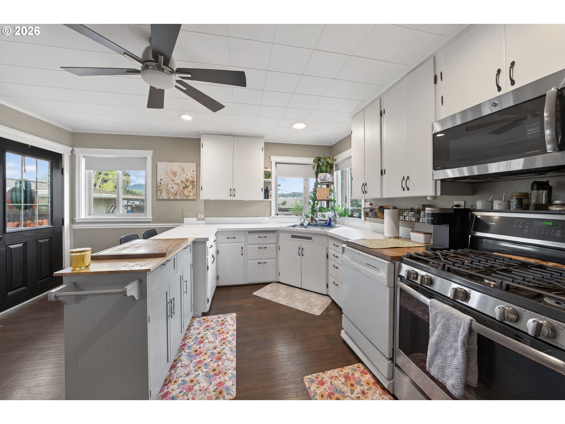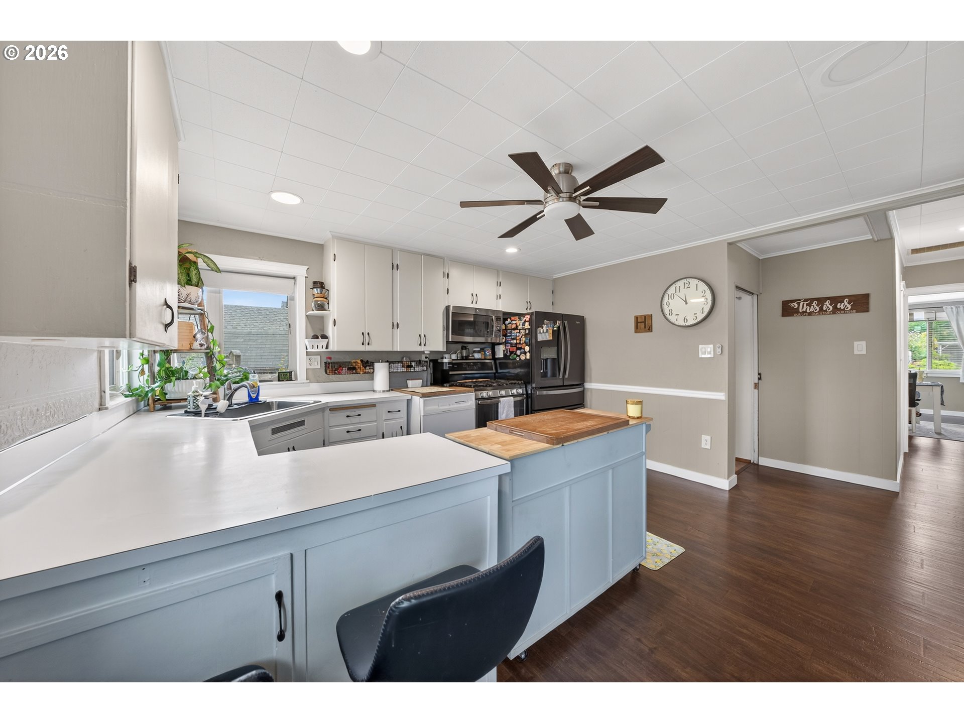 On a standout corner lot in West Roseburg, this home brings the space, style, and easy living vibe buyers are chasing right now. The yard is a whole experience, with mature landscaping, an inviting front presence, and a fully fenced backyard with real room to live in. Think summer evenings on the patio, space for pets to roam, and raised garden beds ready for your next harvest, with plenty of lawn left over. RV parking, a large carport, and extra storage mean you have the function to match the lifestyle.Inside, it is all dialed in. Fresh updates, laminate flooring throughout, new ceiling fans, and an open layout that keeps everything connected. The wood stove insert adds that cozy, homey touch that never goes out of style. Bedrooms are comfortably sized, and the updated bath with a walk in shower keeps things feeling current and clean.It is the kind of place that does not try too hard but absolutely delivers.