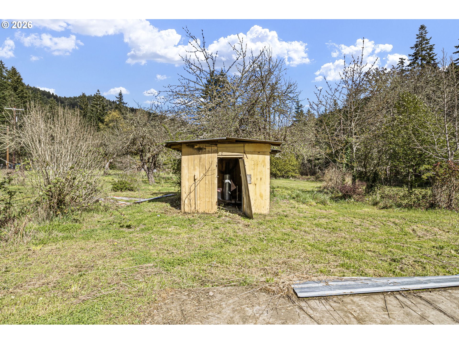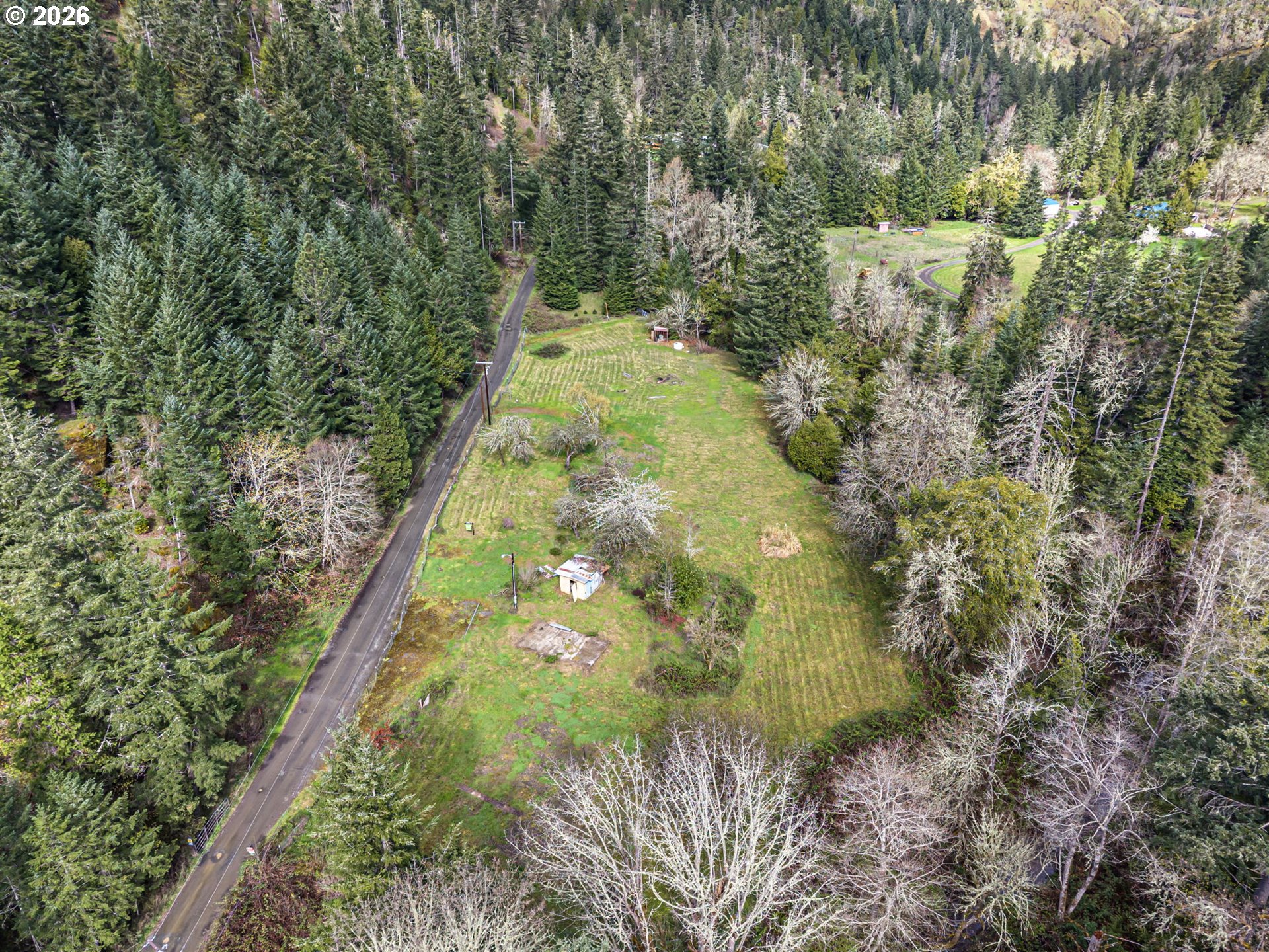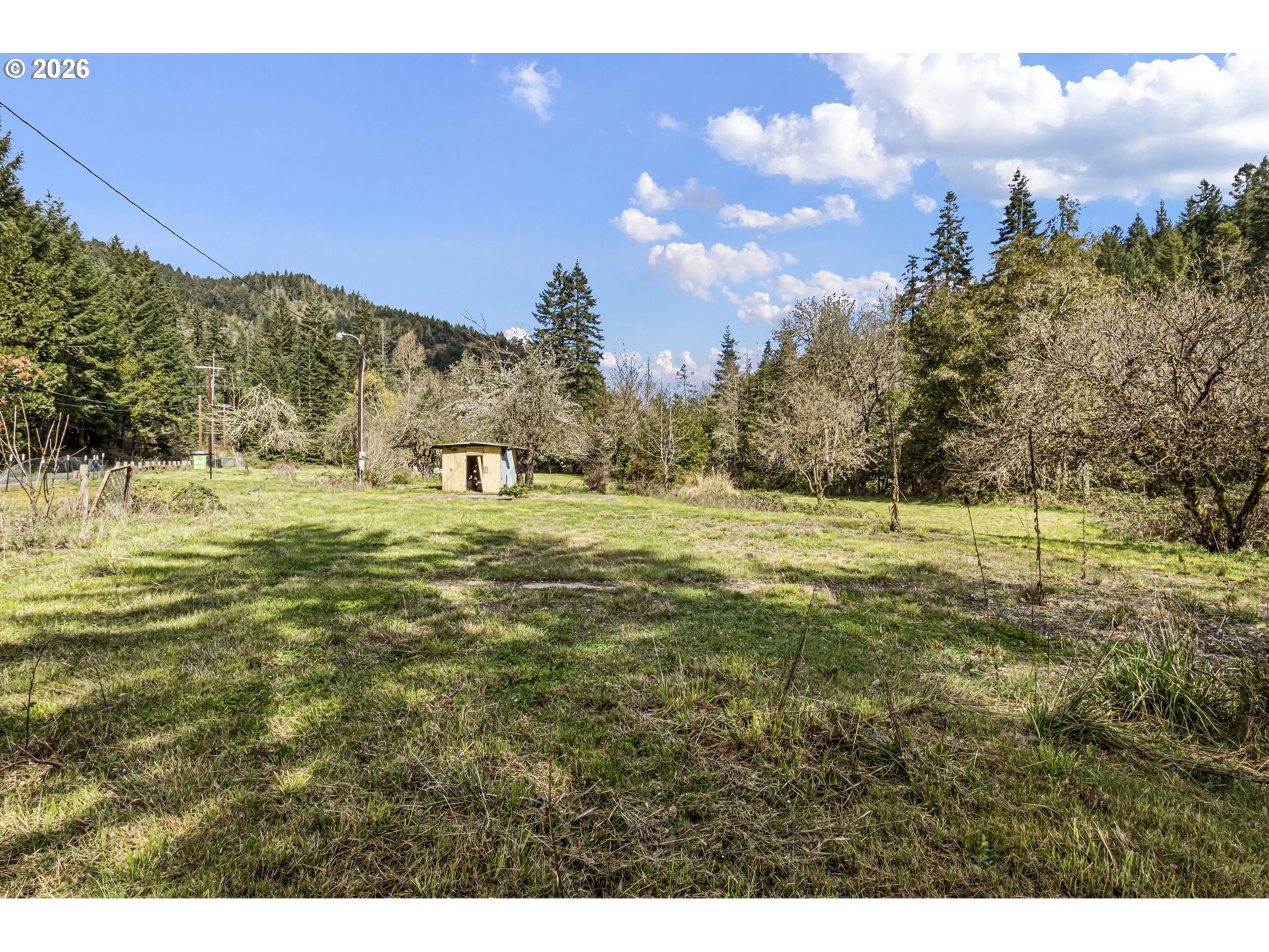 Private 16.5+ acres in beautiful Sibold Canyon with a cleared, level homesite ready for your build. Power is available onsite, offering a valuable head start. Enjoy pasture ground, fruit trees, and peaceful frontage along seasonal Porter Creek. Trails and an access road wind through the timbered hillside for recreation and exploration. Wildlife is frequently seen throughout the property. A unique blend of usability, privacy, and natural beauty just 15 minutes from town and 1.5 hours to the Oregon Coast.