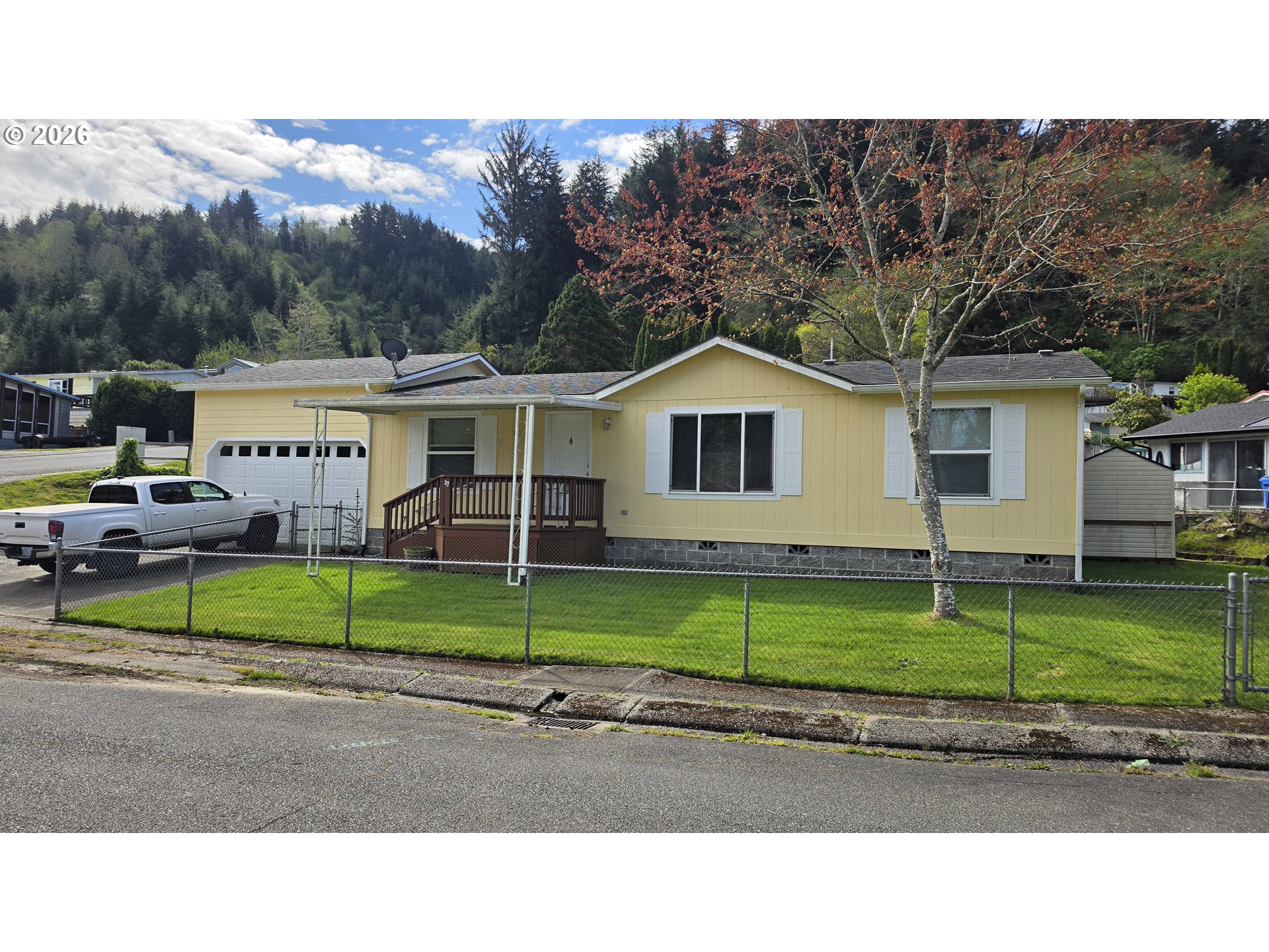 Charming and well-maintained/updated 1997 manufactured home on 0.21 acres with stunning Umpqua River views. Featuring a newer roof, 3 bedrooms, 2 bathrooms, stainless steel appliances, laminate and carpet flooring, and a Trex-covered deck perfect for enjoying the scenery. The fenced yard, detached garage, and RV parking add convenience to this rare find. A must-see property!