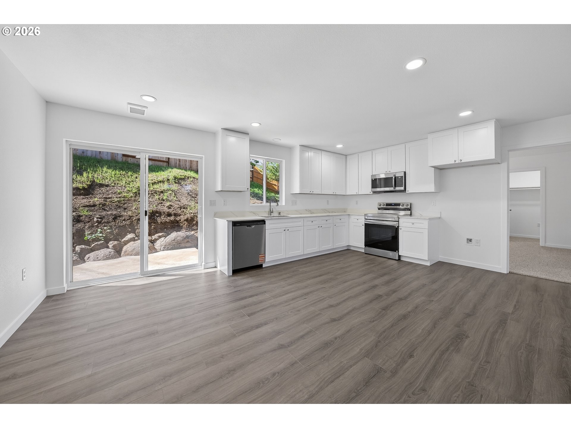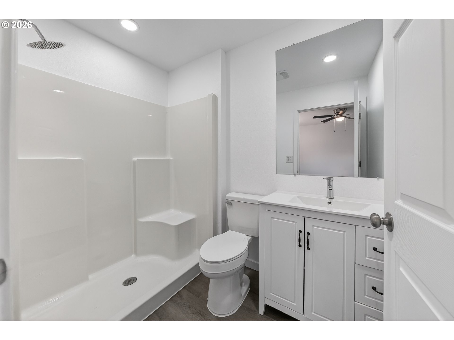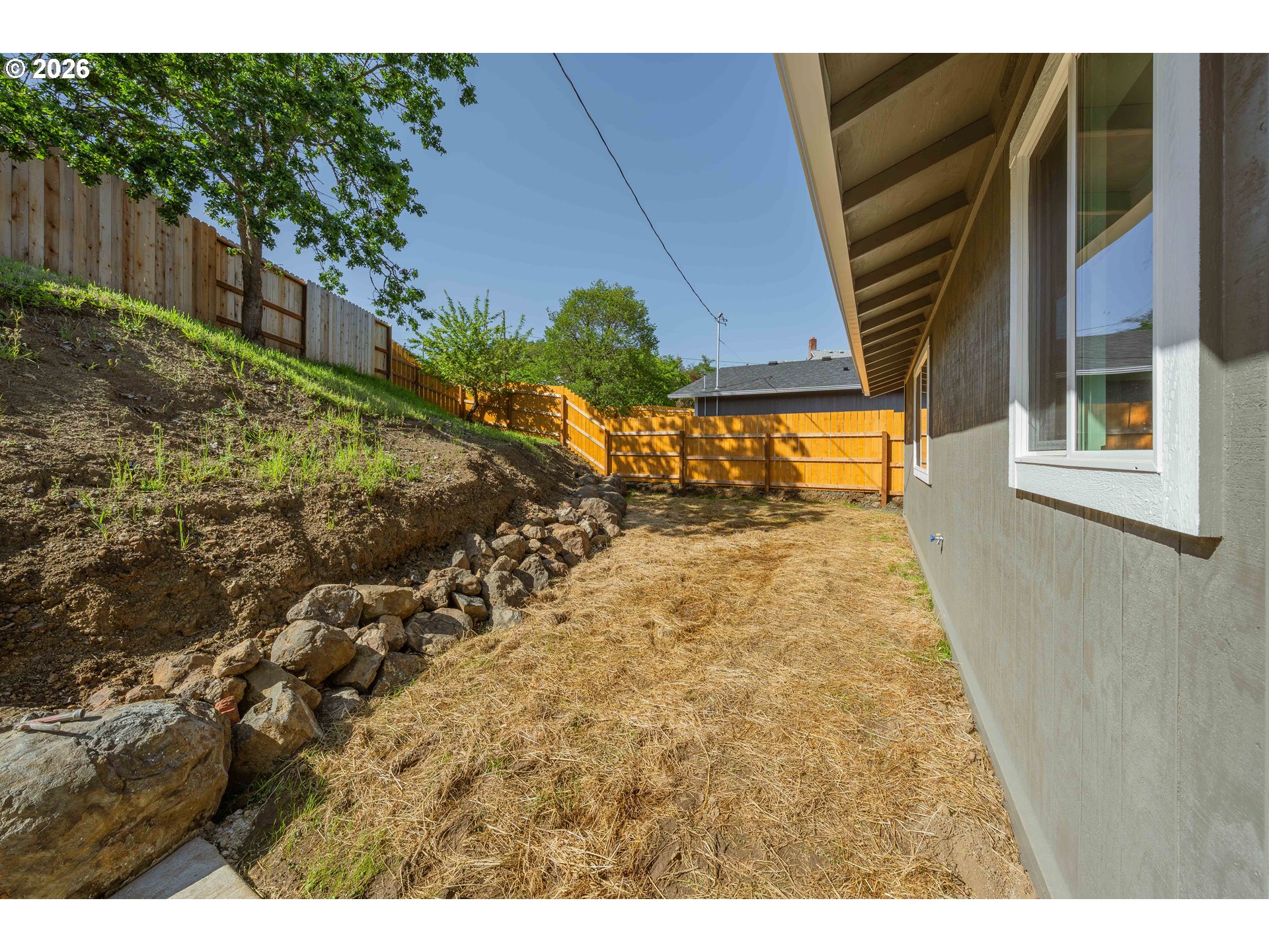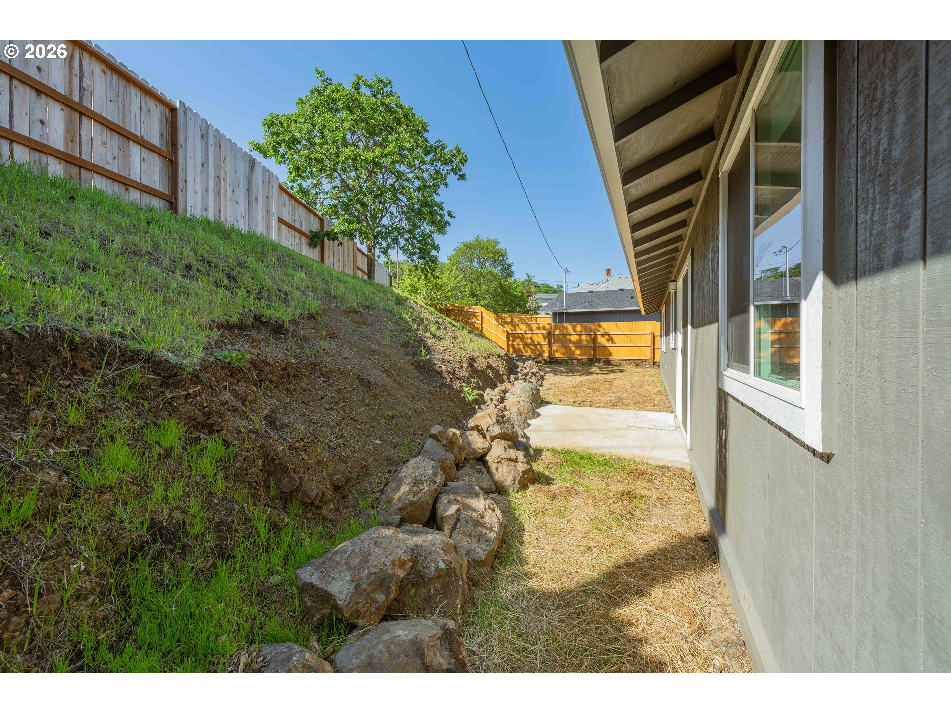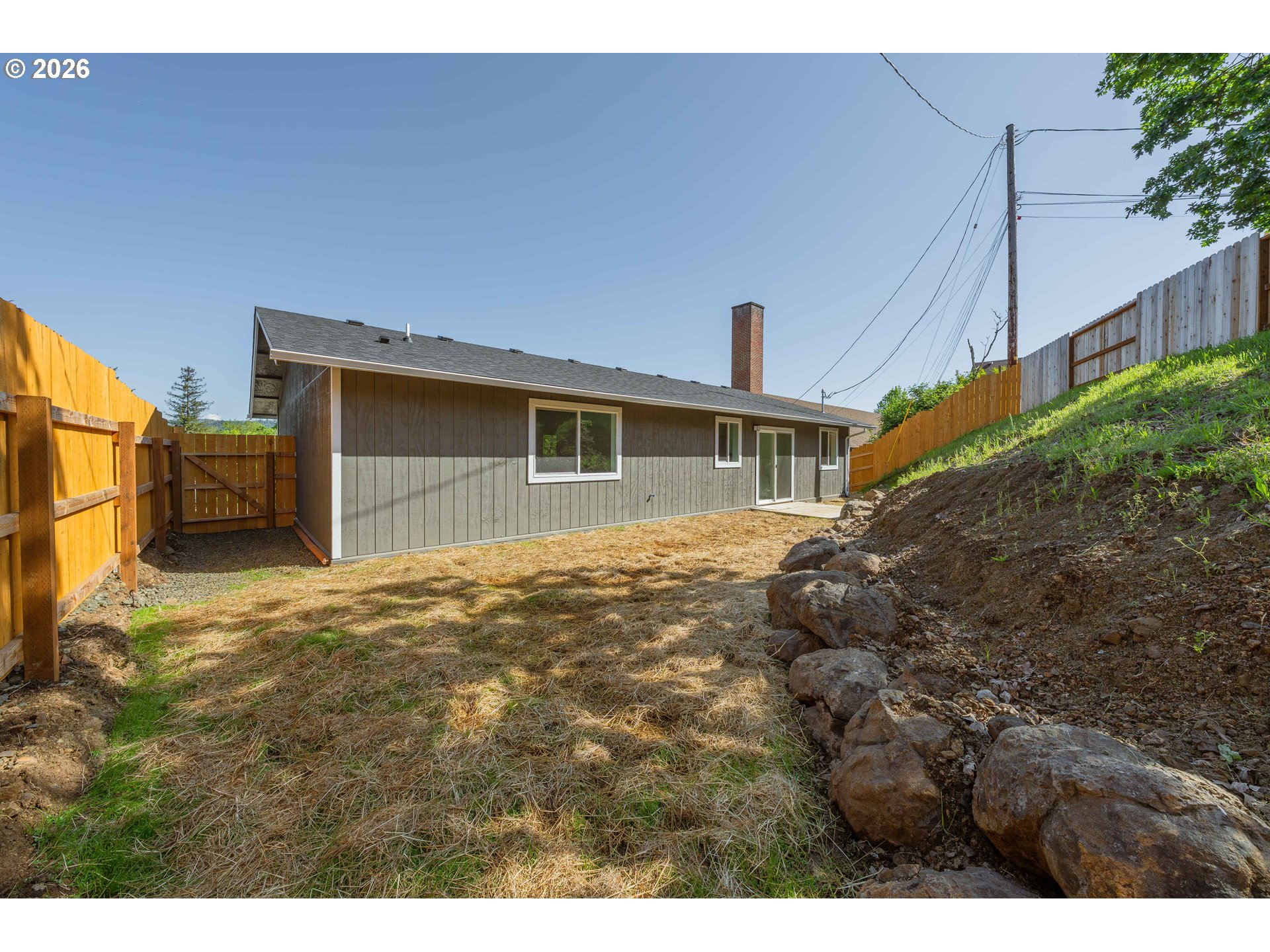 Brand-new 3-bedroom, 2-bath home featuring a bright, open floor plan designed for modern living and everyday comfort. This thoughtfully designed single-level home offers a desirable split floor layout, providing added privacy with a spacious primary suite complete with a walk-in shower and a large walk-in closet.The open-concept living area creates the perfect space for gathering, with plenty of room to incorporate a full dining table or even add your own kitchen island for an eating bar. The kitchen is both functional and inviting, featuring a sliding glass door that leads out to a cozy back porch—ideal for enjoying your morning coffee or unwinding in the evenings.Outside, the backyard offers a private and peaceful setting with a gentle slope, highlighted by a poured concrete patio with tasteful rock accents—perfect for entertaining or relaxing. Additional features include a concrete driveway, single-car garage, and a low-maintenance yard for easy upkeep.Ideally located near downtown Roseburg, this home provides convenient access to shopping, dining, and local amenities, making it a perfect blend of comfort, style, and convenience.