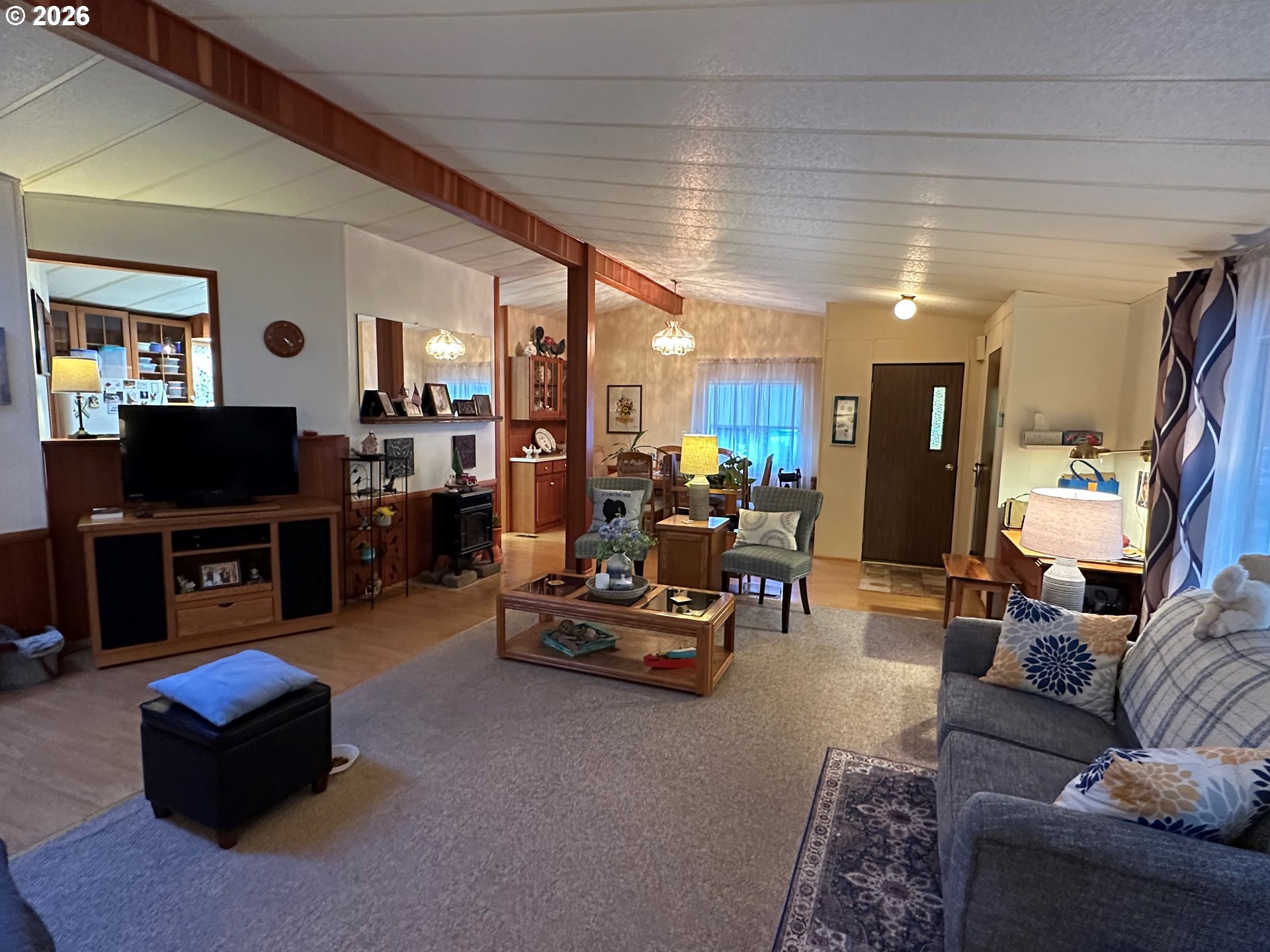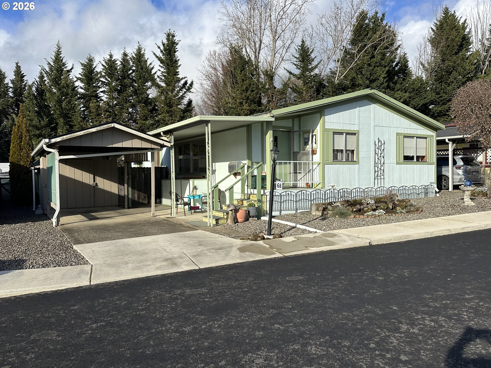 Very well maintained spacious double wide home in highly sought after Woodland Hills Senior Estate for residents 55 and up. Three bedroom two bath home features an open floor-plan with vaulted ceilings, spacious kitchen with custom built wood cabinets with pullouts,all appliances in new condition are included, including stack-able washer dryer. Outside has covered back porch, small workshop and storage shed, and fenced yard. Both bathrooms nicely updated! Has new carpeting in 2 bedrooms, vinyl flooring in 3rd. Primary bedroom also has walk-in shower. Keep cozy year round with with heat-pump including central air. Immaculately clean and move-in ready! Convenient to bus lines and shopping! Call today for your private showing, you'll be glad you did!