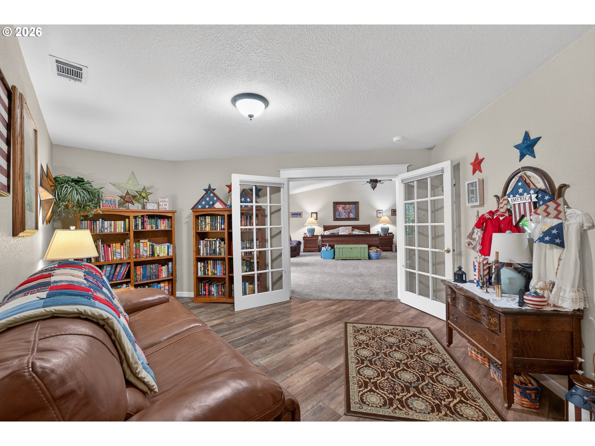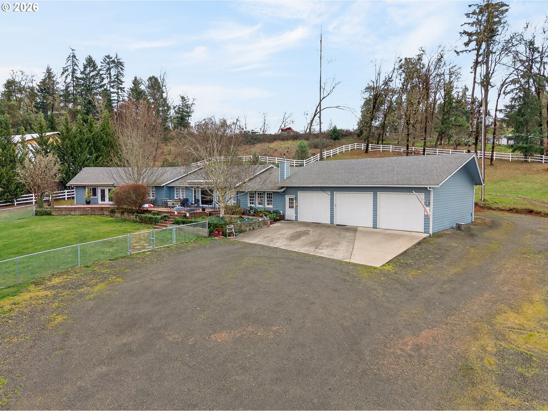 Welcome to this beautifully appointed 4-bedroom, 2-bath home offering space, comfort and exceptional amenities inside and out. Step inside to find a spacious living room and separate family room featuring a stylish LVP flooring, perfect for everyday living and entertaining. The primary suite is complete with French doors that open to the deck, a cozy sitting area entry, double walk-in closets, plush carpet, and two ceiling fans for year-round comfort. The luxurious bathroom features tile flooring, granite countertops, dual ceiling fans, a relaxing jetted jacuzzi tub, and a separate stand-up shower. The kitchen is designed for function and beauty with granite countertops, a center island, custom oak cabinetry, an oversized stainless steel refrigerator, and the rare convenience of two dishwashers - ideal for gatherings and busy households. The tiled laundry room offers abundant storage space and includes the washer and dryer. Outdoor living is just as impressive. A Trex deck spans the full length of the front of the home, with a retractable awning covering a portion for shaded enjoyment. The back of the home also features a retractable shade awning and enclosed chain-link fencing. A vinyl fence outlines the property perimeter, with chain-link fencing just off the front deck - perfect for keeping small animal secure. The impressive 30x50 shop/RV storage includes electrical hookups, making it ideal for hobbies, storage, or recreational vehicles.