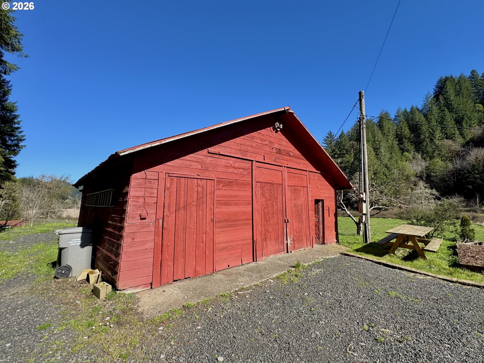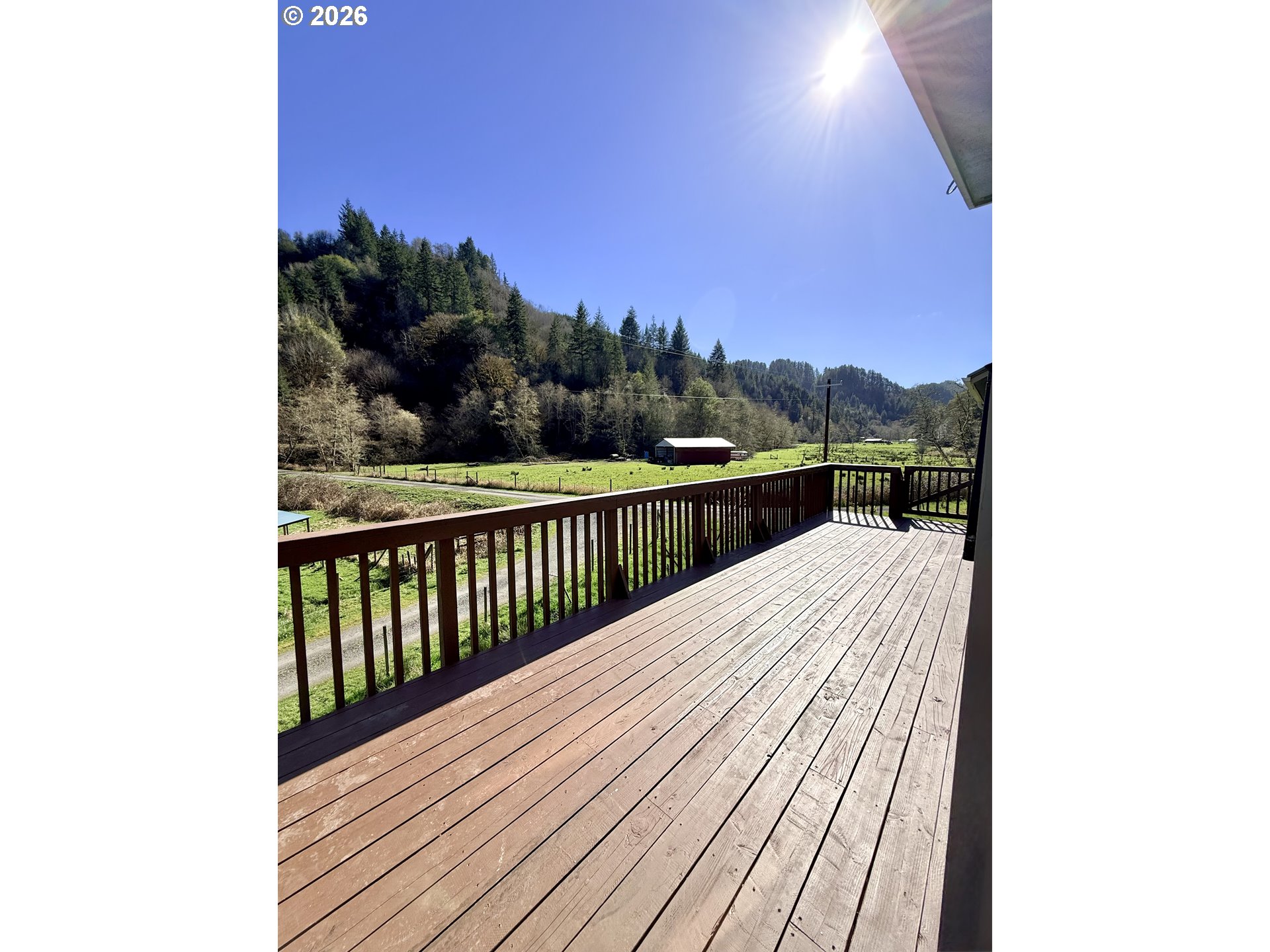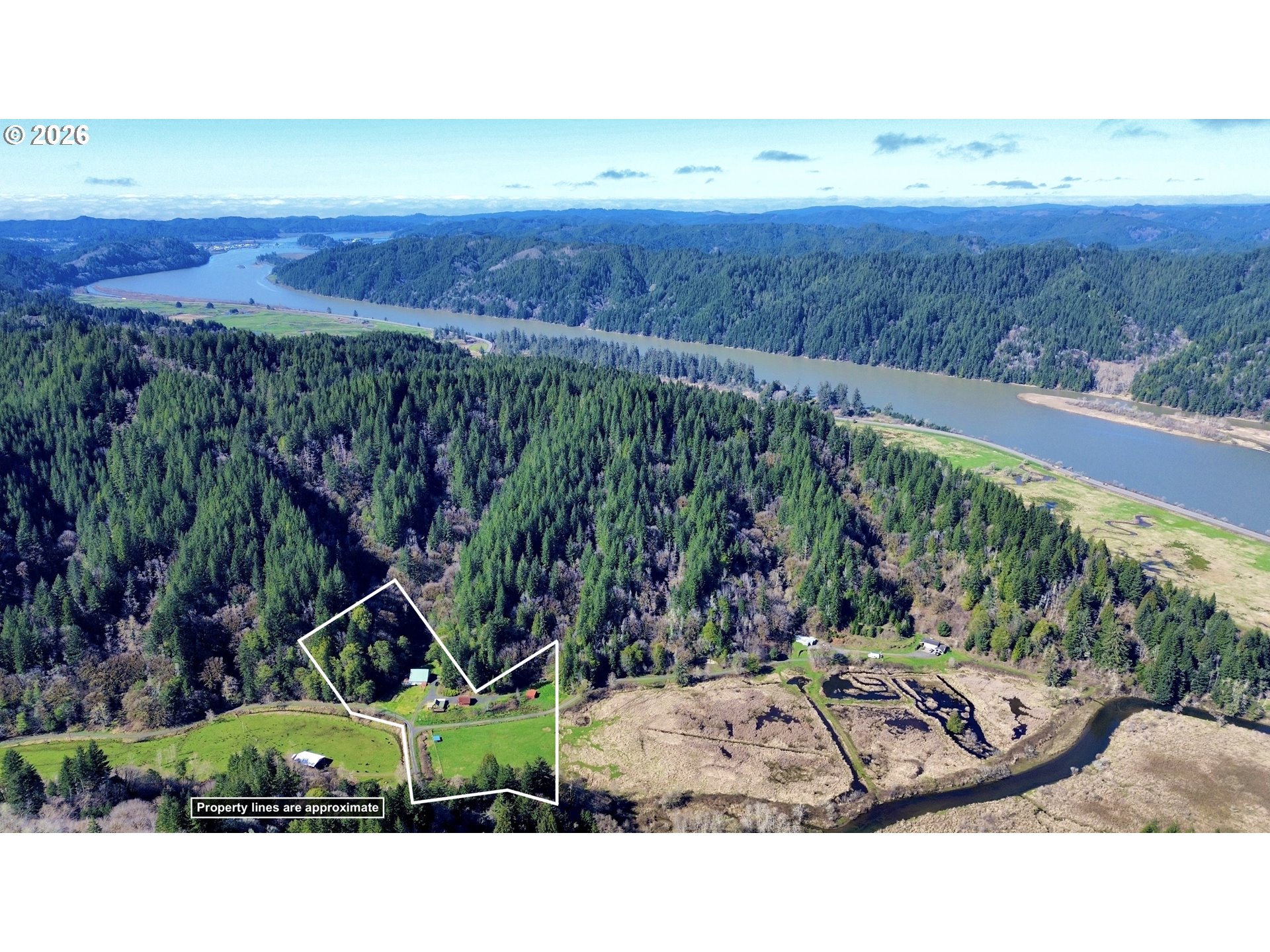 Tucked into the scenic Lower Umpqua River Basin, this private 6.32-acre farmstead offers a rare blend of natural beauty, productive land, and peaceful rural living. Surrounded by forested hills and abundant wildlife, the 2-bedroom, 2-bath home with 1,444 sq ft sits above the valley overlooking pasture, orchard, and creek. A year-round creek (Hakki Creek) winds through the property, creating a picturesque setting beside the massive two-story barn with power and five horse stalls. The land is thoughtfully developed for country living with fully fenced gardens and two lower fenced pastures for livestock, along with an established orchard featuring approximately 80 fruit trees, including apples, pears, peaches, plums, grapes, and kiwi. Outbuildings offer exceptional versatility with a shop with power, produce & meat locker building, chicken coops, and two loafing sheds (one powered). An irrigation well dedicated to agricultural use supports the farm while a separate domestic well services the home. Wildlife is a daily experience here. The property sits next to the Dean Creek Elk Reserve, where herds of Roosevelt elk are frequently seen roaming the surrounding valley. The nearby Umpqua River and wetlands provide a well-known bird sanctuary habitat, attracting a variety of waterfowl, raptors, and migratory birds throughout the year. Inside, the home features fresh interior updates, updated electrical, and a permitted pellet stove heating system. Relax on the deck overlooking the countryside, or step outside to enjoy the orchard, gardens, and creekside setting. With room for horses, tractors, farm equipment, ATVs, boats, and RV parking, this property is ideal for hobby farming, homesteading, or a peaceful rural retreat just minutes from Reedsport schools, shopping, and the Oregon Coast.