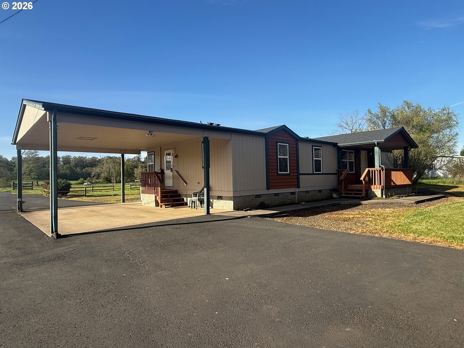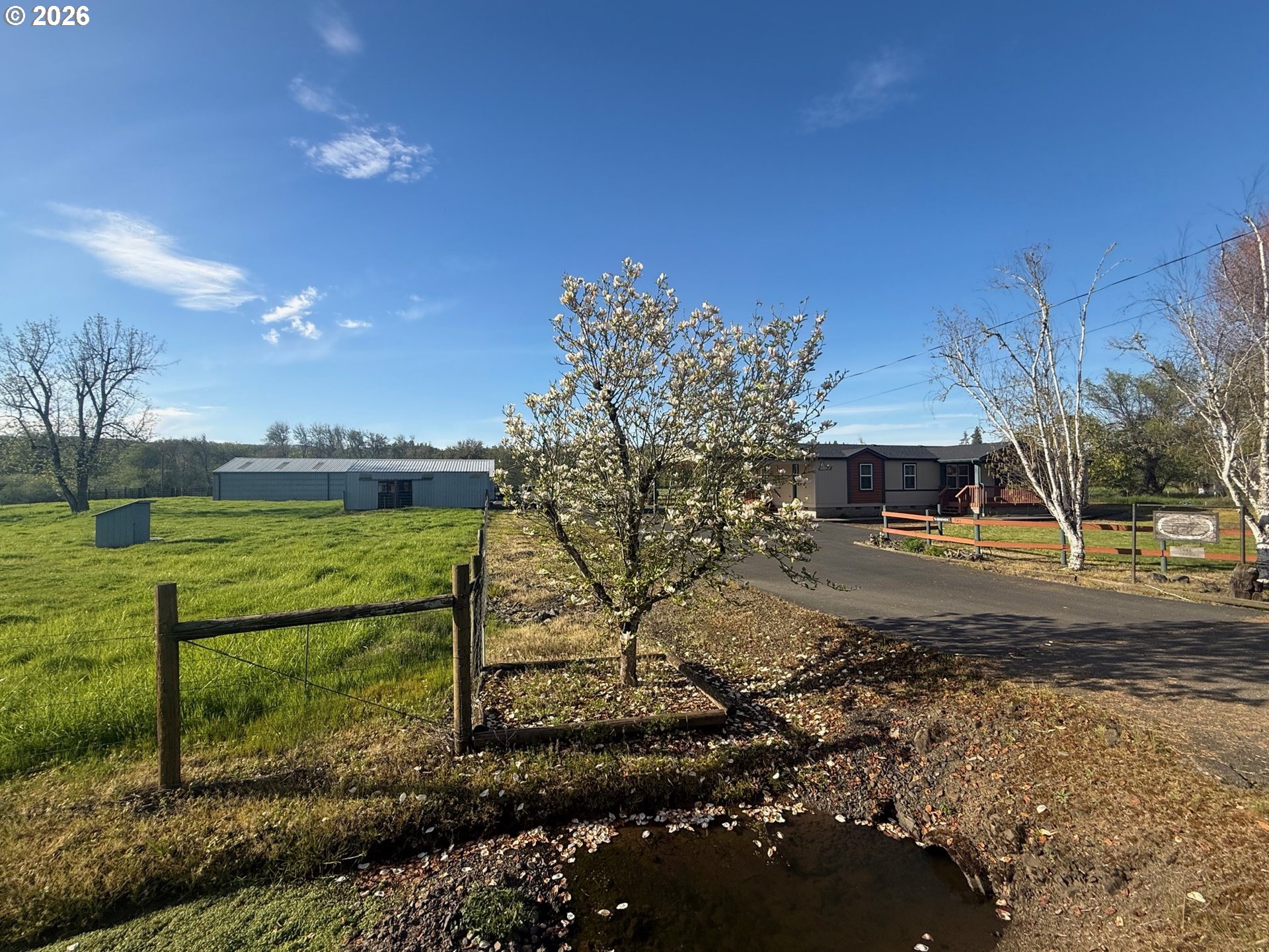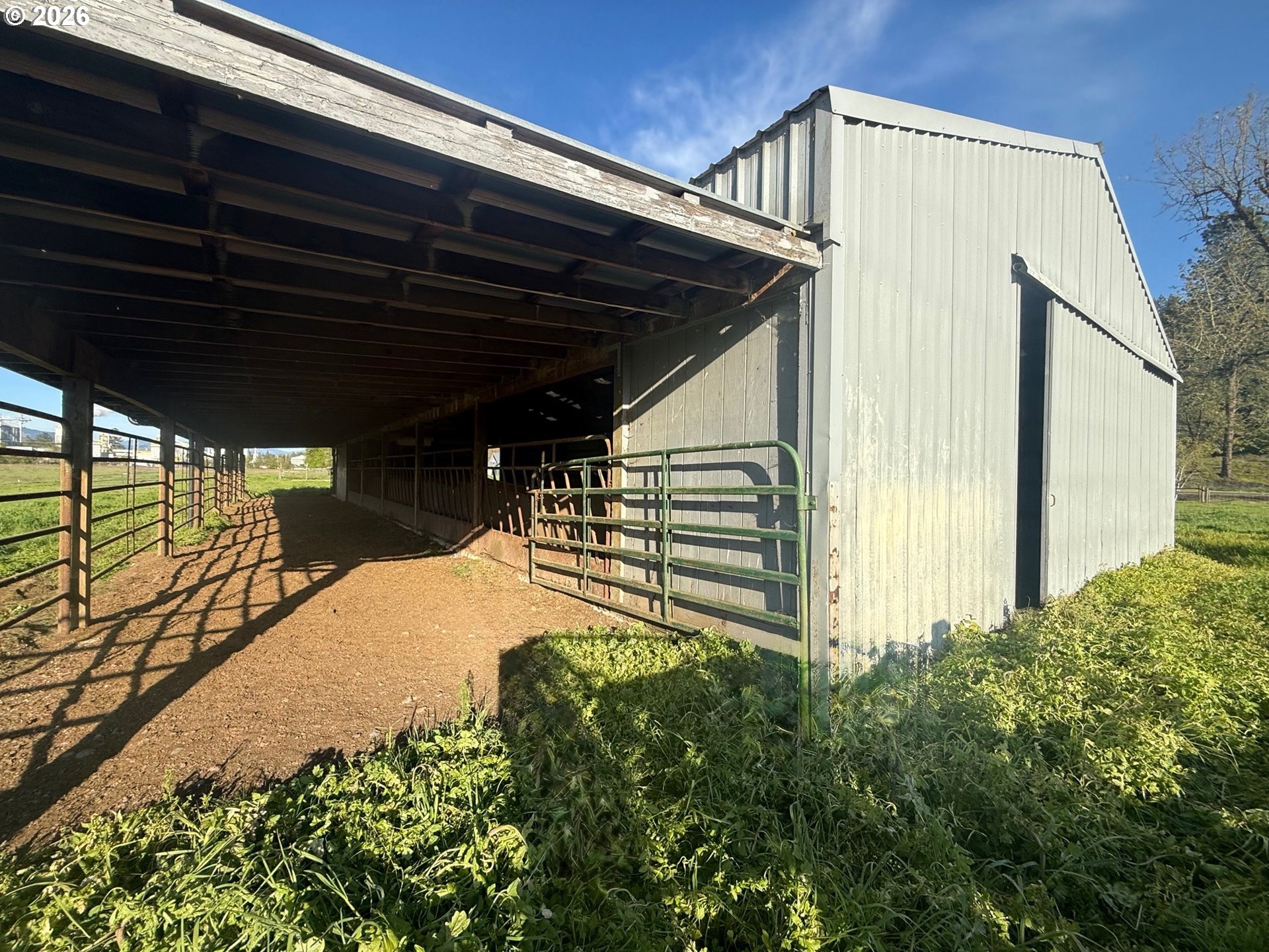 Discover a rare opportunity to own a fully equipped livestock and equestrian property designed for serious ranchers, breeders, or those seeking a true farm-to-table lifestyle. Spanning 28+ acres of fully usable ground, this exceptional offering is ideal for a purebred cattle operation, horse enthusiasts, or self-sustaining homestead operation. Abundant water from old irrigation rights on Calapooia Creek, which runs the length of the property, and good well, are the heart of this exceptional property. The custom-built barn has extensive hay storage and 40+ feet of indoor feed bunks, squeeze chute & working area, which support a productive and efficient operation. The separate horse barn has two stalls and room for a third. Thick, lush, irrigated pastures are fenced and cross fenced, making livestock rotation and management simple and effective. A separate barn is perfect for dogs or small animals. Irrigation pump and pipe are included, separate submergible delivers water through buried pipe to yard. The home is well maintained and offers a comfortable, functional layout. The spacious primary ensuite is privately separated by the living room and family room from three additional bedrooms and bathroom. The open-concept dining area features a large sliding glass door that frames stunning pastoral views, while a separate nook perfect space for an office or morning coffee. Recent updates include a roof and ducted heat pump, approximately one year old. Offered for sale for the first time since its creation, this is a truly special property combining quality improvements, abundant resources, and the ideal rural lifestyle.