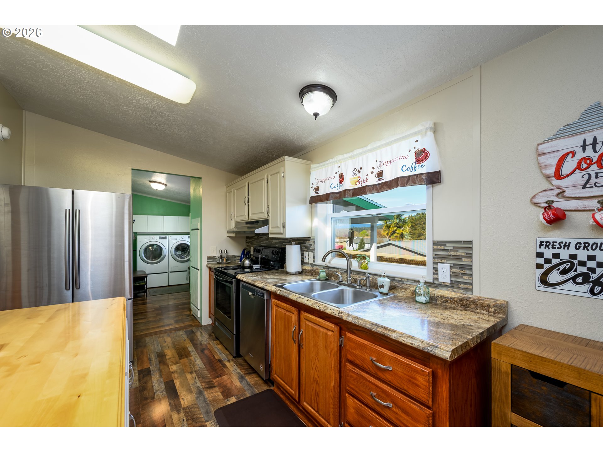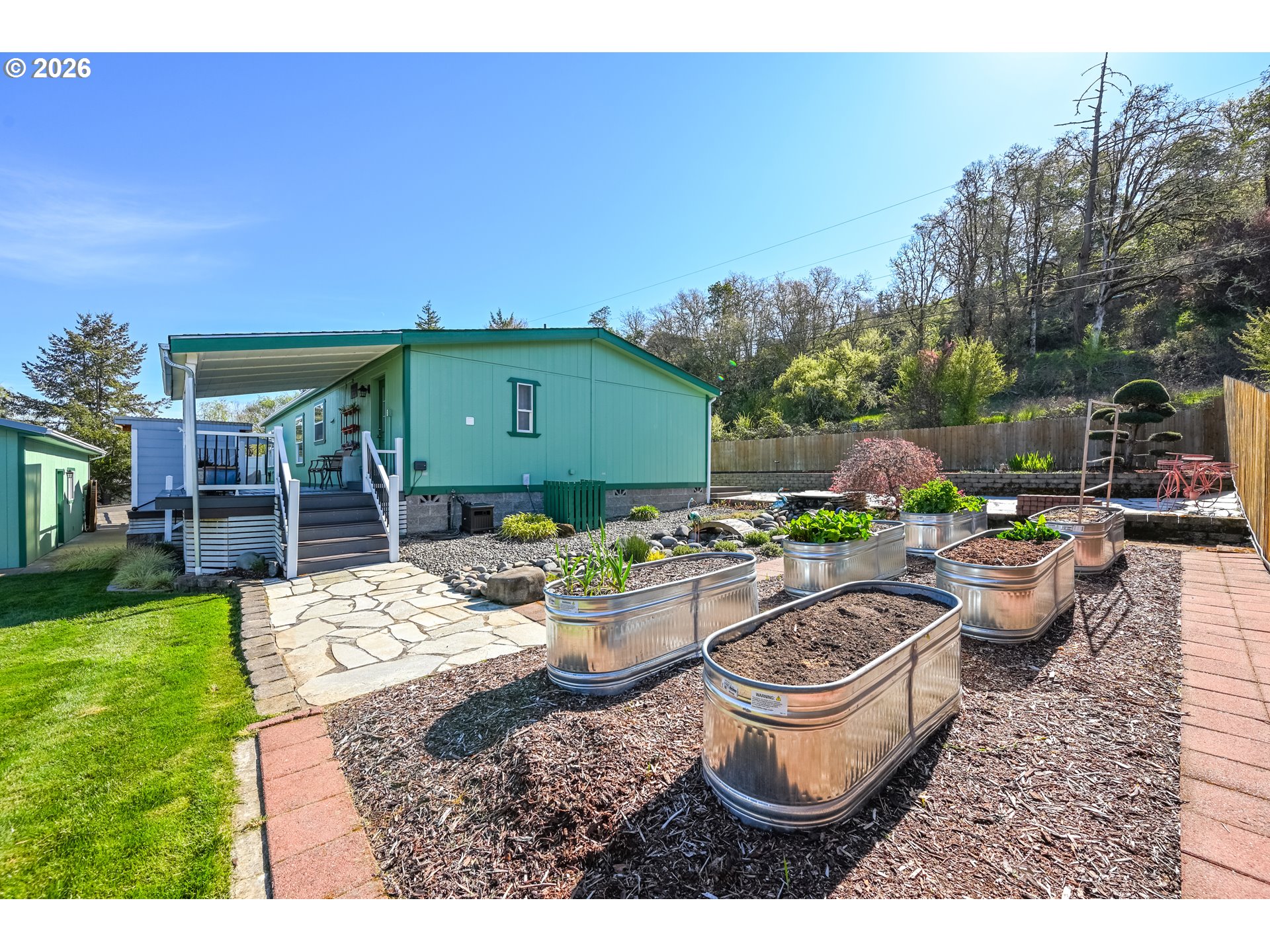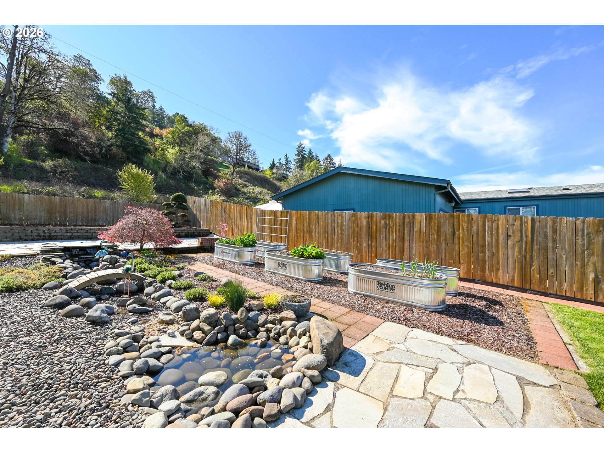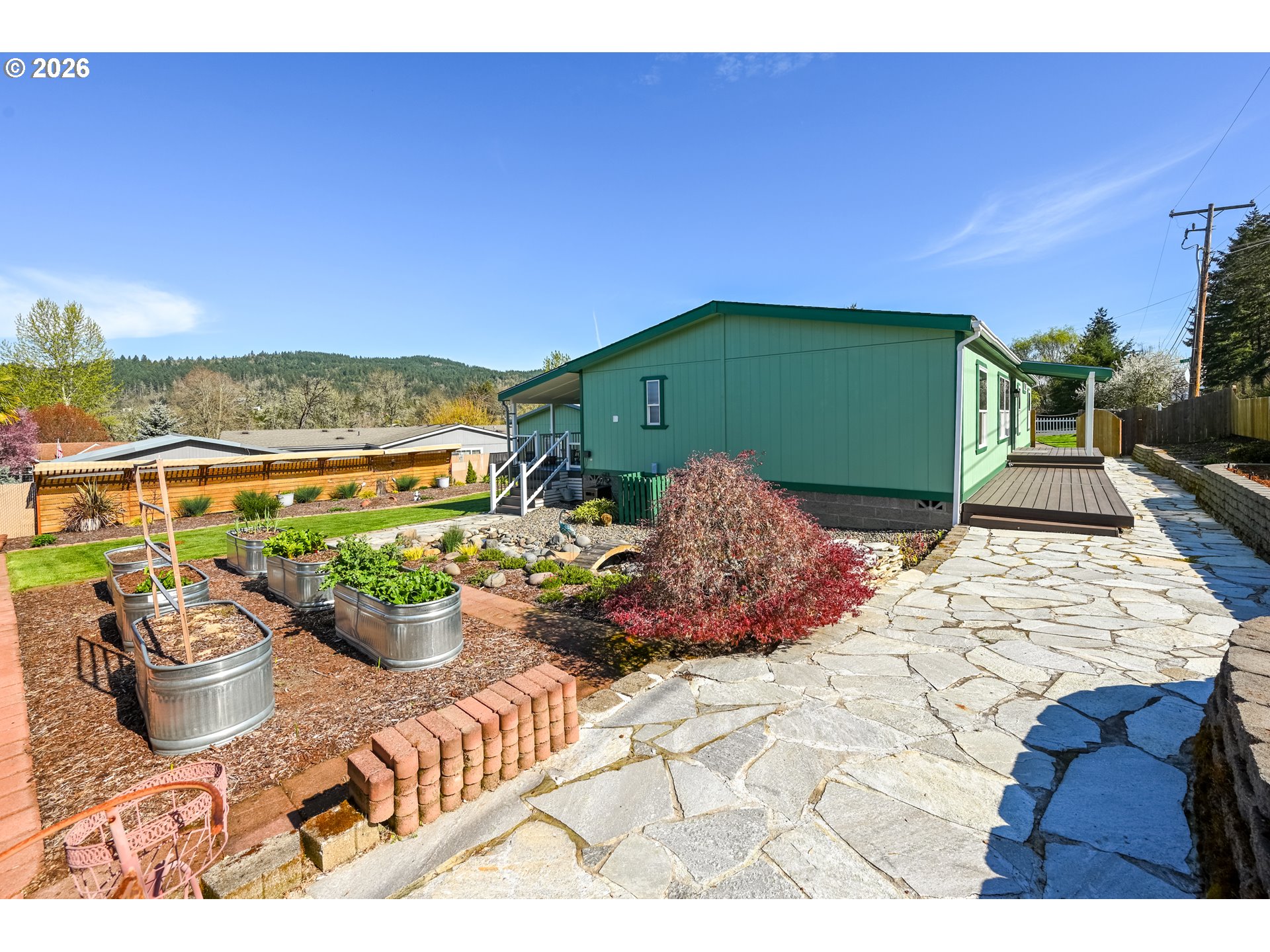 Experience a home that engages the senses—from the soothing sound of the backyard brook to the fragrant, cedar-lined primary closet. This Sutherlin property has been meticulously upgraded, creating a seamless blend of "Pacific Northwest Lodge" warmth and modern functionality. This isn't just a place to live; it’s a sanctuary designed for slow mornings on the deck and effortless living.Exterior & Outdoor Oasis: The curb appeal is immediate, featuring fresh exterior paint and updated gutters. Outdoor highlights include:Dual Trex Decks: Oversized front and rear decks provide the perfect stage for morning coffee or sunset dinners.Serene Landscaping: A private sanctuary featuring a custom stream water feature.Gardener’s Dream: Fully fenced with high-quality cedar, the yard includes raised beds and an automatic watering system for easy maintenance.Inviting Interior & Architectural Detail: The interior radiates a clean, modern-rustic aesthetic with new flooring and fresh paint throughout:Chef’s Kitchen: Bathed in natural light, the kitchen features a wood-topped prep island, sleek stainless appliances, and an open layout flowing into the dining area.Lodge-Style Accents: Living areas are anchored by beautiful natural wood-plank focal walls, adding a cozy, grounded feel.Primary Retreat: Relax in a spacious master with vaulted architecture and a premium cedar-lined walk-in closet.Functional Mudroom: A dedicated laundry/utility area with exterior access and custom storage—perfect for rainy Oregon days.Garage & Workshop: The detached, oversized garage is a standout for hobbyists, offering a lofted ceiling, extensive built-in shelving, and ample space for a full workshop, vehicle storage, and gear.Location & Lifestyle: Situated in a friendly neighborhood just a three-minute stroll from the city park. Nature lovers will appreciate nearby trails—head east for a scenic nature walk or west for the park and community atmosphere.