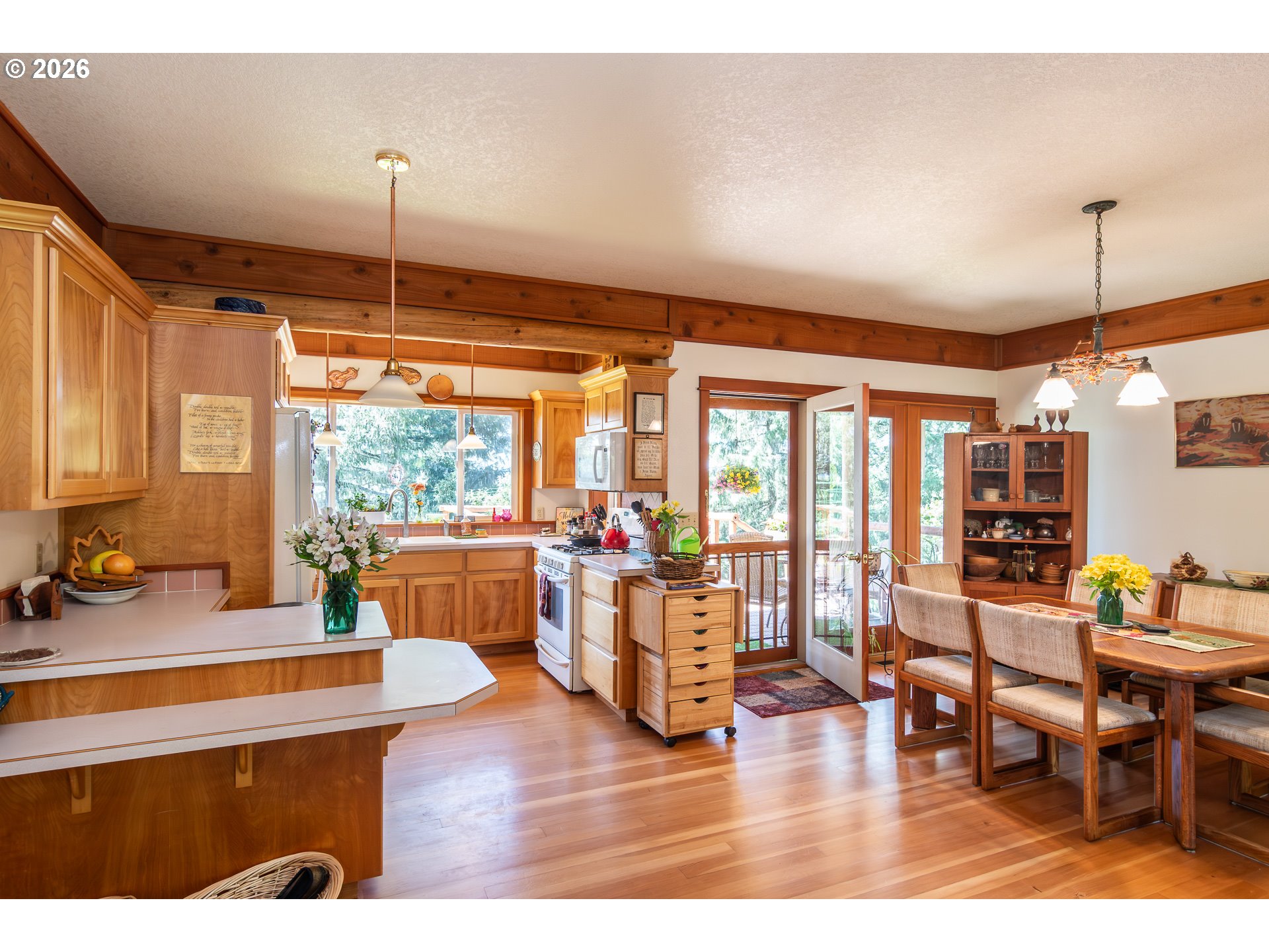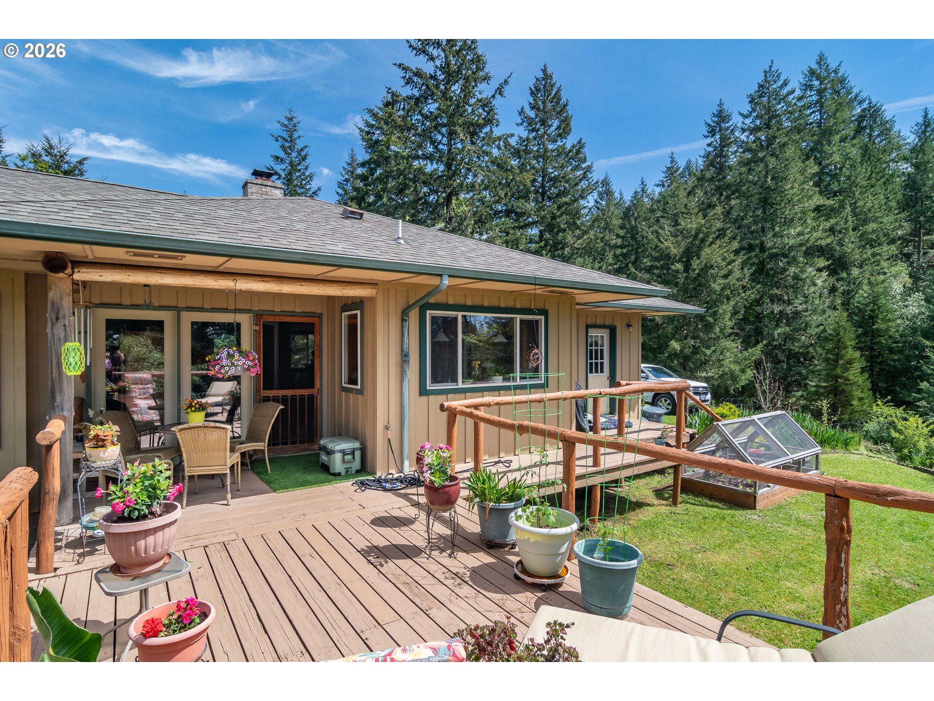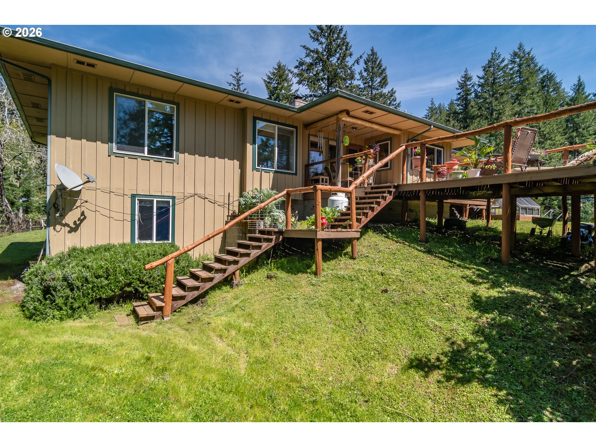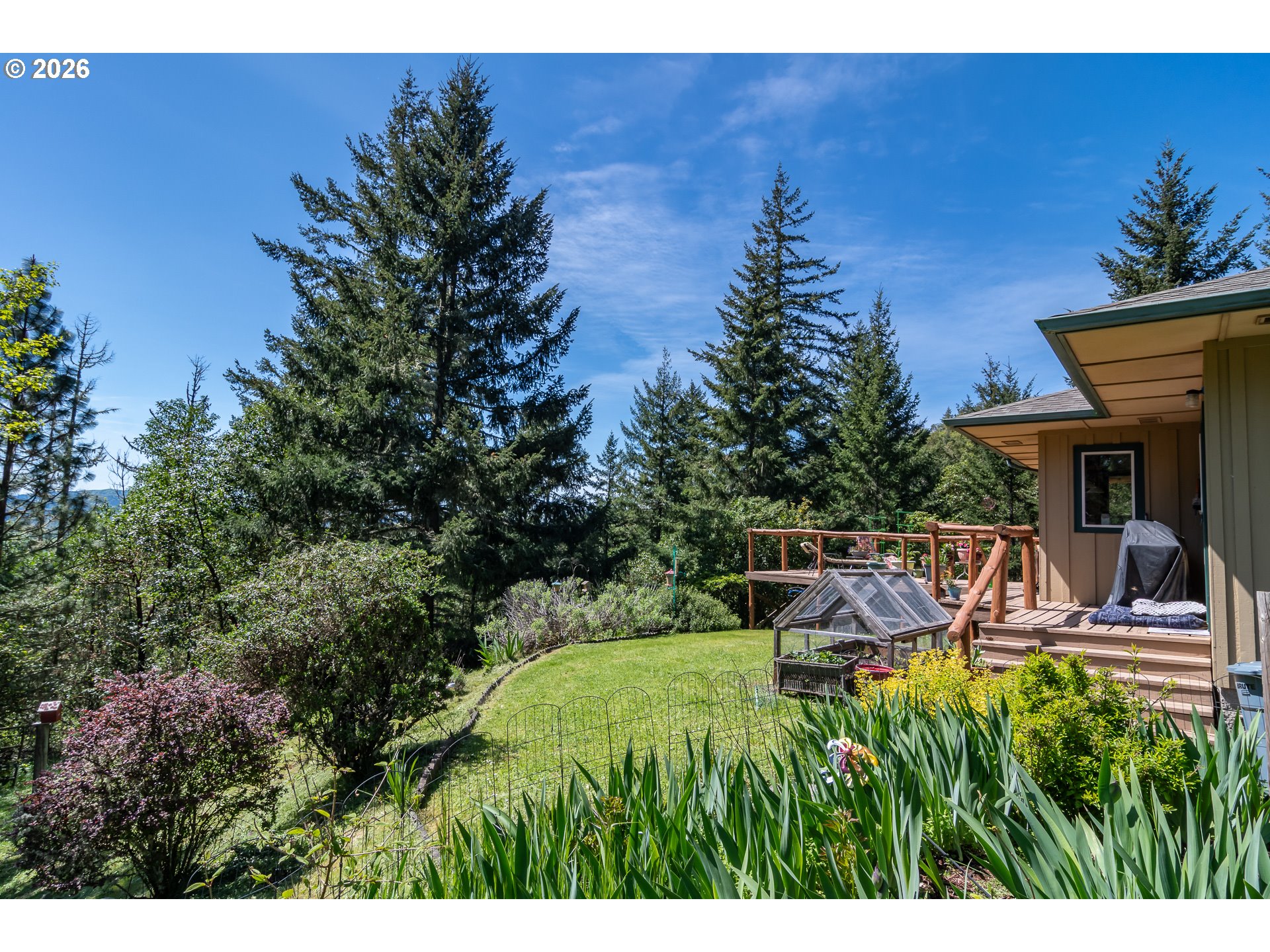 Rare opportunity to own 133 acres of private, forested Oregon land with two homes, valuable timber, and abundant wildlife. This secluded retreat features approximately 577 MBF of merchantable timber, plus 10,000 replanted trees (approx. 2 years old)—ideal for investment, recreation, or a legacy estate. The custom-built 1996 main home blends craftsmanship with natural beauty. Highlights include hardwood floors milled from the property, a stunning floor-to-ceiling Umpqua river rock fireplace (stones hand-carried from the river), and dramatic vaulted knotty pine tongue-and-groove ceilings. The living room is filled with light from large windows showcasing serene forest views. The home offers 3 bedrooms and 2.5 baths, plus a downstairs family room with separate entry—perfect as a 4th bedroom, guest suite, or home office. Enjoy outdoor living on the wood deck off the dining room, ideal for taking in the peaceful surroundings. The charming covered porch entry is accented by Daphne, Iris, and Hellebore, creating a warm welcome. Raised garden beds provide space for herbs and vegetables. A separate 560 sqft guest quarters, located approximately 1/8 mile from the main home, offers excellent privacy. Features include an entry ramp, bathroom with walk-in shower, laundry hookups, carport, outdoor shower, cedar sauna, and metal roof—ideal for guests, rental income, or multi-generational living. The property includes a partially fenced pasture with animal lean-to (previously home to horses and llamas), two wells plus an available spring, and an in-ground concrete water storage tank (2,000 gallons). Wildlife is abundant, including deer, elk, and bear, with 3 landowner hunting tags available. This is a premier Oregon acreage property offering timber investment potential, privacy, natural beauty, and recreational opportunities. A true must-see for those seeking a rural retreat, hunting property, or multi-home estate. PLEASE NO DRIVE-BY'S! APPOINTMENT ONLY.