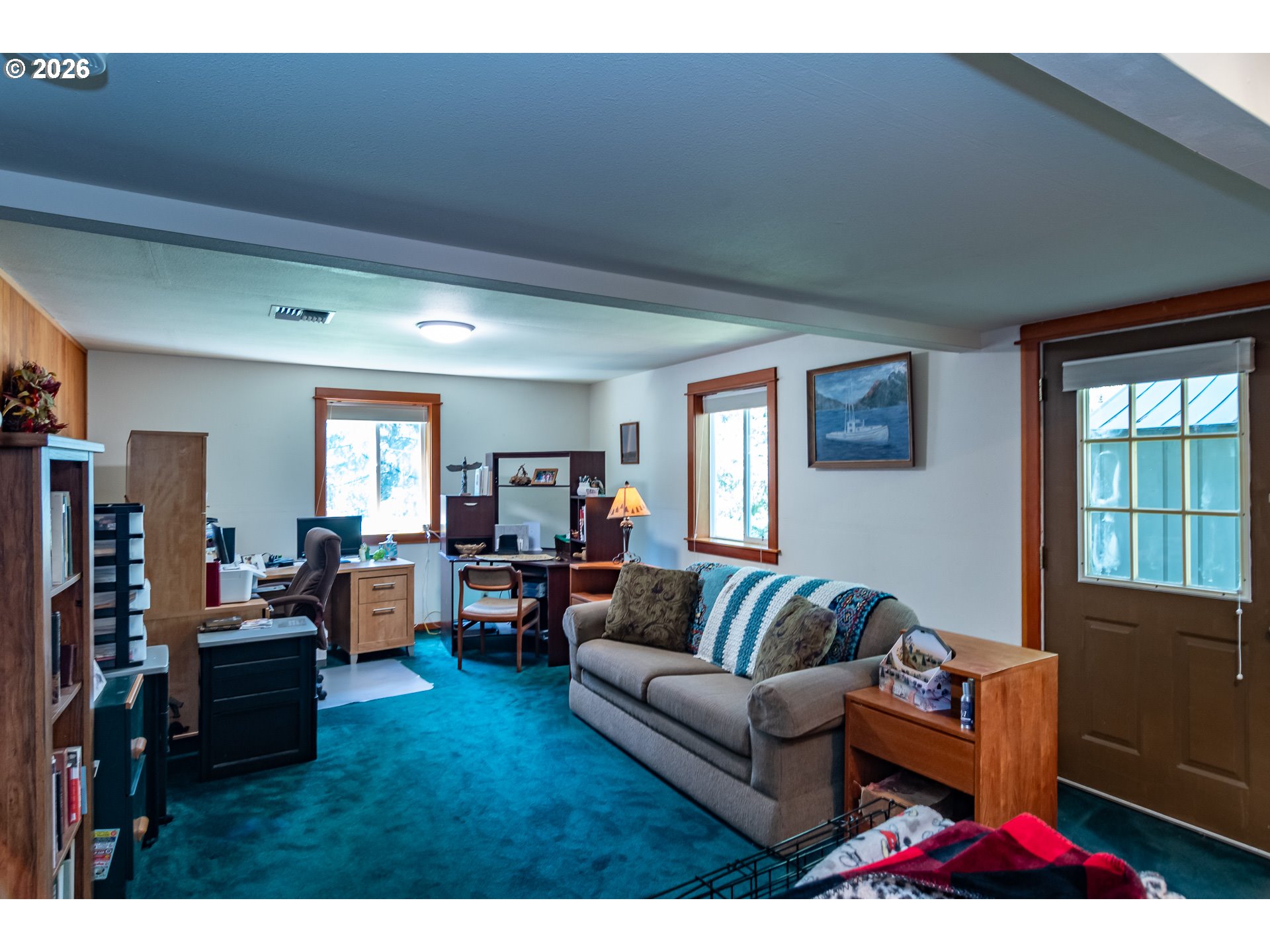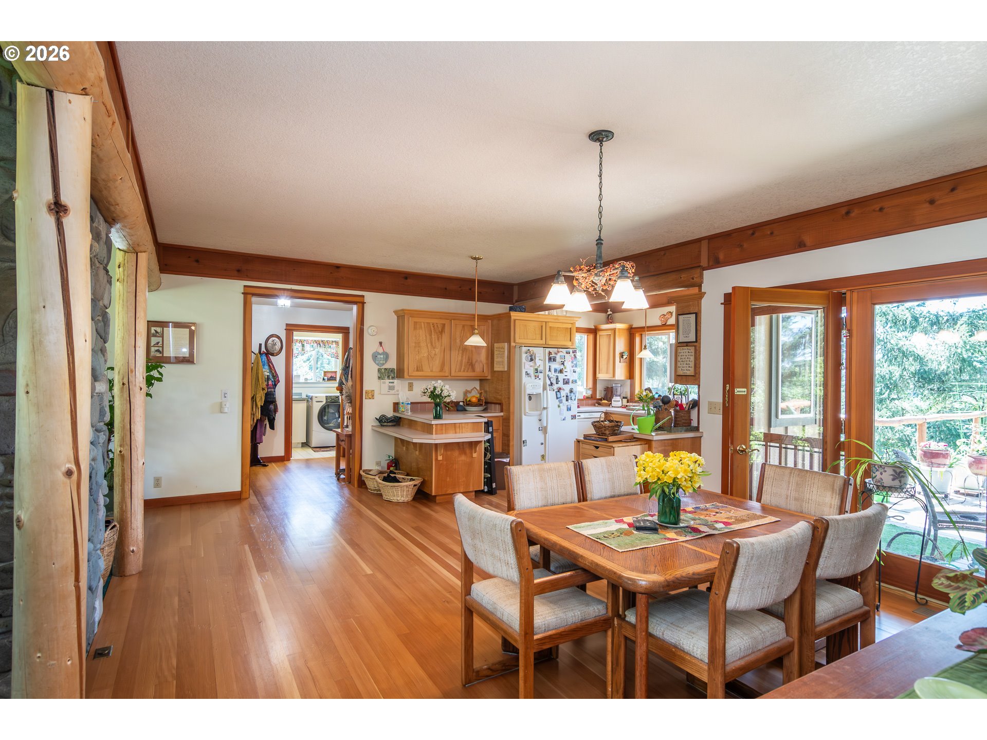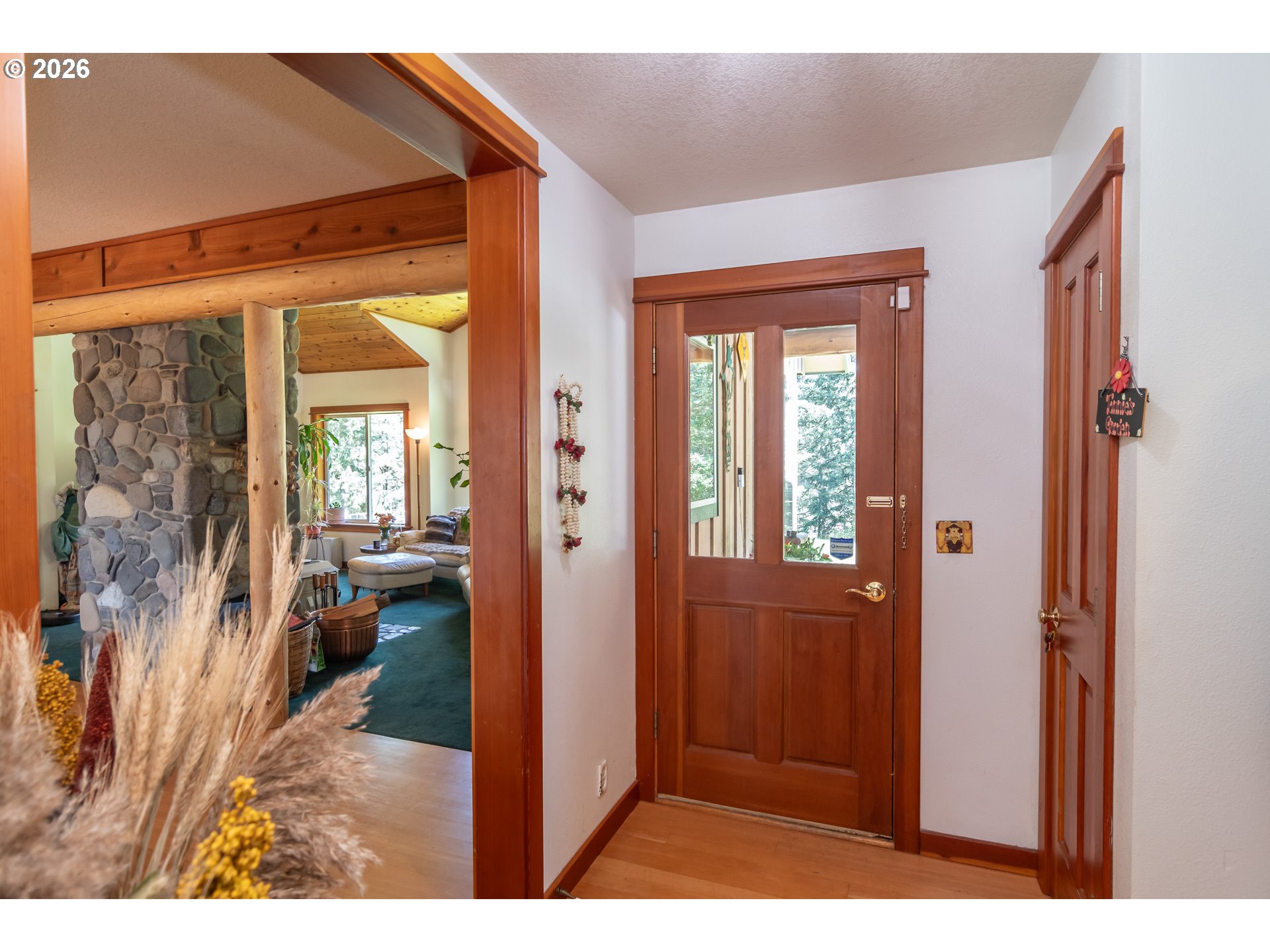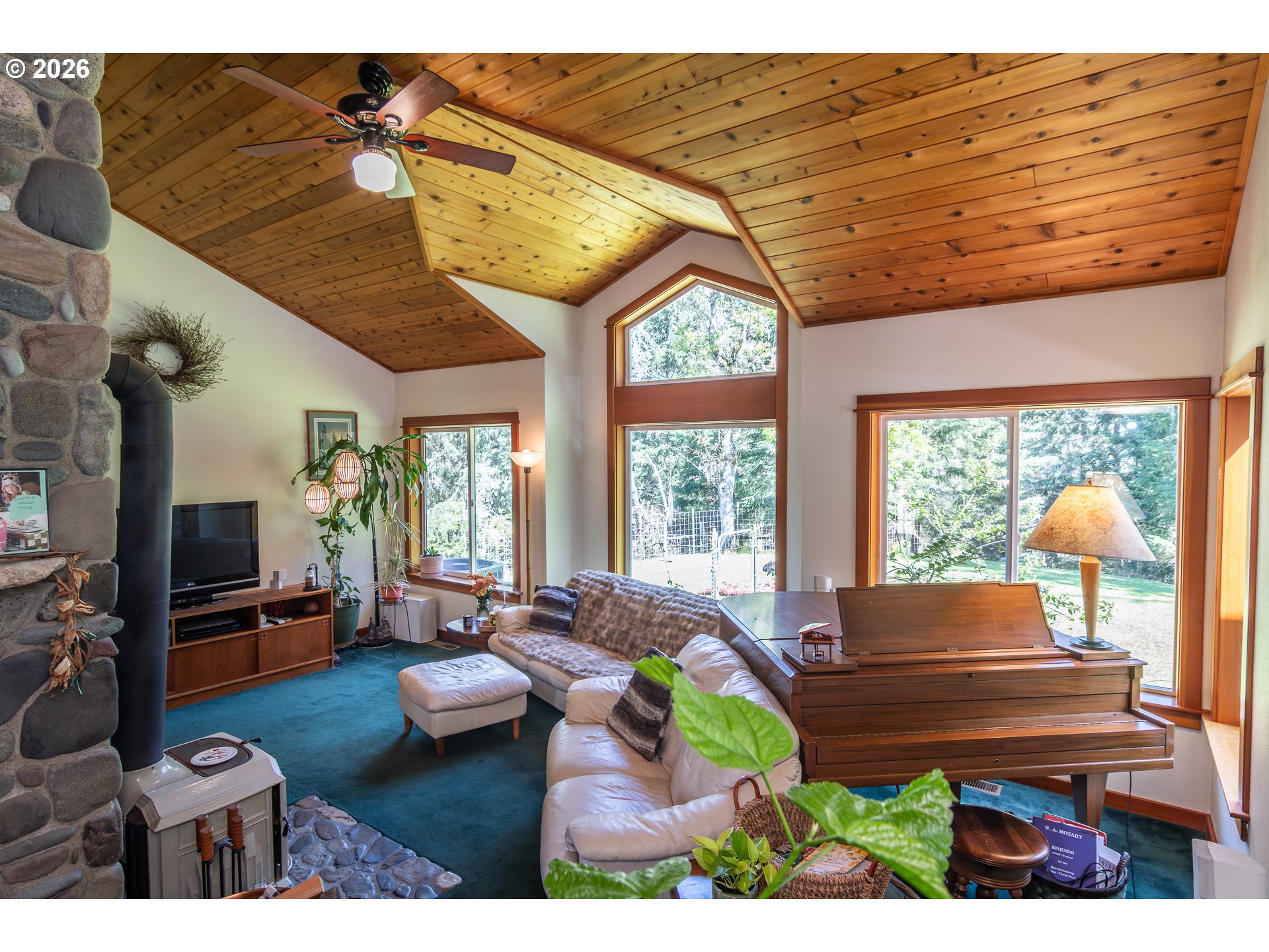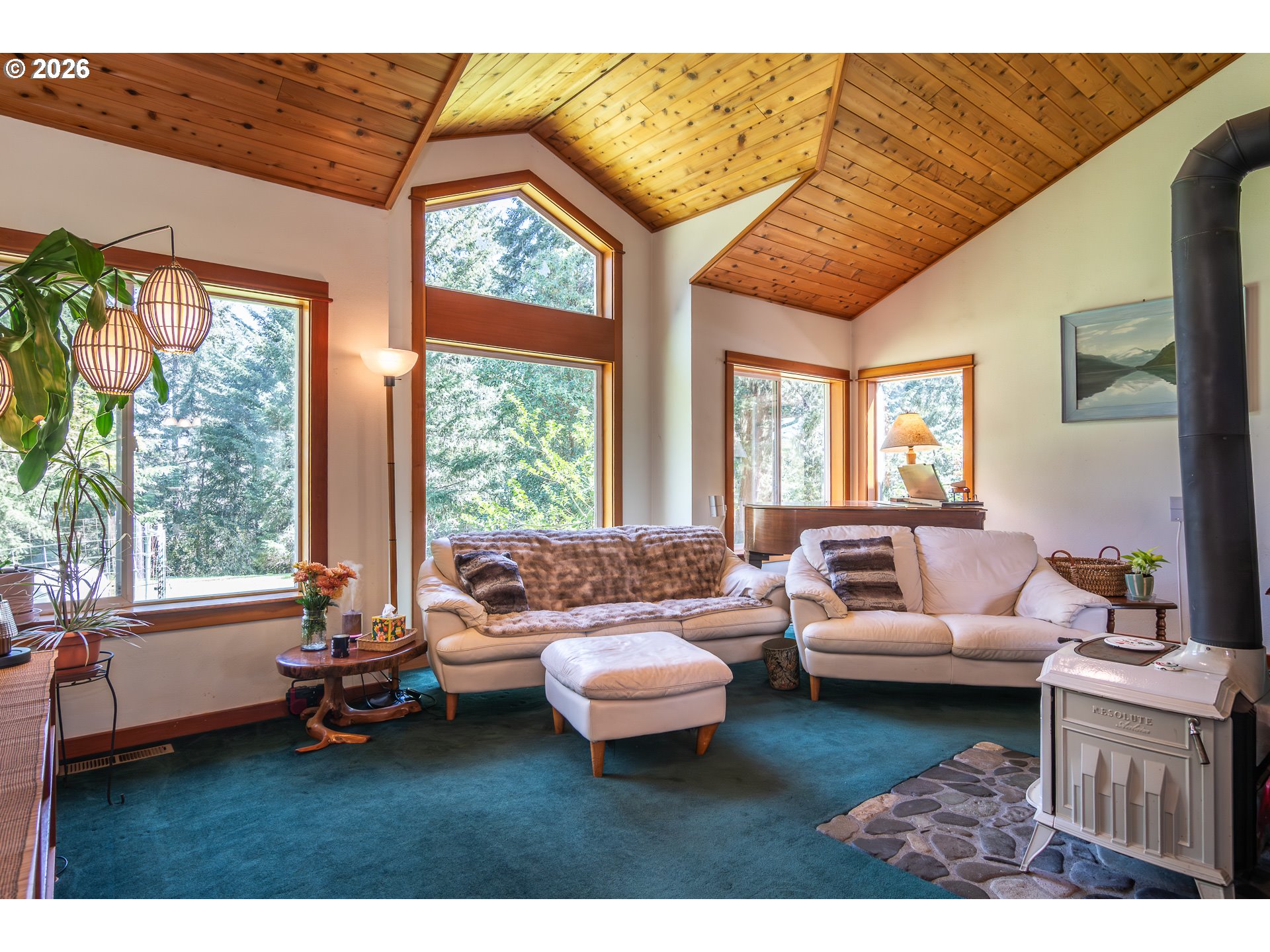 Rare opportunity to own 133 acres of private, forested Oregon land with two homes, valuable timber, and abundant wildlife. This secluded retreat features approximately 577 MBF of merchantable timber, plus 10,000 replanted trees (approx. 2 years old)—ideal for investment, recreation, or a legacy estate. The custom-built 1996 main home blends craftsmanship with natural beauty. Highlights include hardwood floors milled from the property, a stunning floor-to-ceiling Umpqua river rock fireplace (stones hand-carried from the river), and dramatic vaulted knotty pine tongue-and-groove ceilings. The living room is filled with light from large windows showcasing serene forest views. The home offers 3 bedrooms and 2.5 baths, plus a downstairs family room with separate entry—perfect as a 4th bedroom, guest suite, or home office. Enjoy outdoor living on the wood deck off the dining room, ideal for taking in the peaceful surroundings. The charming covered porch entry is accented by Daphne, Iris, and Hellebore, creating a warm welcome. Raised garden beds provide space for herbs and vegetables. A separate 560 sqft guest quarters, located approximately 1/8 mile from the main home, offers excellent privacy. Features include an entry ramp, bathroom with walk-in shower, laundry hookups, carport, outdoor shower, cedar sauna, and metal roof—ideal for guests, rental income, or multi-generational living. The property includes a partially fenced pasture with animal lean-to (previously home to horses and llamas), two wells plus an available spring, and an in-ground concrete water storage tank (2,000 gallons). Wildlife is abundant, including deer, elk, and bear, with 3 landowner hunting tags available. This is a premier Oregon acreage property offering timber investment potential, privacy, natural beauty, and recreational opportunities. A true must-see for those seeking a rural retreat, hunting property, or multi-home estate. PLEASE NO DRIVE-BY'S! APPOINTMENT ONLY.