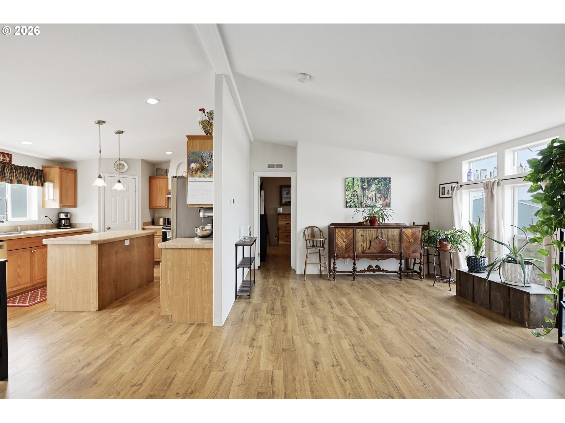 1265 Wright Road in Arlington is a spacious manufactured home sitting on more than half an acre with a fantastic layout and view!This well cared for home has an open concept layout with three bedrooms and two full baths. The primary bedroom has its own en suite with a generous sized tub and separate shower. Two additional bedrooms provide versatility for guests, a home office, or hobby rooms! This property also includes a detached two car garage and a fenced yard space! Room to spread out and close to the golf course!Recent updates include all new flooring, interior paint, light fixtures, toilets, sinks, faucets, kitchen appliances, water softener and whole house filter system and more!