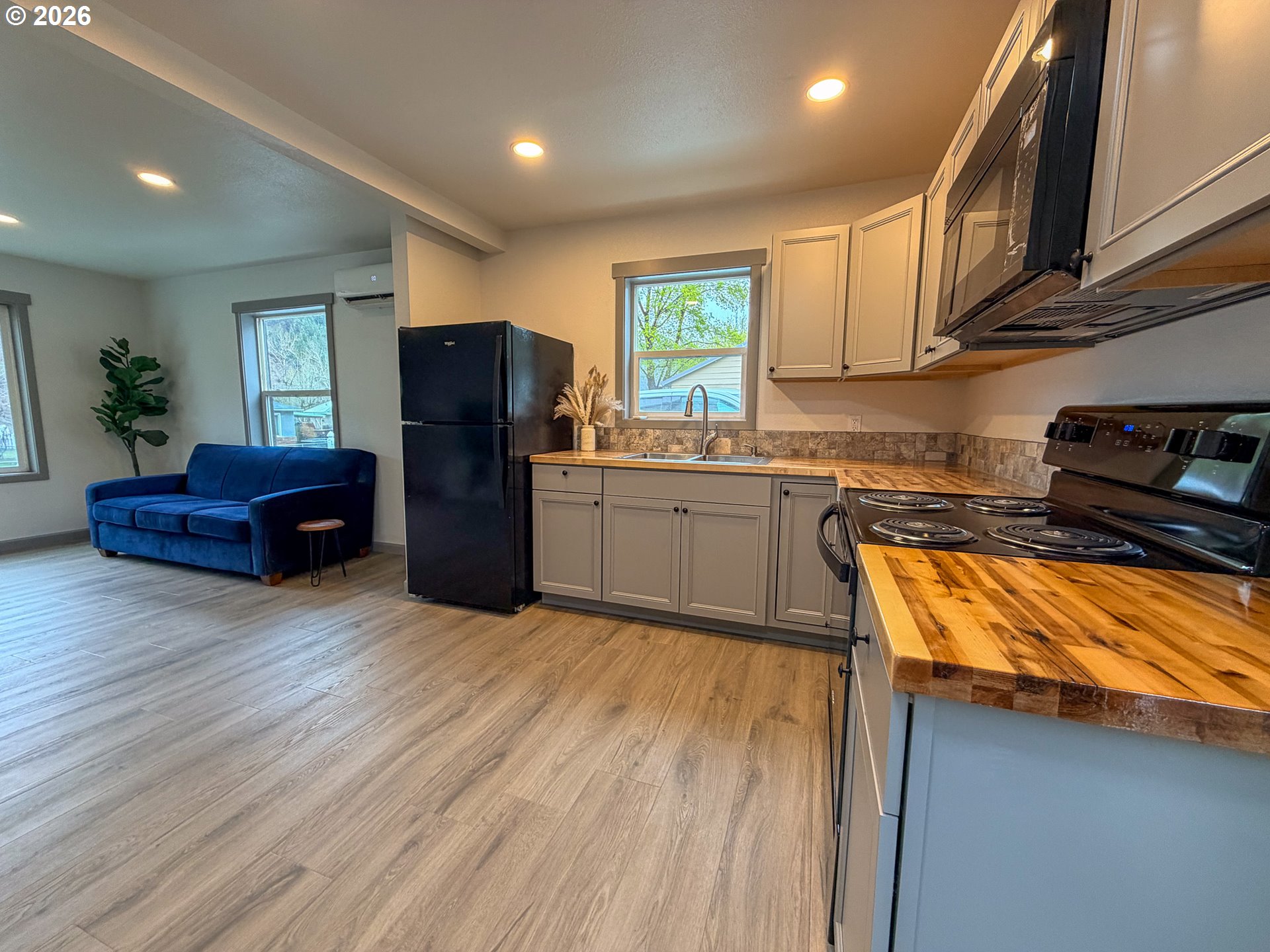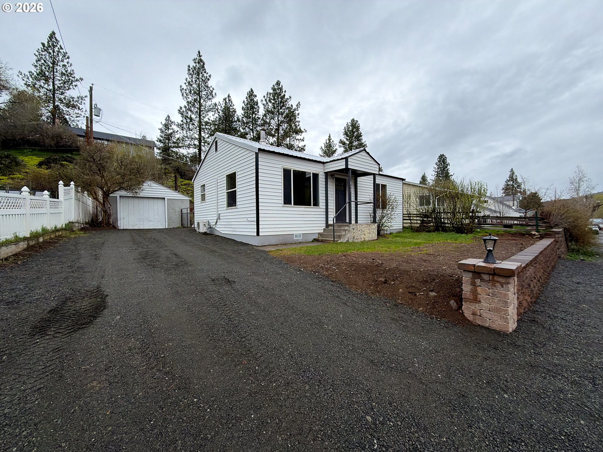 215 N. Humboldt St., Canyon City, OR 97820. This charming two-bedroom, one-bathroom home is situated in a pleasant neighborhood. Recently renovated, the property boasts numerous beautiful updates, including new flooring, countertops, fixtures, cabinets, fresh interior paint, and a decorative block retaining wall in the front. Both spacious bedrooms feature new carpeting, contributing to the home's inviting atmosphere. The property also includes a detached garage, off-street parking, and a yard space, enhancing its appeal.
