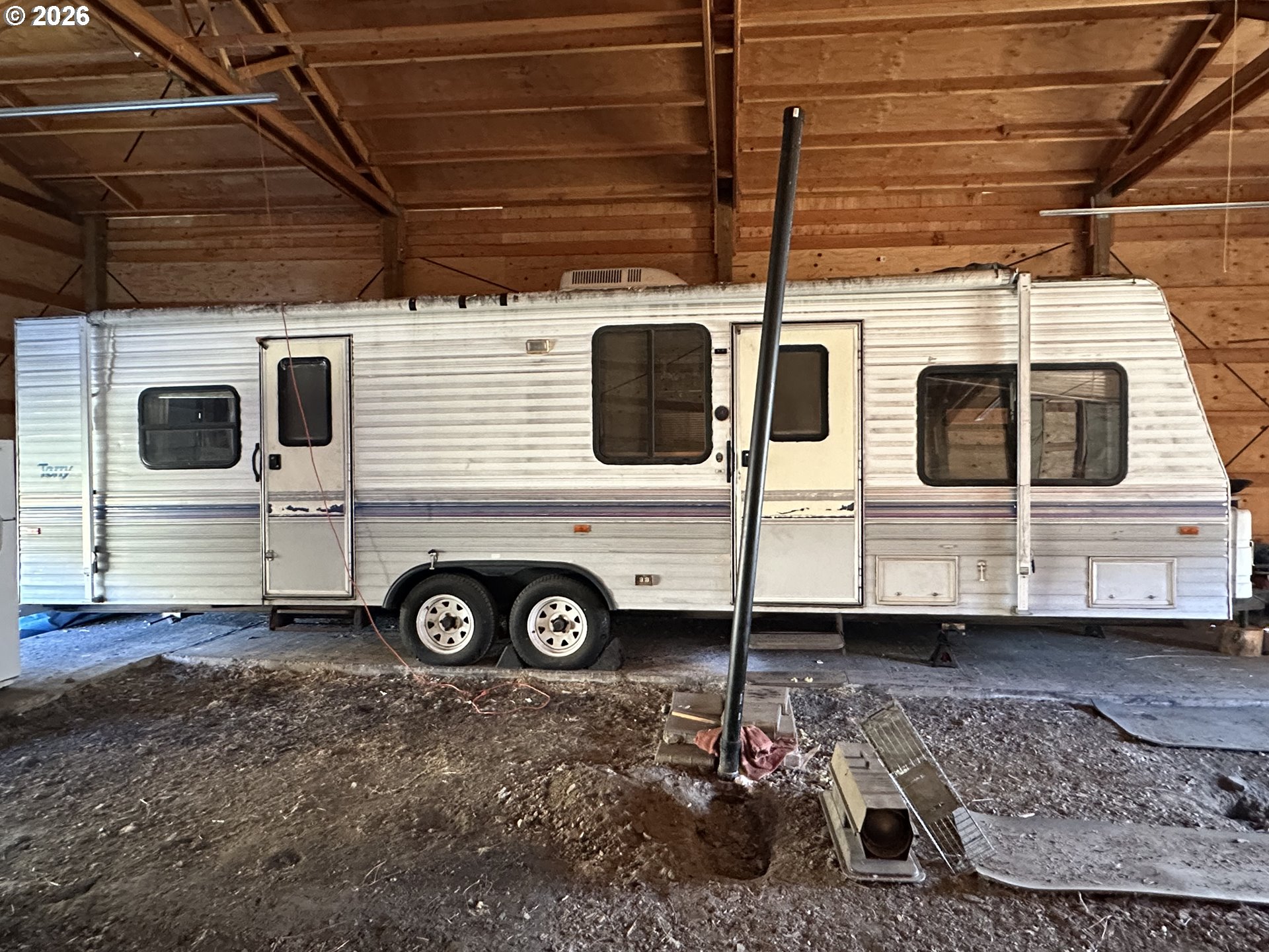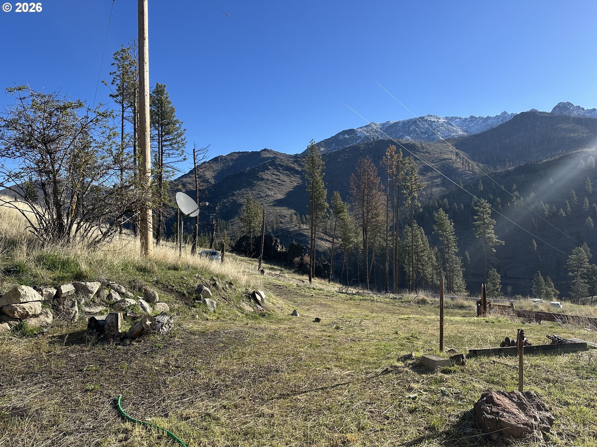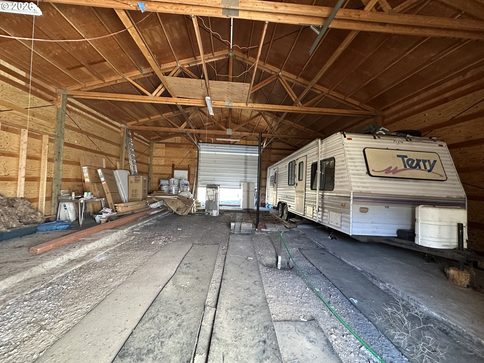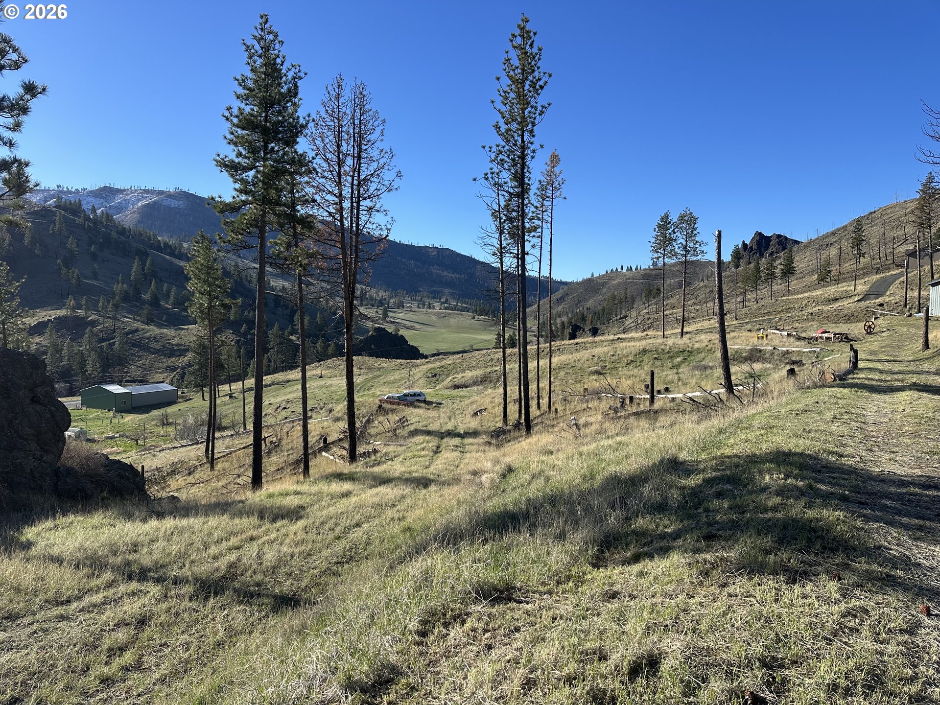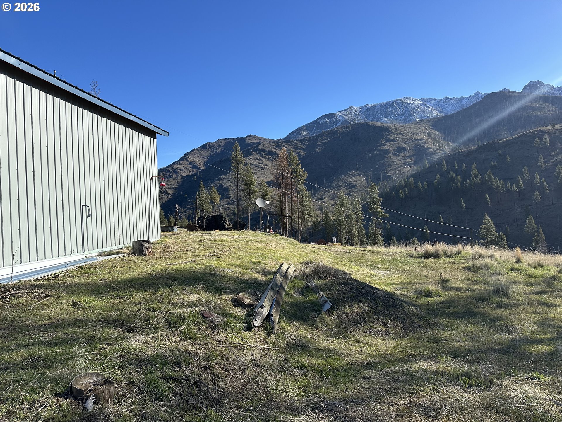Shop 36x48 setting on 15.15 acres ( 2 tax lots) with incredible mountain views. Camper is included & hooked to well and septic, inquire for more information .Beautiful setting to use as is or build/install your dream home. Lots of materials & personal property will be left with the property. Year around access on private road.