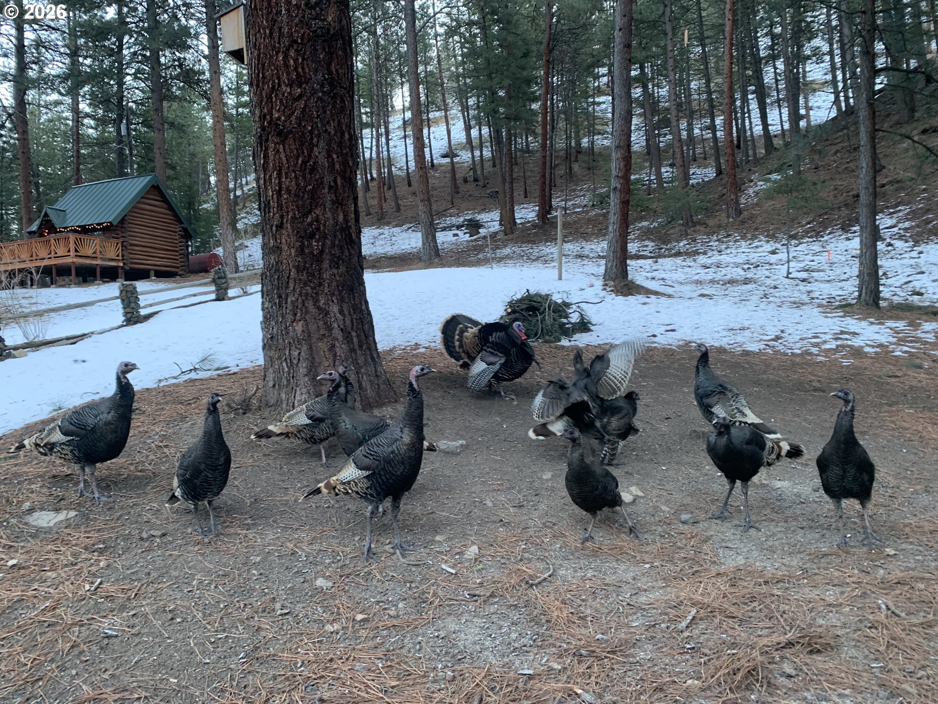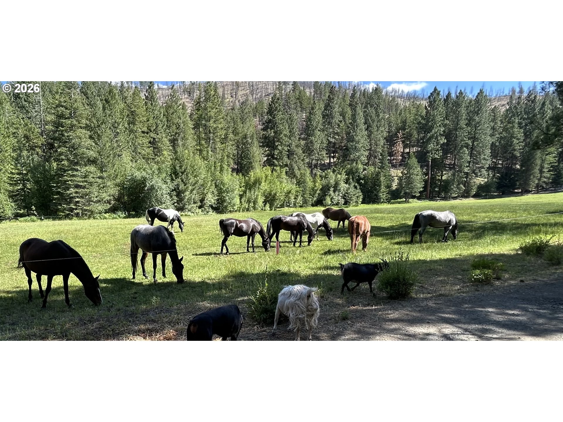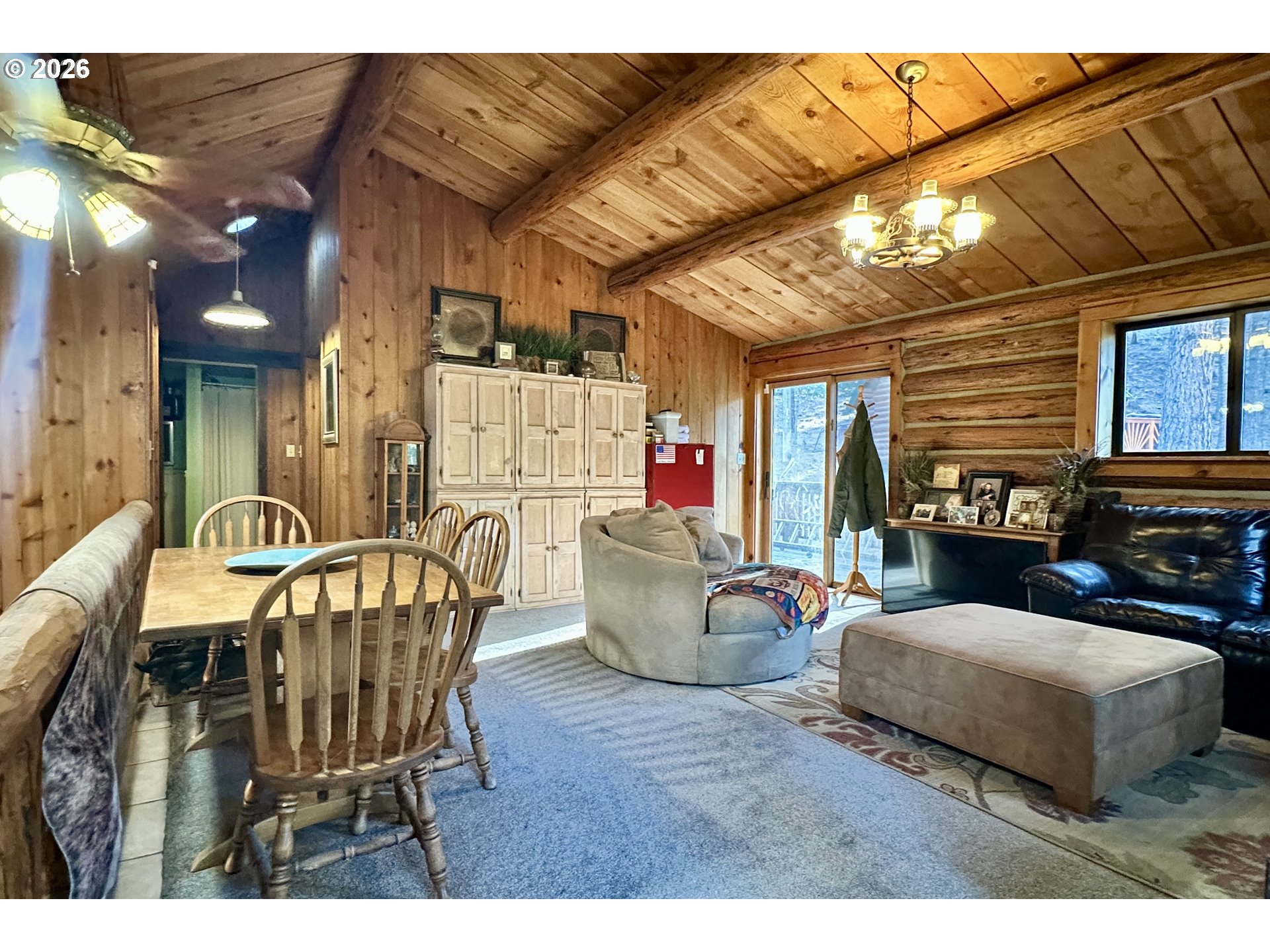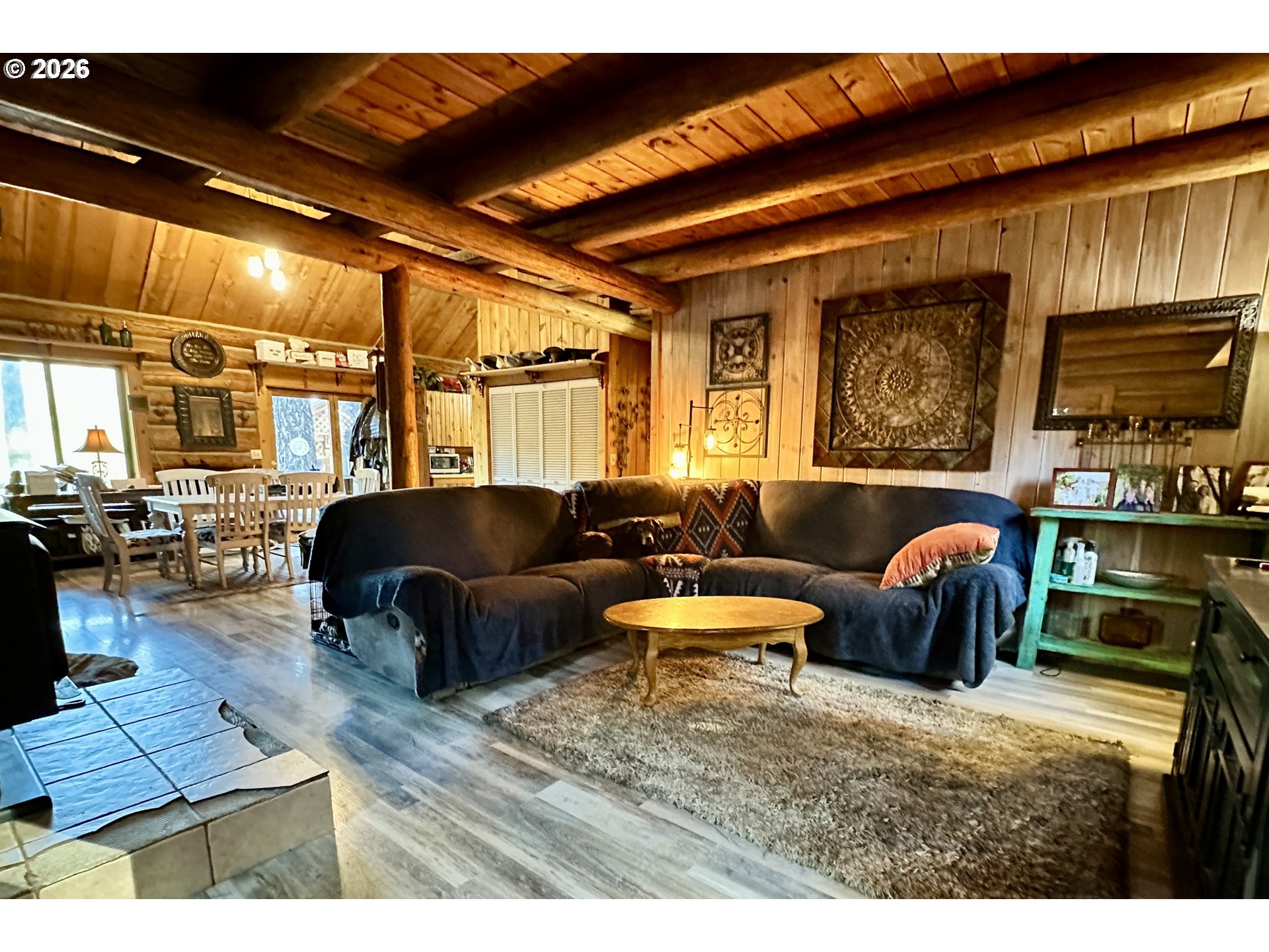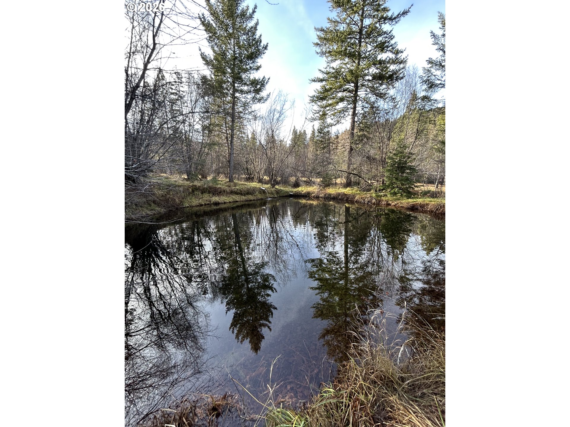 Discover the perfect blend of privacy, beauty, and self-sufficient living with this custom-built log home on timbered acreage just several miles from John Day. This property offers a rare combination of usable land and abundant water – ideal for homesteading, rural living, or a private retreat. The custom log home offers warm character and thoughtful design, featuring a main-level living room plus a second living area upstairs. The kitchen includes a propane range. Heating is provided by a wood fireplace with oil backup heat; the hot water heater also runs on oil. The home is supplied by one of several springs on the property, providing abundant water year-round. Step outside onto the expansive 621+/- square-foot deck and take in sweeping views of the irrigated meadow and the John Day Valley. A greenhouse connected to the deck extends your growing season, while attractive landscaping enhances the homesite. A log guest cabin with electricity sits near the main home. The 1,776+/- square-foot shop includes a loft for additional storage and is currently set up with half used as a workshop and half as a gym. Two powered shipping containers provide additional storage options. Access is provided by a well-maintained graveled road. The land is beautifully timbered with multiple conifer species and includes 3.5 acres of flood irrigation water rights. The irrigated meadow is fully enclosed with electric fencing and is ideal for hay production, horses, or a few cows. Pine Creek flows year-round through the property, complemented by several spring-fed ponds. A larger pond with a dock creates a peaceful setting to relax and enjoy the sounds of nature. Wildlife is abundant, with mule deer, turkey, and other native species frequently seen on the property. This property is perfectly suited for those seeking privacy and rural living without sacrificing proximity to town. *Shown by appointment only to pre-qualified buyers – Contact your agent to schedule a tour- Do not trespass*