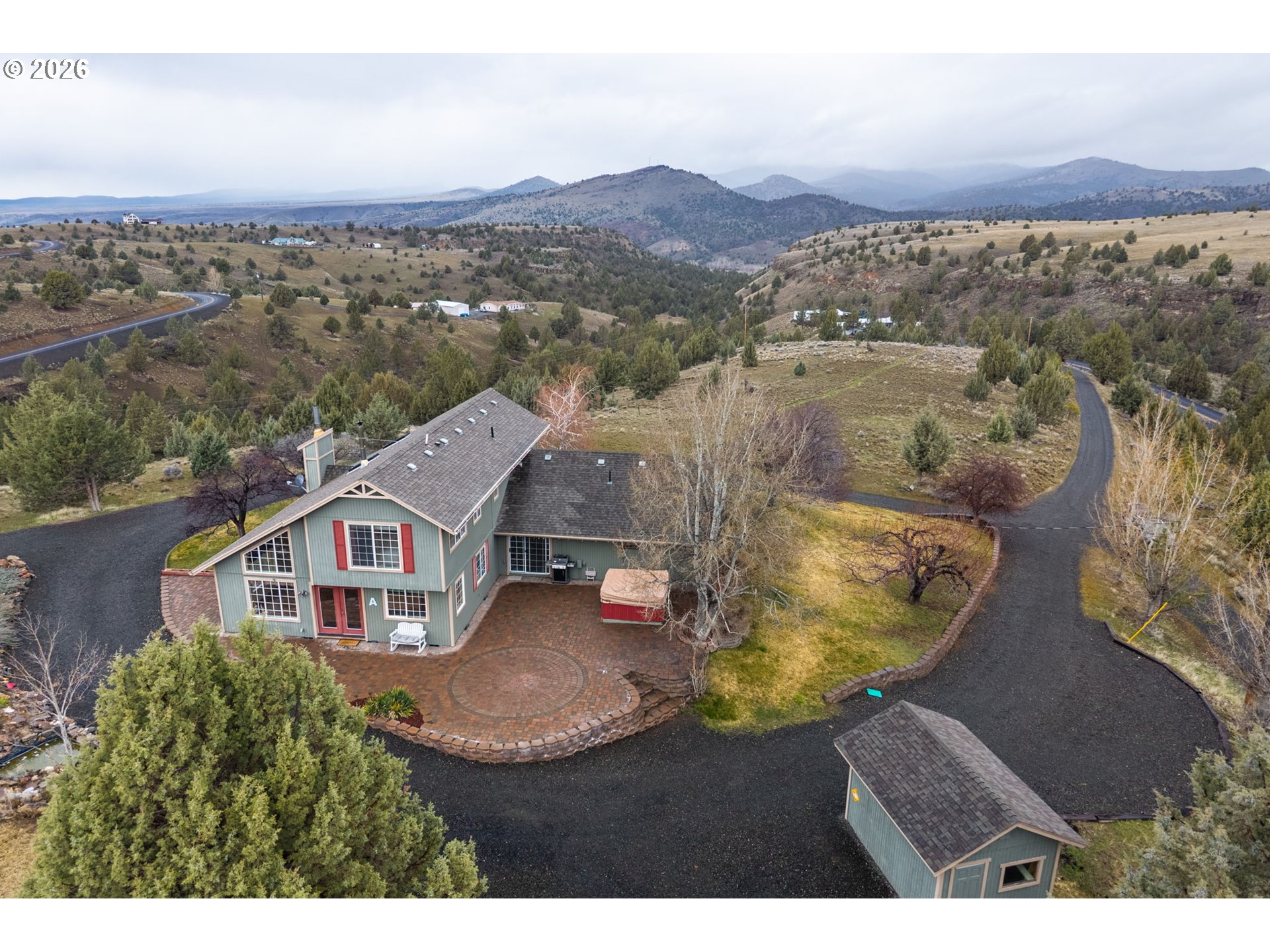 Enjoy wide open space and breathtaking 360° views from this 15.35± acre perimeter-fenced property featuring a 2,238 sq ft two-story home built in 1986. Watch incredible sunrises and sunsets from nearly every direction while enjoying the privacy and usability of your acreage.The kitchen offers an island with cooktop, wine storage, and generous counter space ideal for cooking or baking. There is also space to reinstall a traditional wood cookstove for added charm and functionality. The living room features a cozy woodstove and open sightlines to the kitchen and dining areas, creating a comfortable gathering space. A heat pump provides heating and cooling year-round.The primary suite is located on the second level and includes a walk-in closet and corner shower. On the main level you’ll find a 15’ x 12’ bedroom, a bathroom with walk-in shower, and a flexible room perfect for a home office or hobby space with a slider that opens onto the large paver patio.Outside, the property is set up for country living with a gated entry and circular gravel driveway. Relax in the private hot tub on the patio or enjoy the peaceful pond with waterfall feature.Outbuildings include a 504 sq ft attached garage with built-in shelving and workbench, a 768 sq ft barn for hay or livestock, a lean-to for additional covered storage, and a storage shed. Underground sprinklers, apple, cherry, pear & plum trees & an RV hookup is available.Shared well with a 2,000-gallon cistern.