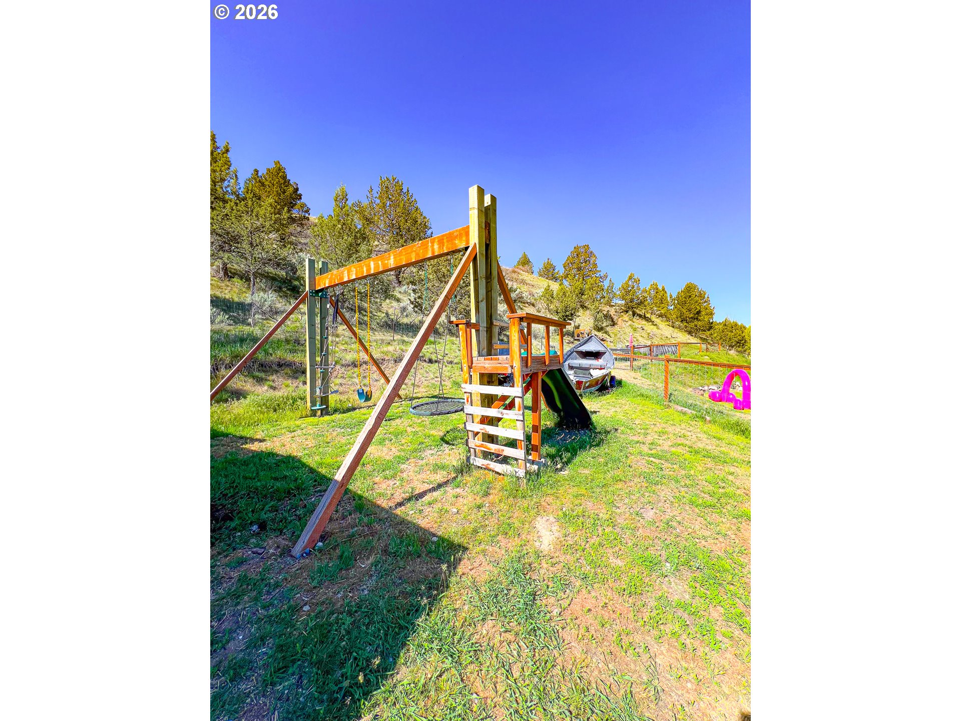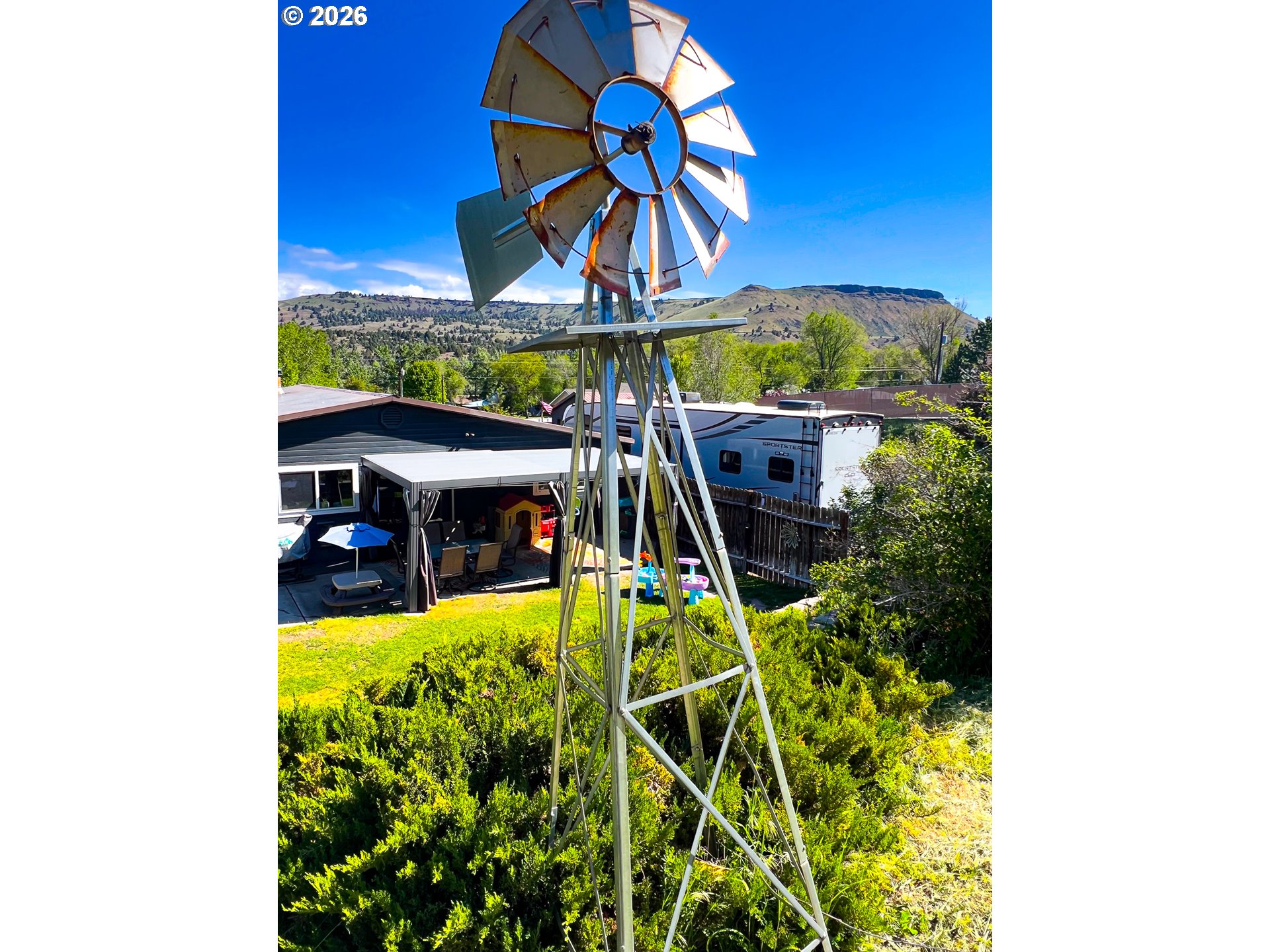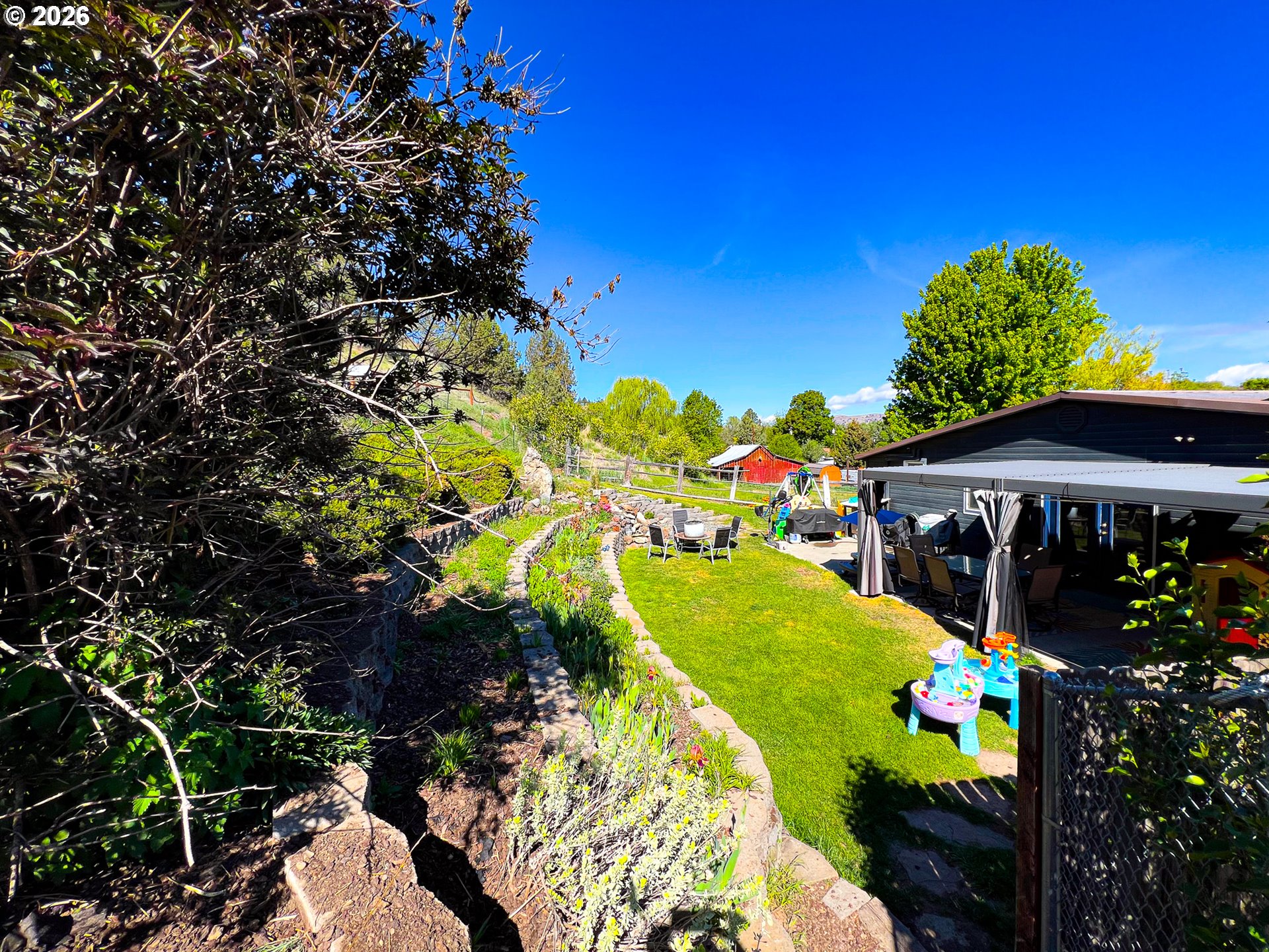 Looking for a single-level home with plenty of parking? This property sits on a spacious .61-acre lot featuring a large gravel driveway with room for vehicles, RVs, and toys. The 480 sq ft detached garage offers a concrete floor, power, work benches, and a lean-to for additional covered parking or storage.Inside, the home offers an open-concept layout with flexible living space. Heating and cooling are covered with two mini-splits, a cozy woodstove, and cadet heaters. The primary suite features a deep double closet plus an additional closet, and a bathroom with heated tile floor a tile corner shower and rain head. One guest bedroom includes built-in bunk beds.The kitchen includes granite countertops and stainless steel appliances, included in the sale. A spacious utility room offers a tankless propane water heater and built-in shelving for pantry storage.The backyard feels private with fencing and a natural hillside bordering the rear property line. Enjoy a terraced yard with annual flowers, a water feature, swing set, chicken coop, and greenhouse. Underground sprinklers and ditch water rights add convenience for landscaping. The covered patio awning is included, creating a cool and comfortable space to enjoy summer evenings.