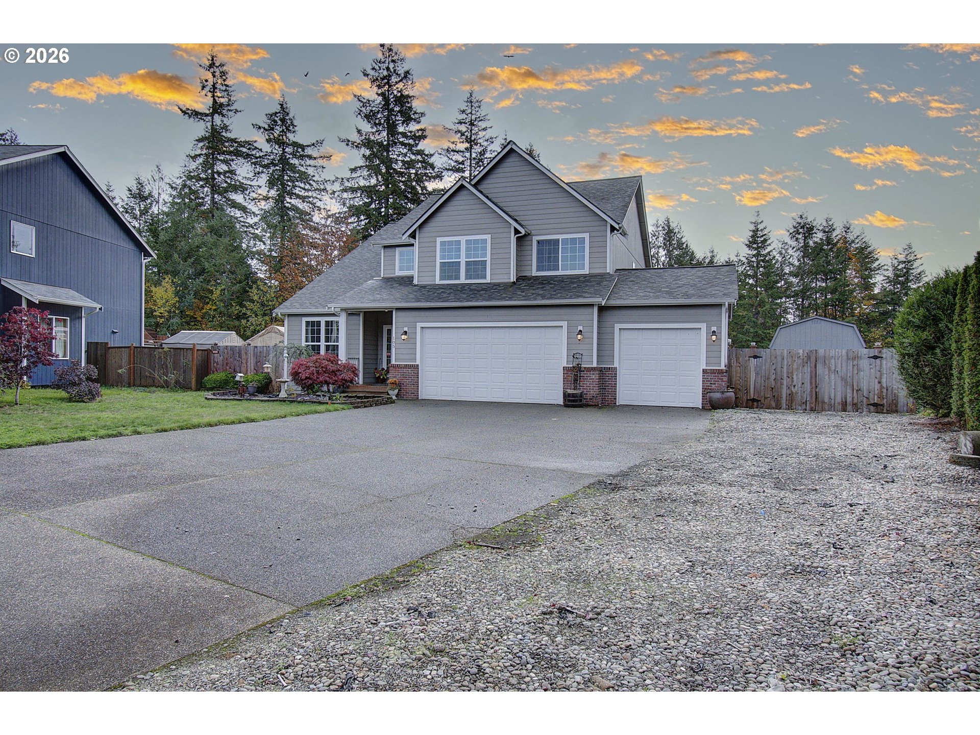 Welcome to this well-maintained two-story home that offers 3 bedrooms, 2.5 bathrooms, office and a large bonus room for flexible living. The main level features hardwood floors, formal dining room, office, an inviting great room with a cozy fireplace, and an open kitchen with granite countertops and stainless steel appliances. Upstairs, the spacious primary suite includes a five-piece bath and generous closet space, along with two additional bedrooms and a versatile loft. Enjoy outdoor living in the fully fenced backyard with mature landscaping and a patio perfect for relaxing or entertaining. The RV parking, oversized three-car garage and large storage shed provide adds ample storage for all of your toys in this quiet cul-de-sac setting.
