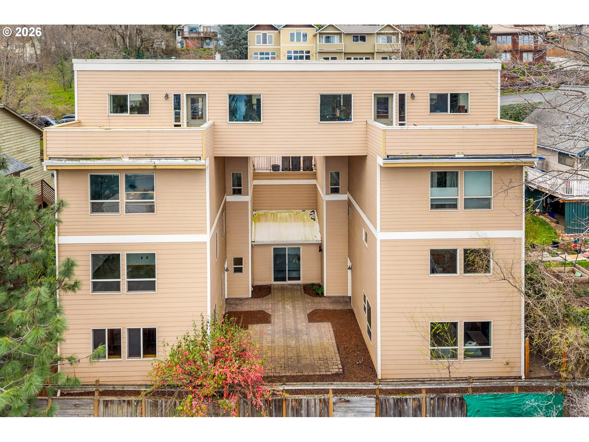 Downtown Hood River living—with personality. This 2003-built condo, tucked on the ground floor of a charming triplex, is clean and modern with just the right amount of edge. Inside, radiant-heated concrete floors keep things cozy, while tall ceilings and an open feel give the space room to breathe. Spanning almost 2,000 square feet, with 2 bedrooms, 2 bathrooms, and a flexible loft, there’s plenty of space to live, work, and host without compromise. The open concept layout of the main living/kitchen space is relaxed yet functional. Separate pantry closet, laundry room, and utility room add an extra layer of convenience and organization rarely found in condo living. The layout is thoughtfully designed for privacy and flexibility. The primary suite occupies it's own wing on the second floor, creating a true retreat with Mt. Adams view, an ensuite bathroom, and an exceptionally large walk-in closet. On the main level, the second bedroom has an double closet and sits adjacent to a full bathroom. Wake up to Mt Adams views, sip your coffee in the private and wind protected paver courtyard, and stash all your gear in the oversized exterior-access storage room — an ideal setup for life in the Gorge. Off-street parking keeps things easy, and when you’re ready to head out, you’re just a few blocks from downtown and with quick freeway access for wherever the day takes you. Practical perks? A radon mitigation system is already in place for peace of mind, the radiant heat boiler is new as of Nov 2025, and a new roof is scheduled for late March 2026. Low-maintenance, turn-key, and anything but cookie-cutter — this is Hood River living done right.
