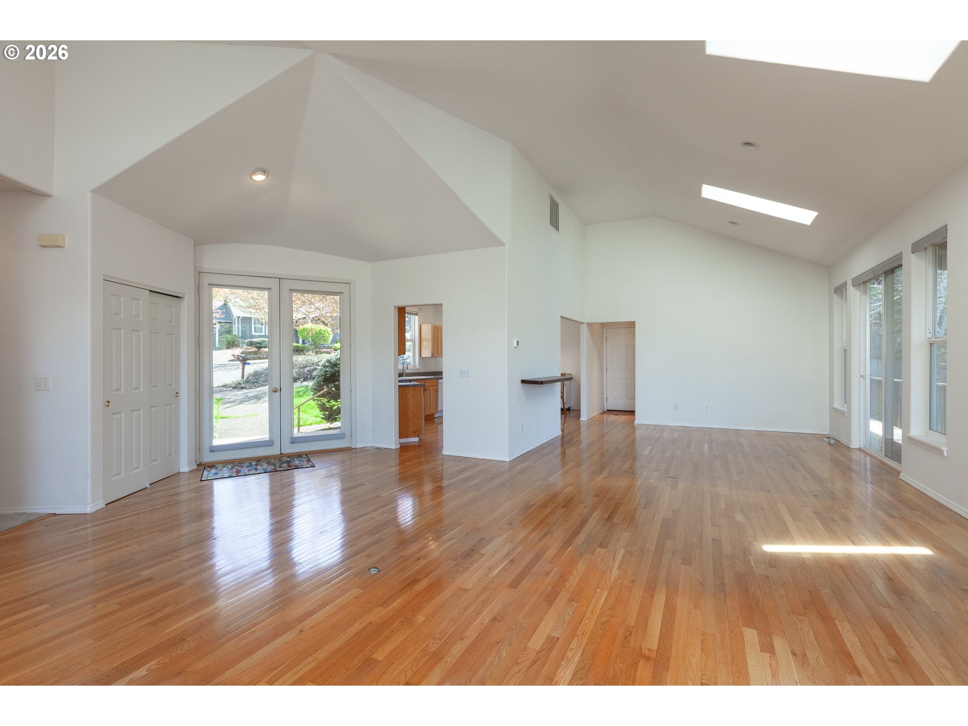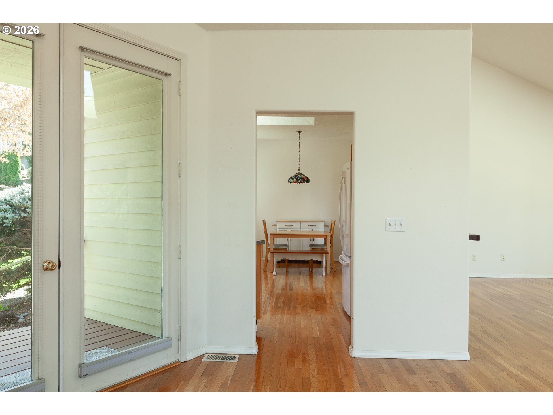 Welcome to this beautifully updated single-level home on Hood River's coveted west side. Built in 1998, this 3-bedroom, 2-bath residence offers 1,769 square feet of comfort and convenience. Freshly painted inside and out (with a few exceptions like the kitchen and laundry), this home boasts a new gas hot water heater, new blinds throughout, plus a new kitchen sink and faucet.Situated on a corner lot in a thoughtfully designed subdivision, you’ll be just moments from the renowned Post Canyon mountain biking trails and nearby wineries. Inside, oak hardwood floors grace the living, dining, and kitchen areas, while a large covered deck—accessible from both the living and dining rooms—invites multi-season outdoor entertaining. The spacious primary suite offers a walk-in closet, ensuite bath with a soaking tub, stall shower, and a private deck for peaceful star-gazing or morning coffee. The kitchen, with maple cabinets, a rolling island, and a cozy breakfast nook, is open to the dining area, filled with natural light from skylights and offering a peek at Mount Adams. A two-car garage completes the package, perfect for vehicles or adventure gear, and a door leads to a private backyard oasis. Don’t miss this gem in a prime location!