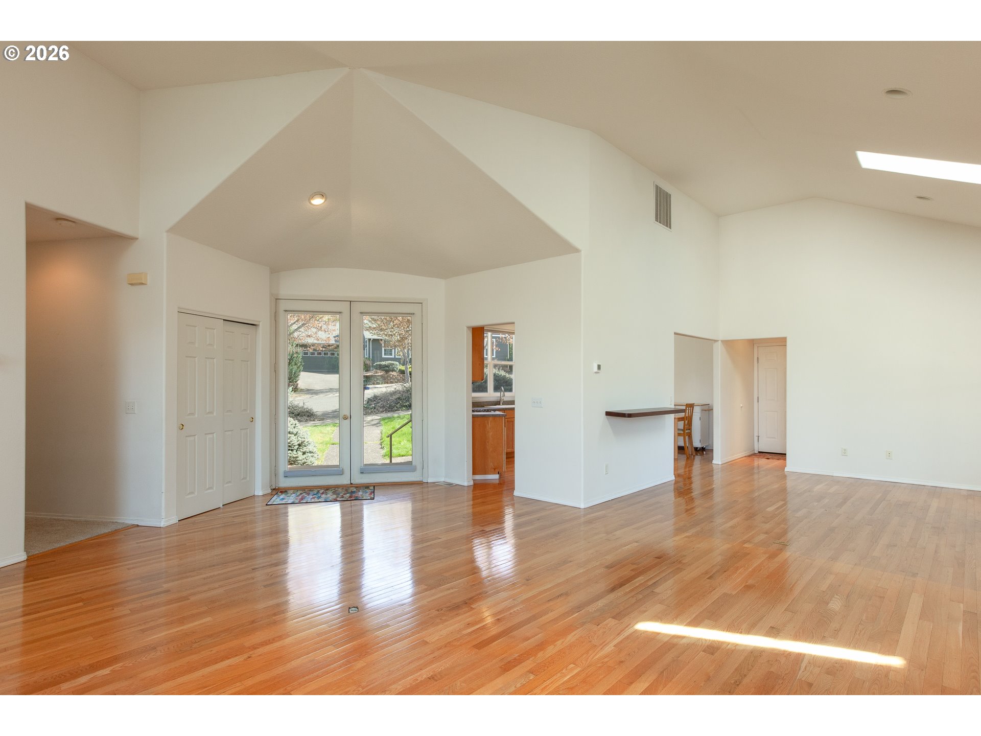 GarageDoorOpener, HardwoodFloors, Laundry, VaultedCeiling, VinylFloor, WasherDryer, WoodFloors