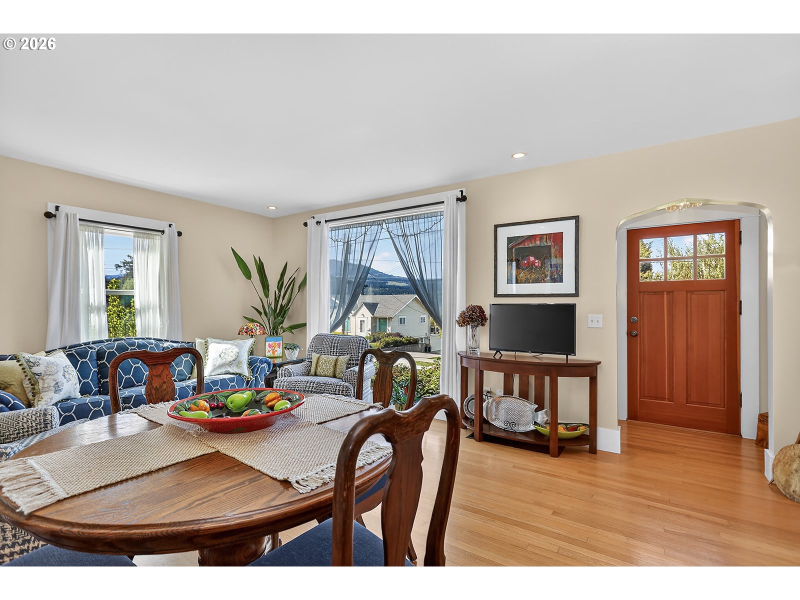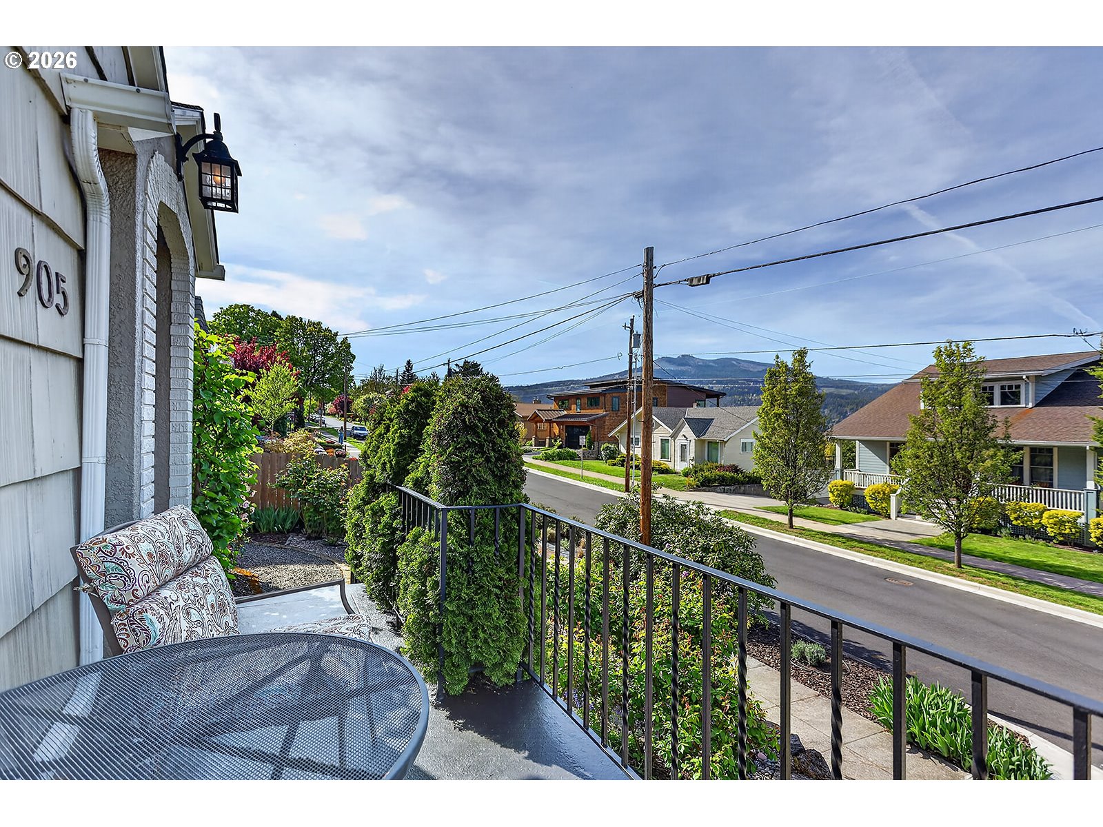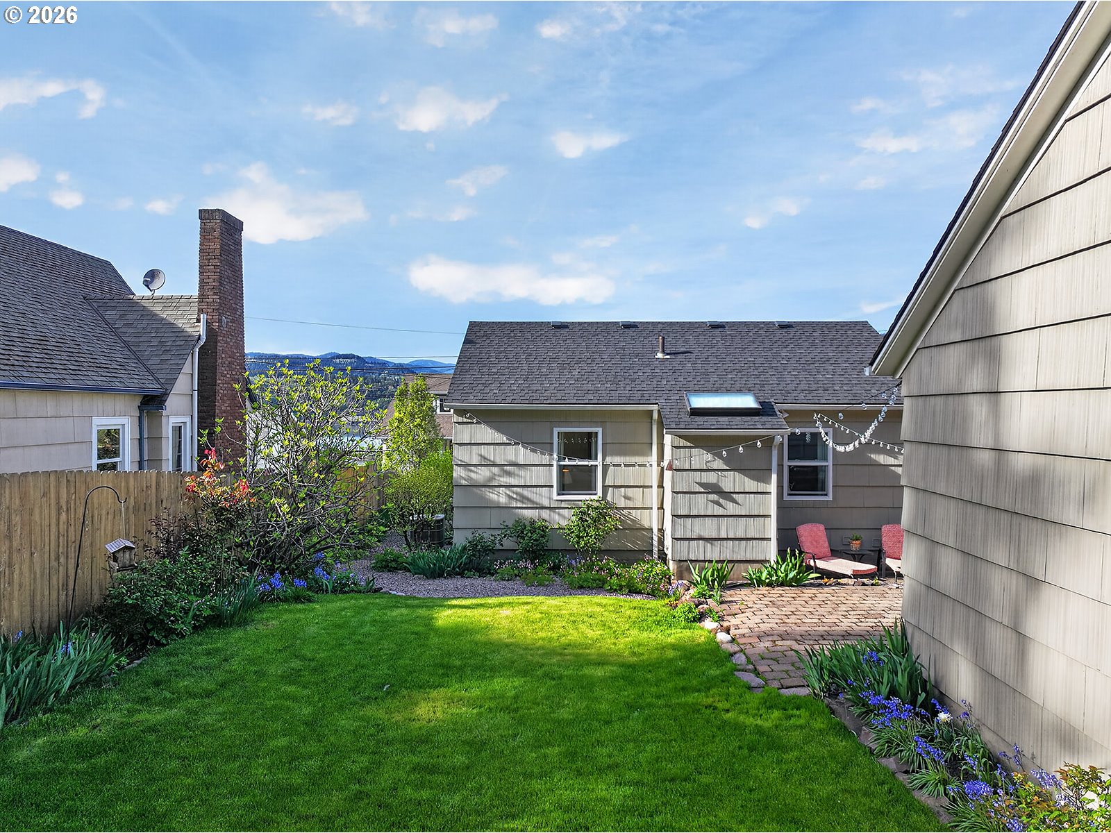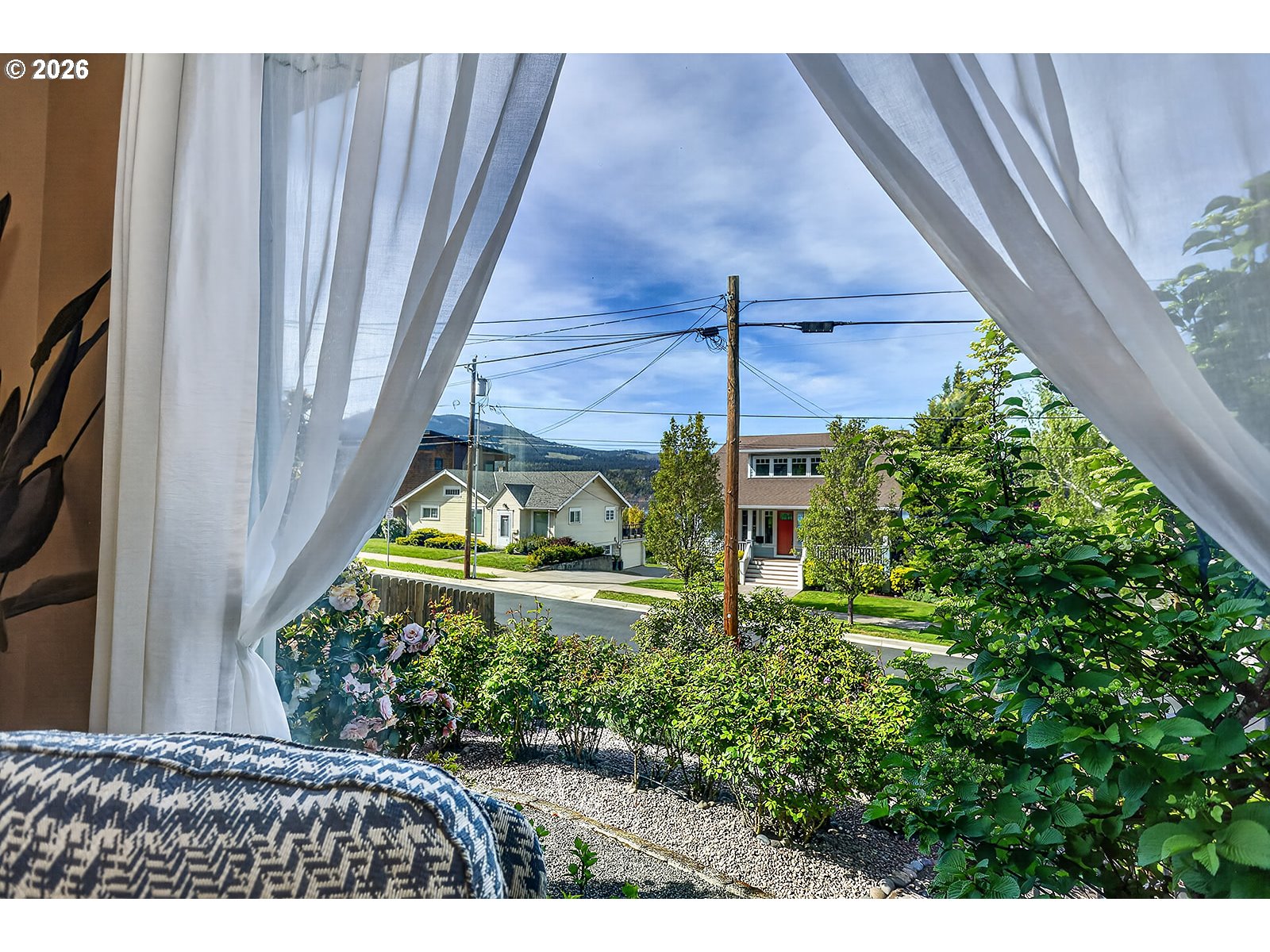Location, Location, Location!! With peeks of Mt. Adams and the Columbia River, this classic meticulously maintained home is on one of the most desirable streets in the heart of Hood River. This large oversized .16 acre corner lot has established plantings and an irrigation system to keep it lush and green. Main level features hardwood floors throughout the updated kitchen/nook with stainless steel appliances, 2 bedrooms, bath and living room with views of the river and mountain. Lower level offers hardwood flooring in primary bedroom with large walk-in closet, slate floor family room with built in wood bookcase and French doors to Columbia Street, full bathroom has radiant heated floors and utility room with tankless water heater. Exterior features a detached 2 car garage, fun paver patio and fenced backyard lawn entertainment area. Short walk to downtown or stay in your own private space. Best of both worlds!