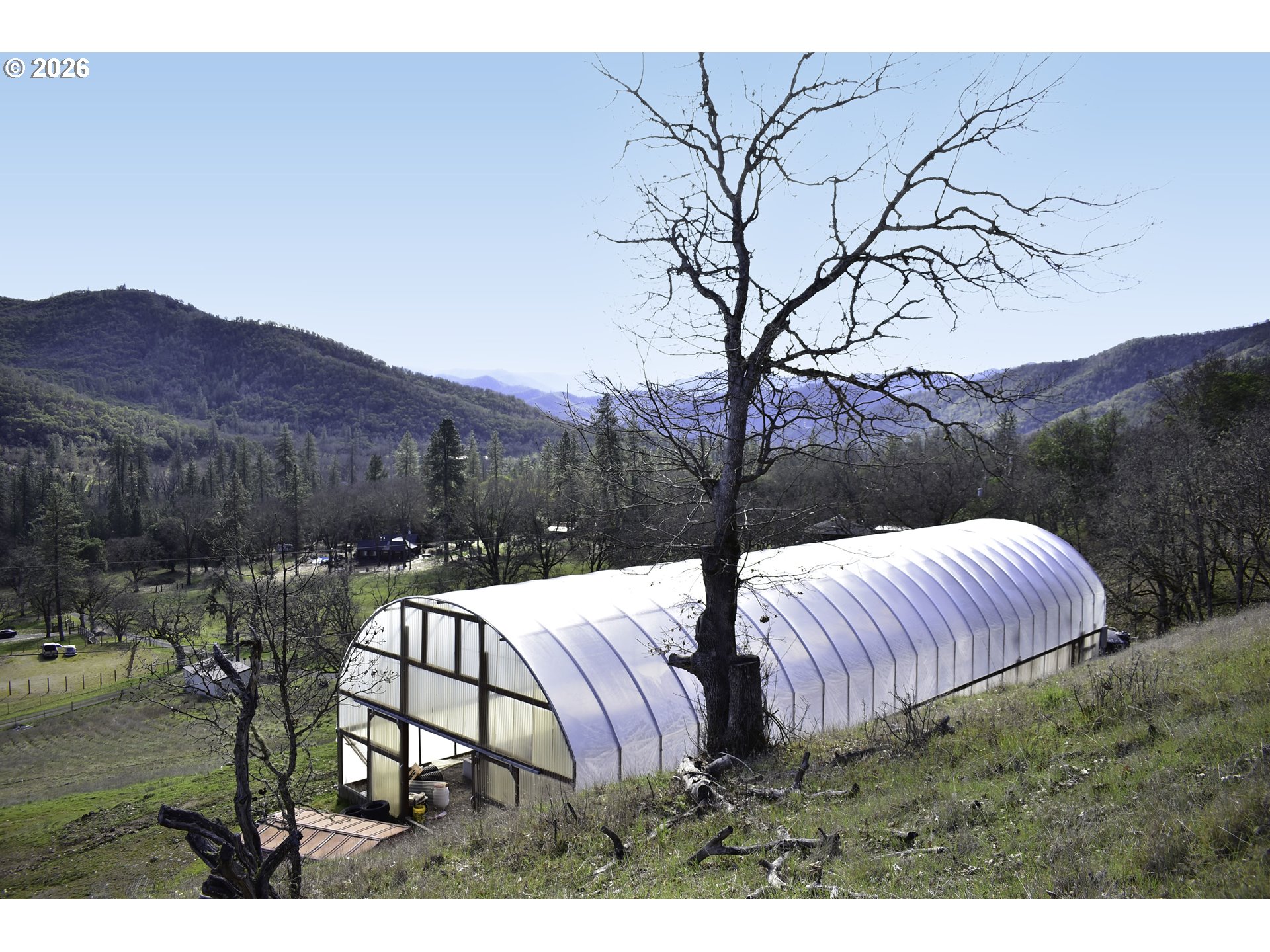 Views, Views, Views abound with the generous 7.35-acre lot near Rogue River access, in beautiful Gold Hill! Set back off Hwy 234, and slightly elevated to take advantage of sweeping mountain views! This sloped, and gently sloped lot, offers an amazing setting for your new dream home! Recently permitted for a new Well to be drilled. Gated access shares the end of the road and an existing Well, with 12950 Hwy 234. Greenhouse is 2943sf and has legal 200A, per seller, is in process of being removed, and can possibly be used as a potential building location. Currently no septic or Well on lot. Do Not drive-up driveway without an agent or an appointment. CCRs only allow stick-built construction, unfortunately no Manufactured Home construction is currently allowed. Buyer to do own due diligence with Jackson County for use and/or any potential home site. Per Seller, electrical in greenhouse is legal.