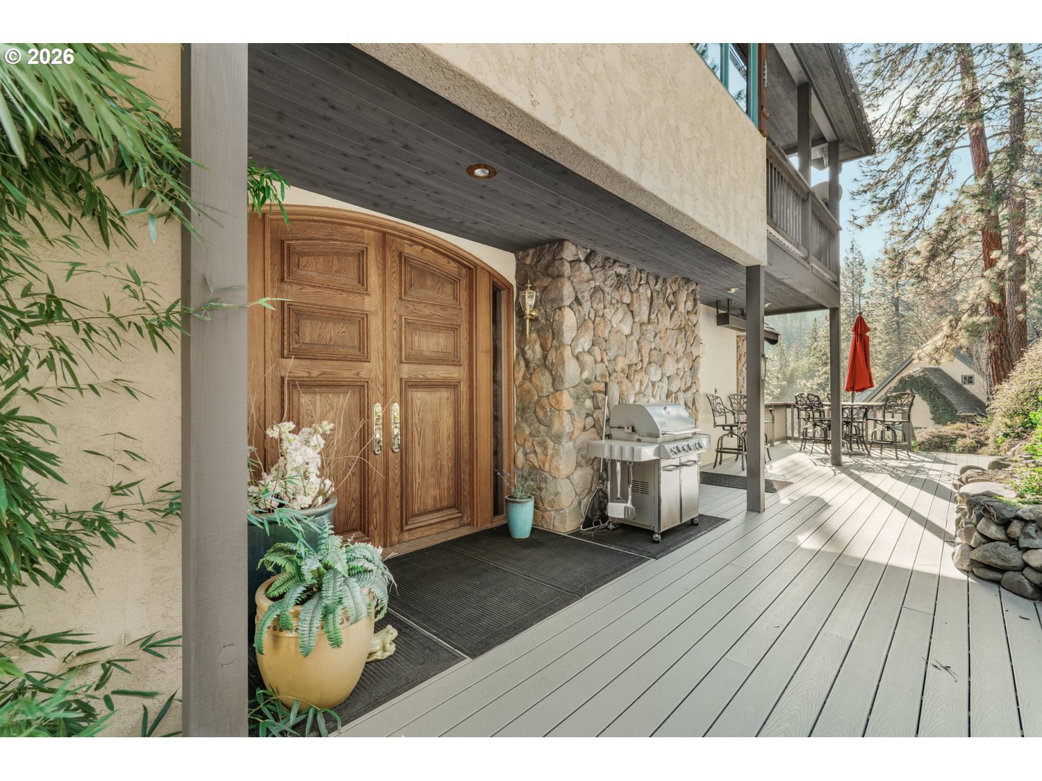 Addressed as 309 and 311 Granite Street, this exceptional estate is tucked above Lithia Park on nearly six private acres, blending timeless European elegance with the tranquility of a forested retreat. Surrounded by mature trees, stone pathways, outdoor patios, and serene water features, the property feels secluded and intentional, yet remains just minutes from downtown Ashland, the Oregon Shakespeare Festival, and the historic Ashland Plaza.Inside, the architecture immediately impresses with vaulted ceilings, dramatic wood craftsmanship, custom detailing, stained glass accents, and expansive windows that fill the home with natural light. Rich textures and thoughtful design elements create a warm, old-world atmosphere that is both grand and inviting.The main residence is centered around a generous open great room with a striking rock fireplace, flowing into an informal dining area and an oversized kitchen ideal for gathering. Multiple living spaces—including a formal dining room, den, and additional sitting rooms—allow flexibility for everyday living or entertaining on a larger scale.The primary residence offers 4,479 square feet, plus 2,364 square feet of flexible ground-level space. A second residence provides 844 square feet for guests or extended living, along with a separate 1,153 square foot multi-purpose room and carport. In total, the estate encompasses approximately 8,840 square feet of versatile living space.Ideally located near Mt. Ashland Ski Resort, Crater Lake National Park, the Britt Music & Arts Festival, and Rogue Valley wineries, this is a rare opportunity to own a private, architectural estate that seamlessly blends refined craftsmanship, natural beauty, and an exceptional cultural lifestyle.