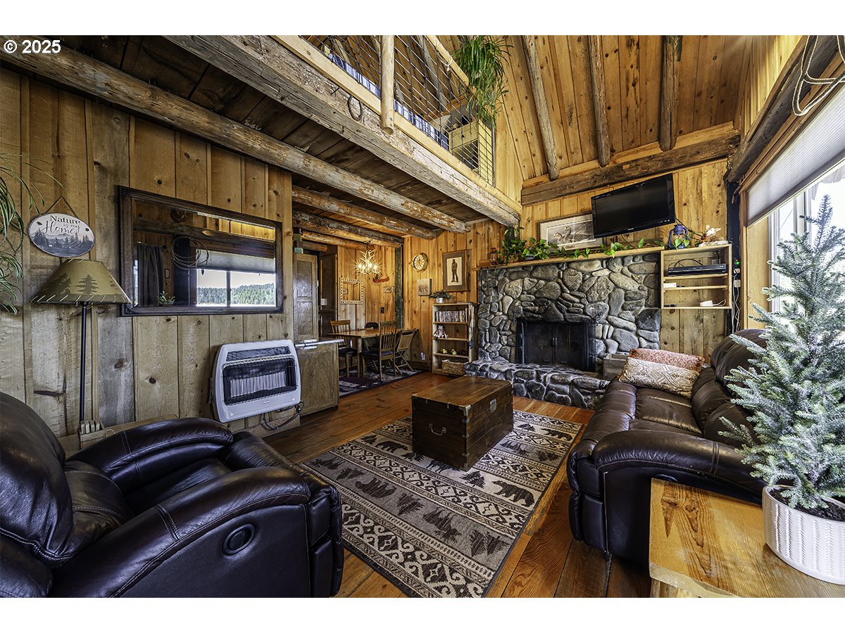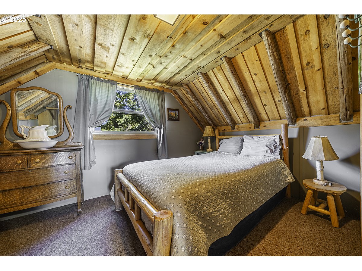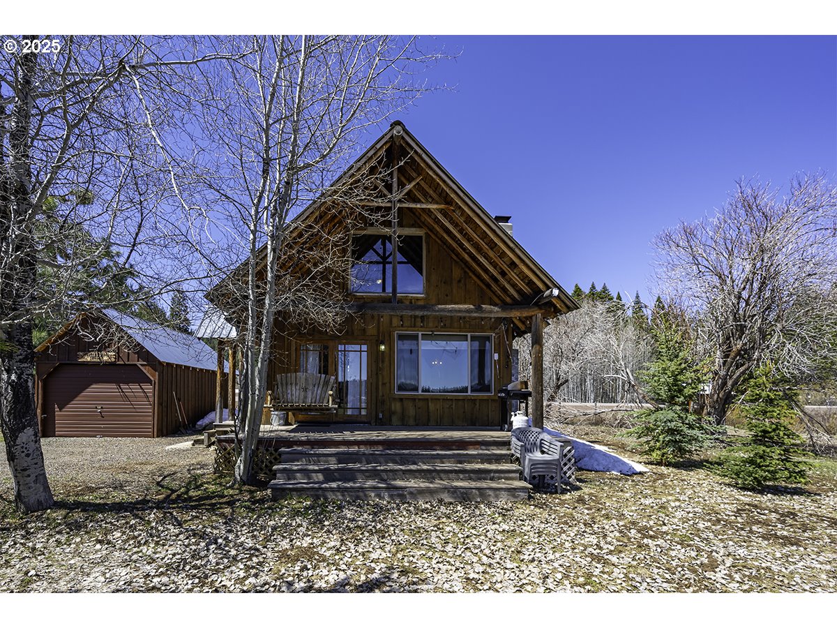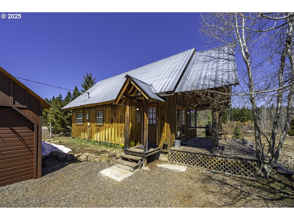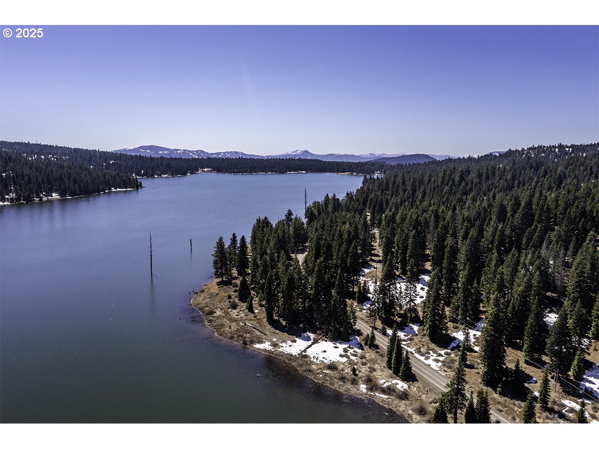 Tucked into nature's embrace, this charming cabin offers rare peace, privacy, and sweeping views of Hyatt Lake. Crafted with timeless wood and hand hewn beams, it welcomes you like an old friend. The cozy living room with wood stove, dining area, kitchen, laundry, bedroom, and bath create easy main-level living, with two more sleeping quarters upstairs for family or guests. Step onto the covered porch to savor the breeze off the lake, the hush of falling snow, or a starlit night. Detached garage is included. Designed to blend naturally into its breathtaking setting, this is more than a cabin, it's a sanctuary where each season brings its own beauty. Whether you're sipping coffee at sunrise or enjoying the sunset dance on the water, every moment here feels like a deep exhale. A true retreat where you can reconnect with nature and yourself.