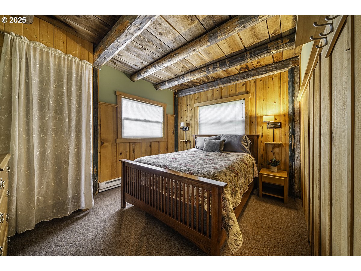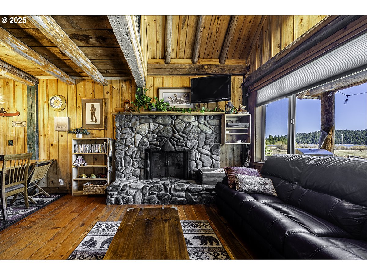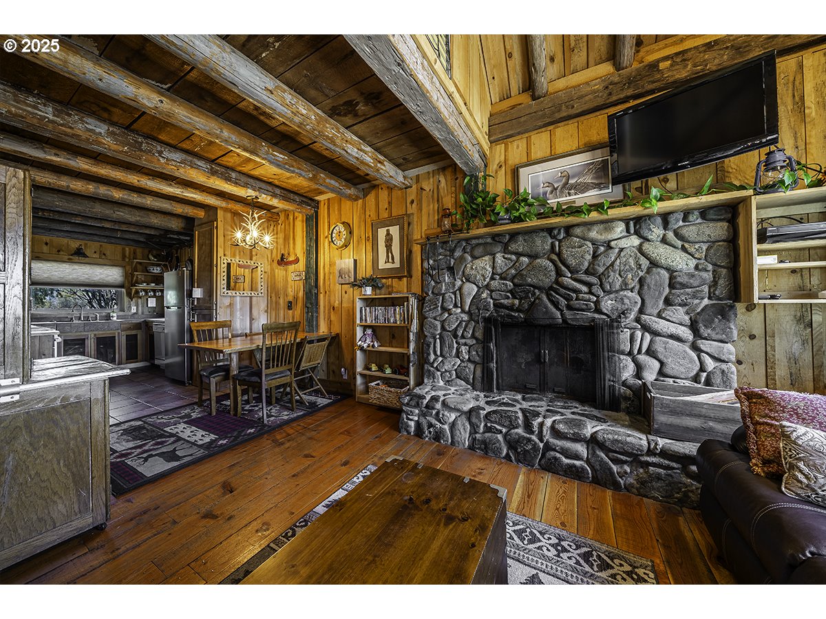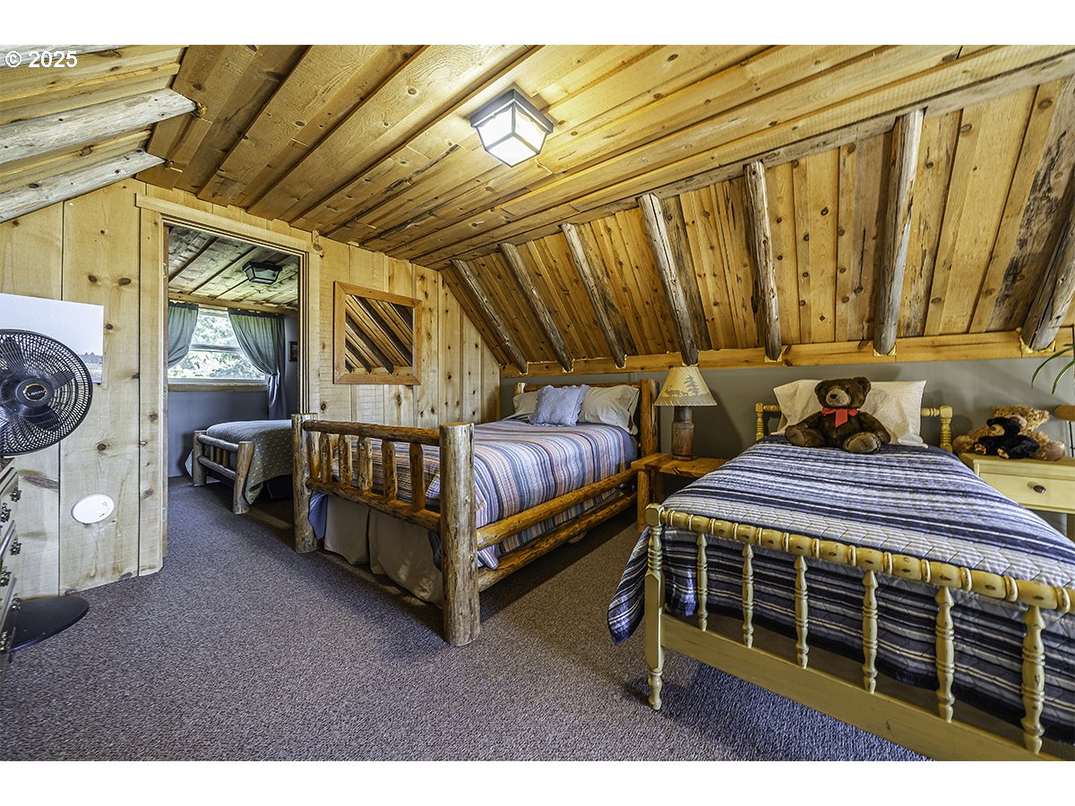 Tucked into nature's embrace, this charming cabin offers rare peace, privacy, and sweeping views of Hyatt Lake. Crafted with timeless wood and hand hewn beams, it welcomes you like an old friend. The cozy living room with wood stove, dining area, kitchen, laundry, bedroom, and bath create easy main-level living, with two more sleeping quarters upstairs for family or guests. Step onto the covered porch to savor the breeze off the lake, the hush of falling snow, or a starlit night. Detached garage is included. Designed to blend naturally into its breathtaking setting, this is more than a cabin, it's a sanctuary where each season brings its own beauty. Whether you're sipping coffee at sunrise or enjoying the sunset dance on the water, every moment here feels like a deep exhale. A true retreat where you can reconnect with nature and yourself.