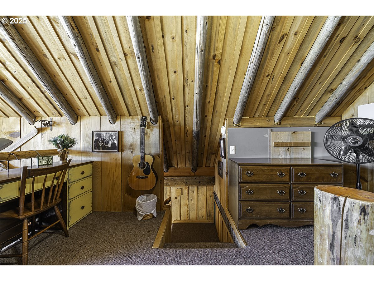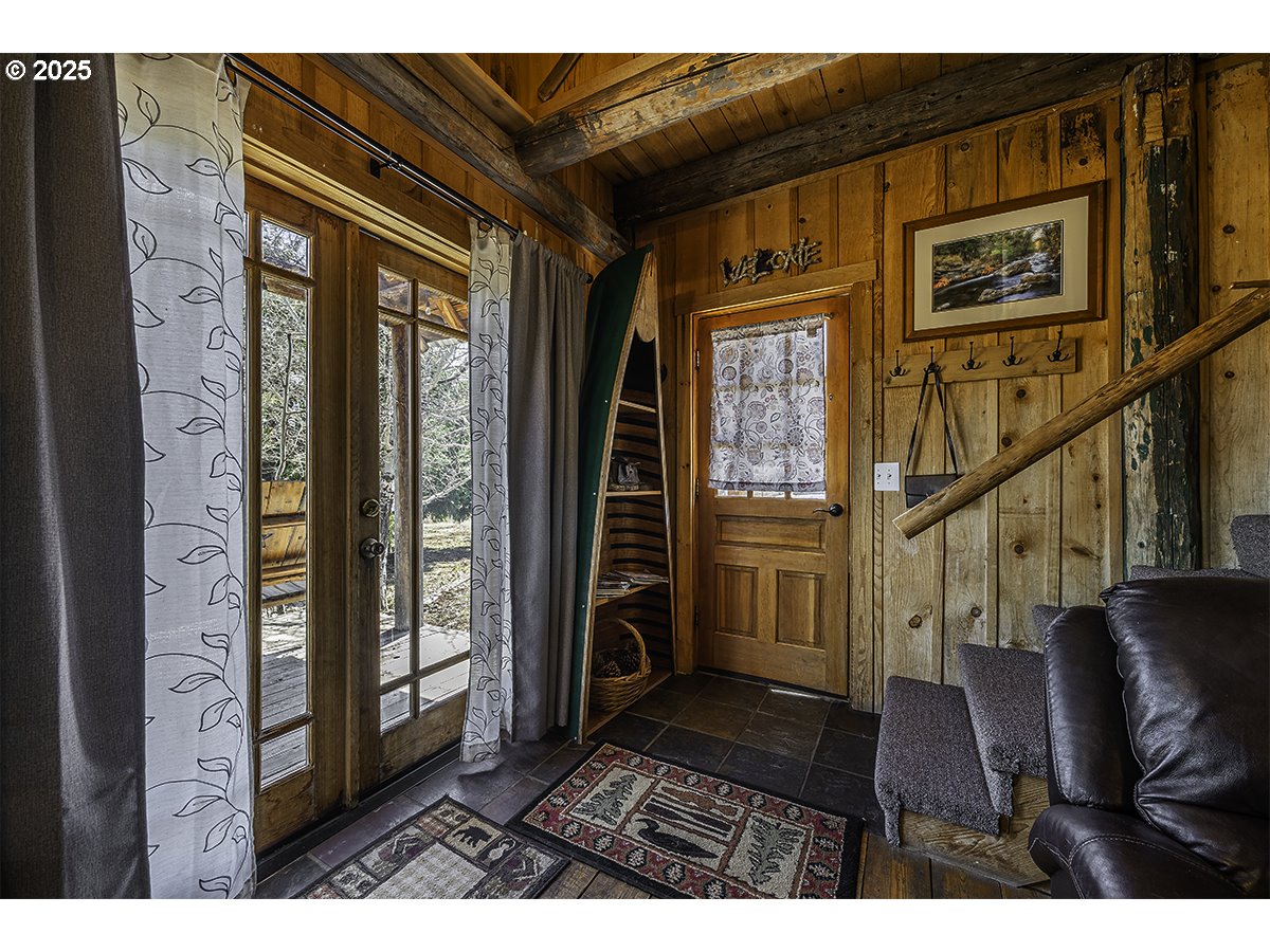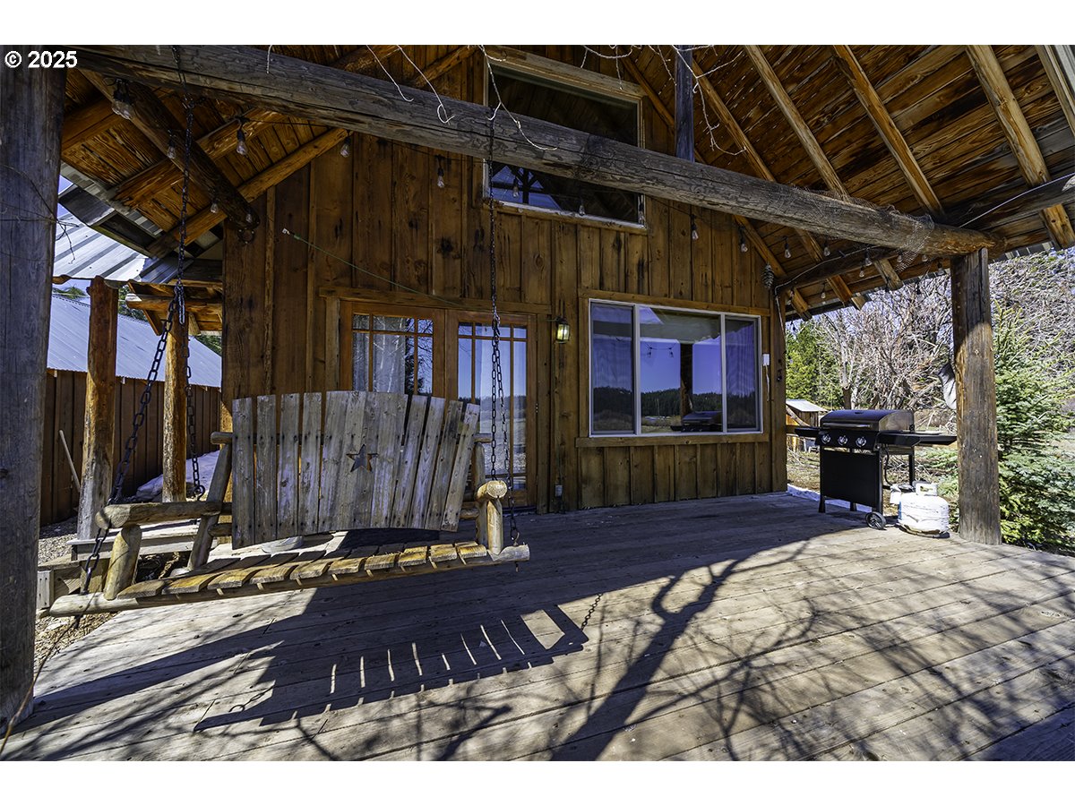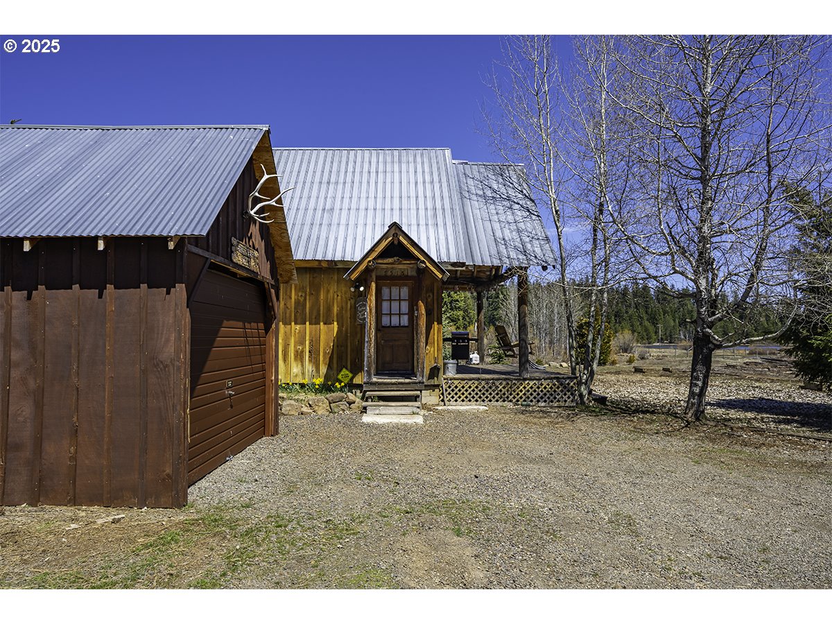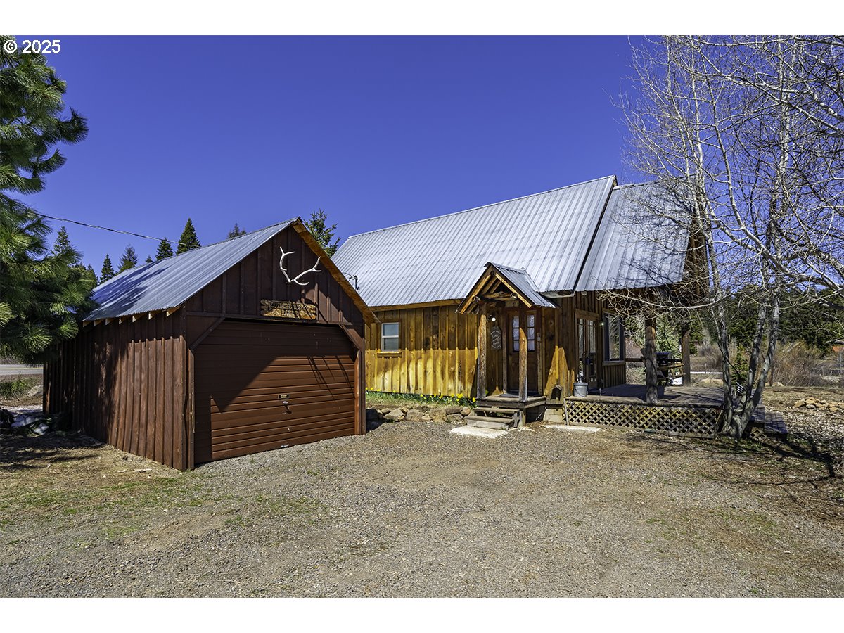 Tucked into nature's embrace, this charming cabin offers rare peace, privacy, and sweeping views of Hyatt Lake. Crafted with timeless wood and hand hewn beams, it welcomes you like an old friend. The cozy living room with wood stove, dining area, kitchen, laundry, bedroom, and bath create easy main-level living, with two more sleeping quarters upstairs for family or guests. Step onto the covered porch to savor the breeze off the lake, the hush of falling snow, or a starlit night. Detached garage is included. Designed to blend naturally into its breathtaking setting, this is more than a cabin, it's a sanctuary where each season brings its own beauty. Whether you're sipping coffee at sunrise or enjoying the sunset dance on the water, every moment here feels like a deep exhale. A true retreat where you can reconnect with nature and yourself.