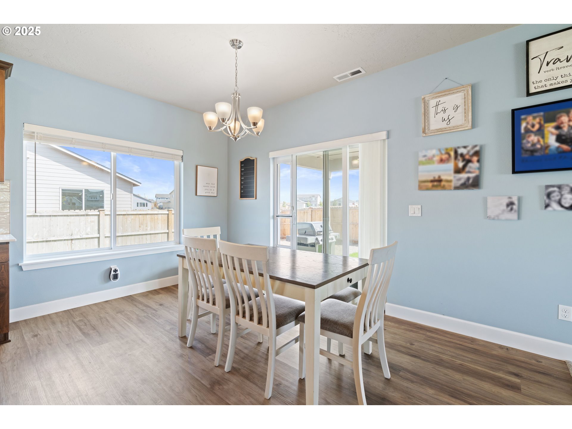 Welcome to your dream home! Nestled in a charming neighborhood, this sprawling 2386 sq ft residence blends luxury and comfort with its 4 spacious bedrooms and 2.5 elegant baths. The primary suite on the main floor is a retreat, featuring a sumptuous soaking tub and an expansive walk-in closet. Upstairs, discover three generously sized bedrooms and an extra-large loft, perfect for a TV room, game room, or office. The state-of-the-art kitchen will impress any chef with its stainless 5-burner gas range with air fryer and convection oven, quartz countertops, large island, and pantry. All energy star appliances, including a refrigerator and dishwasher, make this kitchen both stylish and efficient. Enjoy comfort year-round with a forced air gas high-efficiency furnace and a cozy gas fireplace, plus the convenience of a spacious 3-car garage. Step outside to a landscaped yard, complete with a fully fenced backyard and a lovely covered patio perfect for outdoor entertaining.