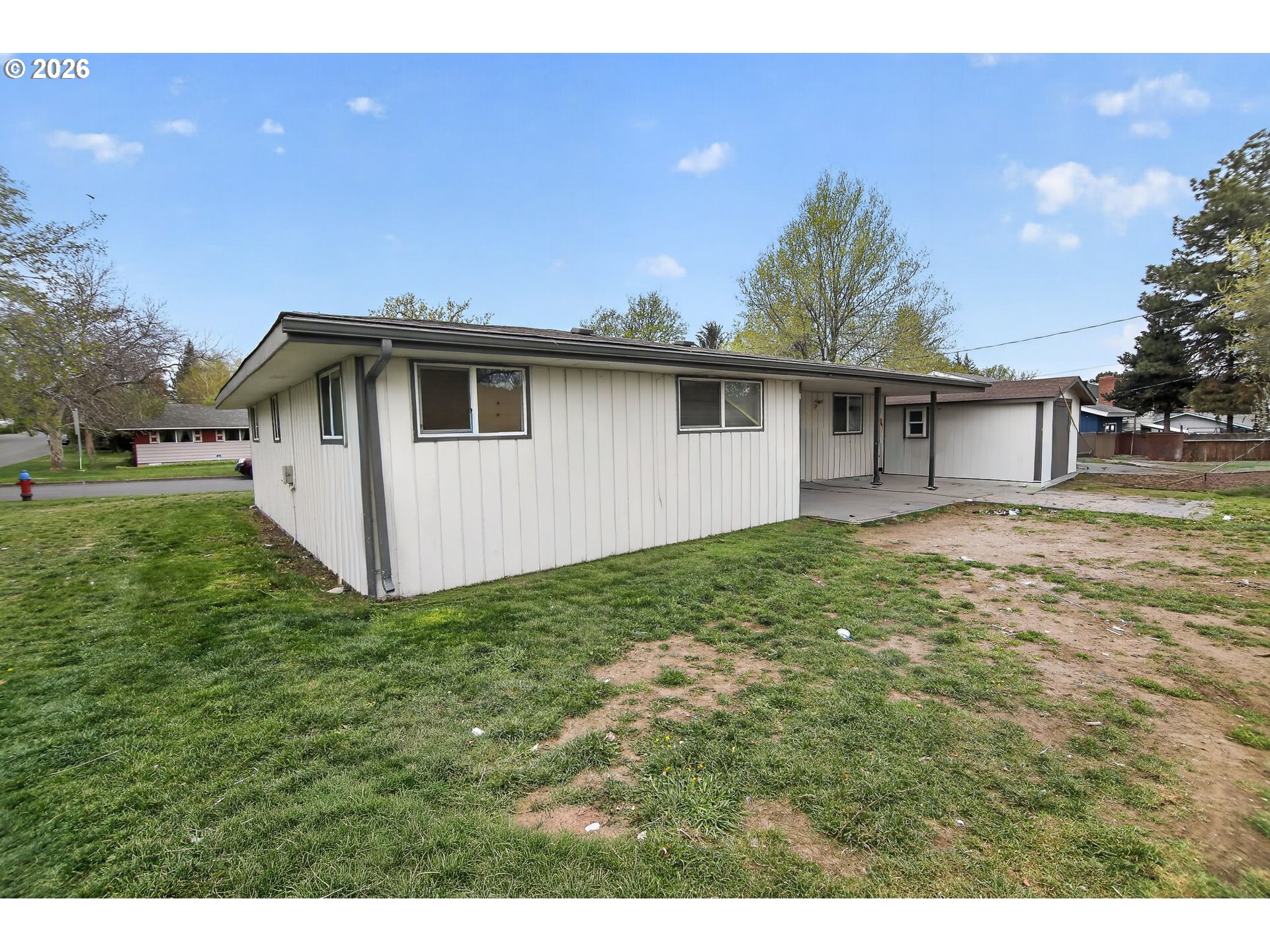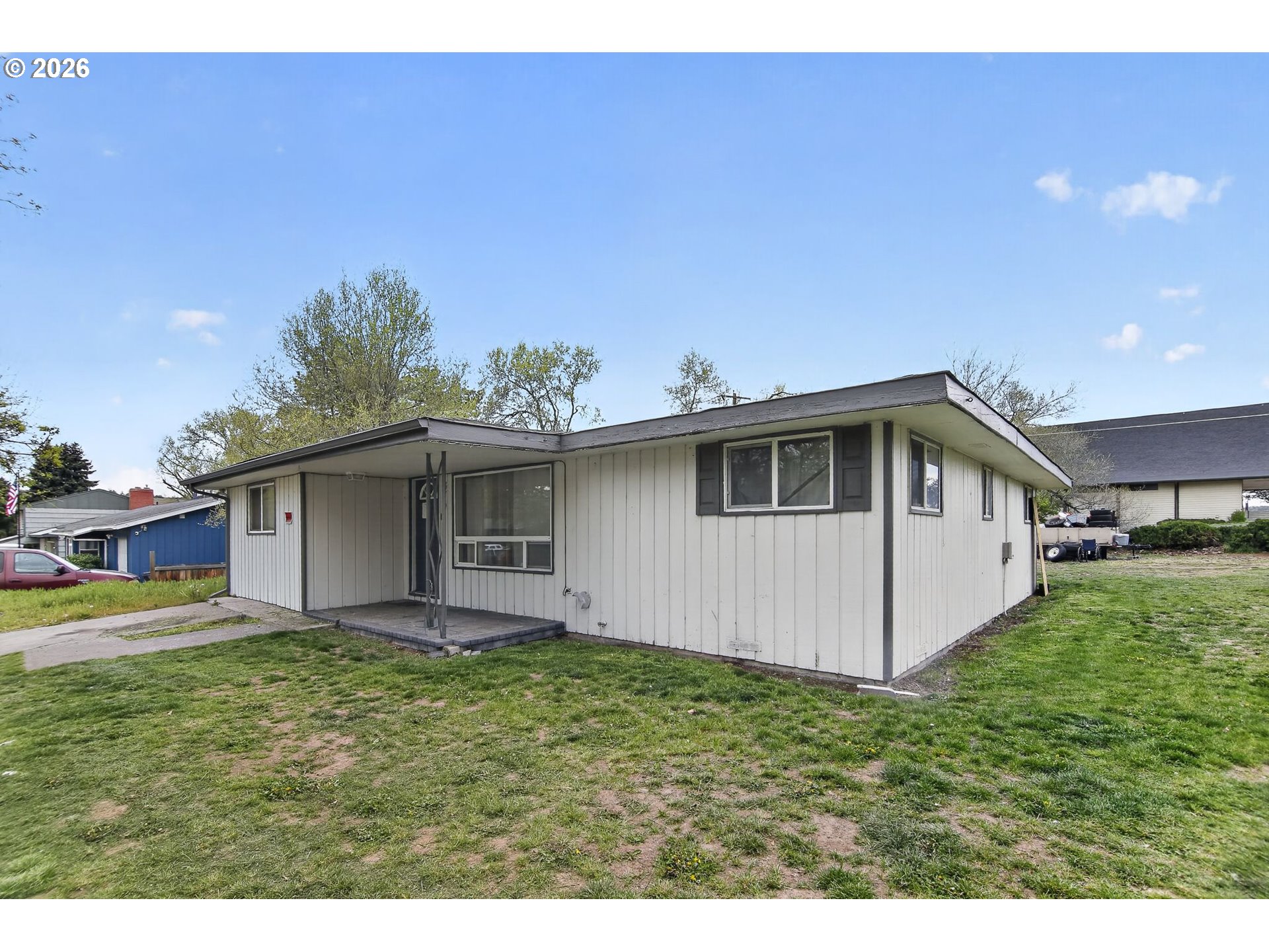 Welcome to this inviting single-level home in the heart of Madras, offering comfort, functionality, and easy living. With 1,403 square feet, this 3-bedroom, 1.5-bath home provides a practical layout designed for everyday convenience.Inside, the living room features wall-to-wall carpet, creating a cozy space to relax. The kitchen flows seamlessly into the dining area, making mealtime and entertaining simple and connected. The dining room includes a ceiling fan and sliding glass doors that open directly to the backyard, bringing in natural light and offering easy indoor-outdoor access.All three bedrooms are comfortably sized, each with its own closet and wall-to-wall carpet, providing both comfort and storage.Step outside to a spacious backyard with plenty of room to garden, play, or create your own outdoor retreat.Located in a quiet neighborhood with easy access to local amenities, this home is a great opportunity for anyone looking for single-level living with space and potential.