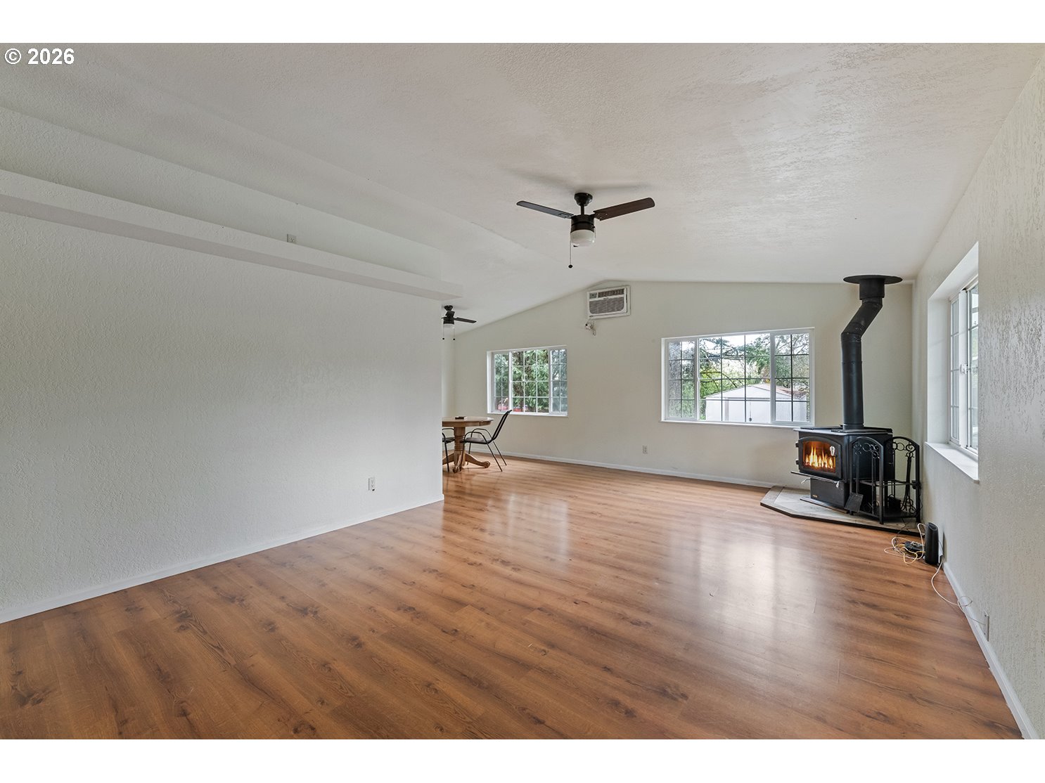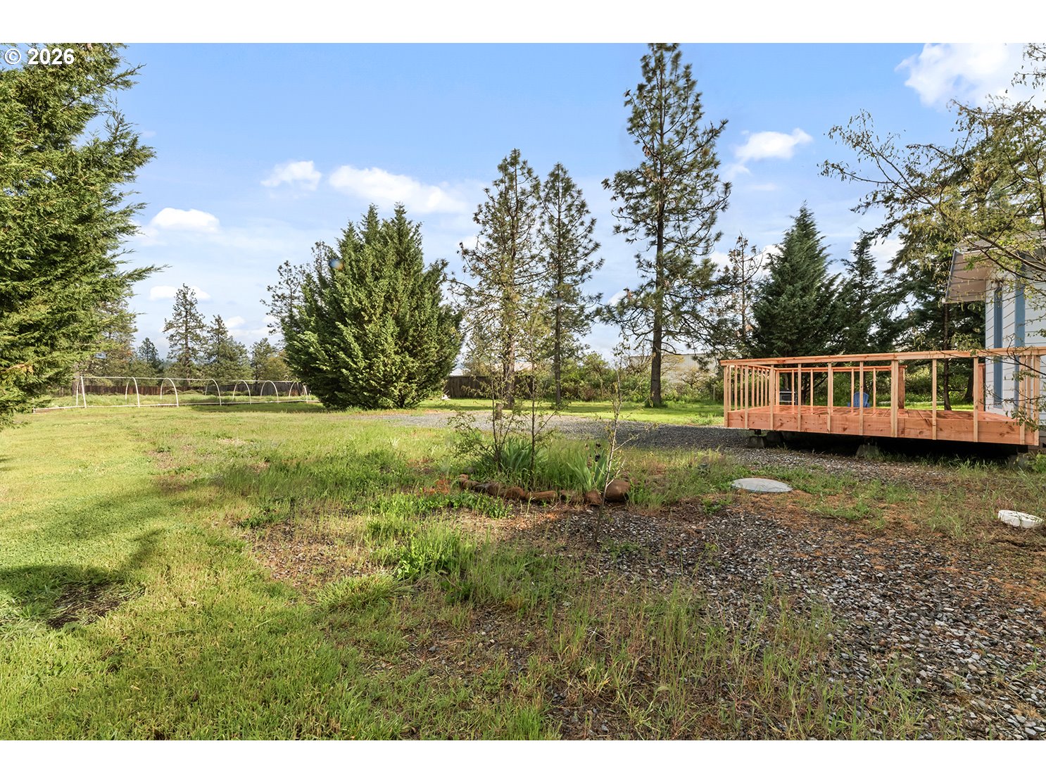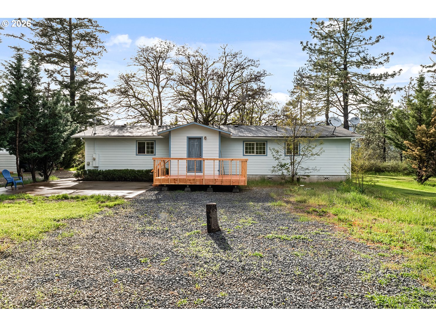 Experience the perfect blend of tranquility and convenience in this inviting 3-bedroom, 2-bath home. Spanning 1,578 sq. ft. of comfortable living space, this residence is perfectly situated on 2.50 level acres just minutes from downtown Cave Junction.Upon entering, you are greeted by a versatile, enclosed sunroom that offers endless possibilities for use. The interior features a bright living room with vaulted ceilings and laminate flooring, centered around a cozy wood-burning stove that creates a warm, open atmosphere. The spacious kitchen is designed for functionality, offering ample cabinetry and counter space. The primary suite serves as a quiet retreat, complete with a walk-in closet and a full shower/tub combination.The exterior of the property is a nature lover's dream. A peaceful back porch overlooks a variety of carefully placed cypress, cedar, and blue spruce trees, providing a lush and private backdrop. Beyond the landscaped yard, the level acreage is ideal for horses and includes a double metal canopy for hay or animal shelter. Additionally, the property features a 16x24 shop/guest quarters and generous parking for vehicles and recreational equipment. This property is a rare opportunity to establish the rural lifestyle you desire with all the comforts of home. Buyer to due diligence regarding the use and condition of the shop/guest house.