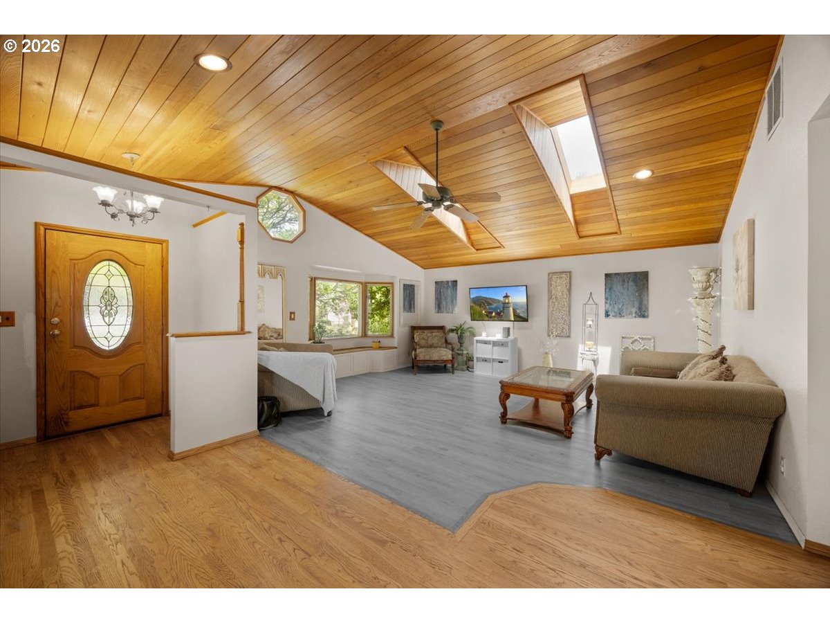 Spacious and versatile, this impressive 3,035 sq ft home in Grants Pass offers the perfect blend of comfort, functionality, and charm. Featuring 3 bedrooms and 2.5 bathrooms, this property is ideal for multi-generational living or those seeking separate spaces for work, relaxation, and entertaining.Inside, you’ll find multiple living areas designed with flexibility in mind—perfect for a large or extended family setup. The home showcases beautiful tongue-and-groove ceilings that add warmth and character throughout. The expansive primary suite is a true retreat, complete with a generous layout, private bathroom, and a dedicated vanity area ideal for getting ready with ease.The kitchen comes fully equipped with all appliances included, making this home truly move-in ready. Downstairs, a large family room provides additional living space perfect for gatherings, a media room, or recreation.Step outside to discover a peaceful, “secret garden” style backyard—lush, private, and thoughtfully designed for relaxation or entertaining. Despite being conveniently close to town, the setting feels secluded, offering the best of both worlds.Additional highlights include a hot tub area for unwinding after a long day, ample space for gardening, and a layout that supports both everyday living and special occasions.This unique property combines size, comfort, and privacy in a desirable location—don’t miss the opportunity to make it yours.