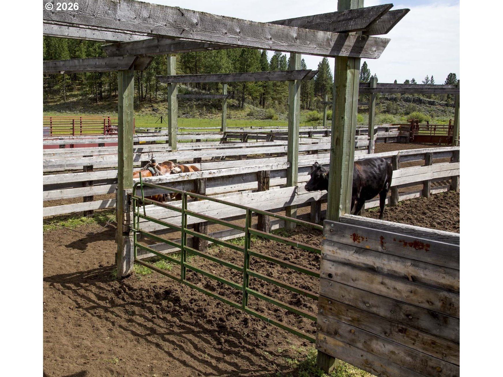 Aspen Ridge Ranch, in South-Central Oregon, between Klamath Falls and Lakeview, offers privacy on more than 3,598+/- deeded acres, plus an adjoining 11,718+/-acre USFS grazing allotment. Owned and improved continuously since 1975, the ranch features a 7,000+/ sq ft log lodge with multiple gathering areas, ensuite bedrooms, a commercial kitchen, and five 1,250+/ sq ft log cabins for luxurious retreats. Operating off-grid with hydro power and propane generators, it emphasizes sustainable living. Water is abundant from five reservoirs, and Fishhole Creek, with senior water rights supporting irrigation and 800+/- cow equivalents seasonally on both deeded and USFS lands. Diverse wildlife, including elk, deer, and waterfowl, provides hunting and fishing opportunities. Secluded, yet reachable: commercial flights available at Medford, Redmond, and Reno, plus nearby private air options.