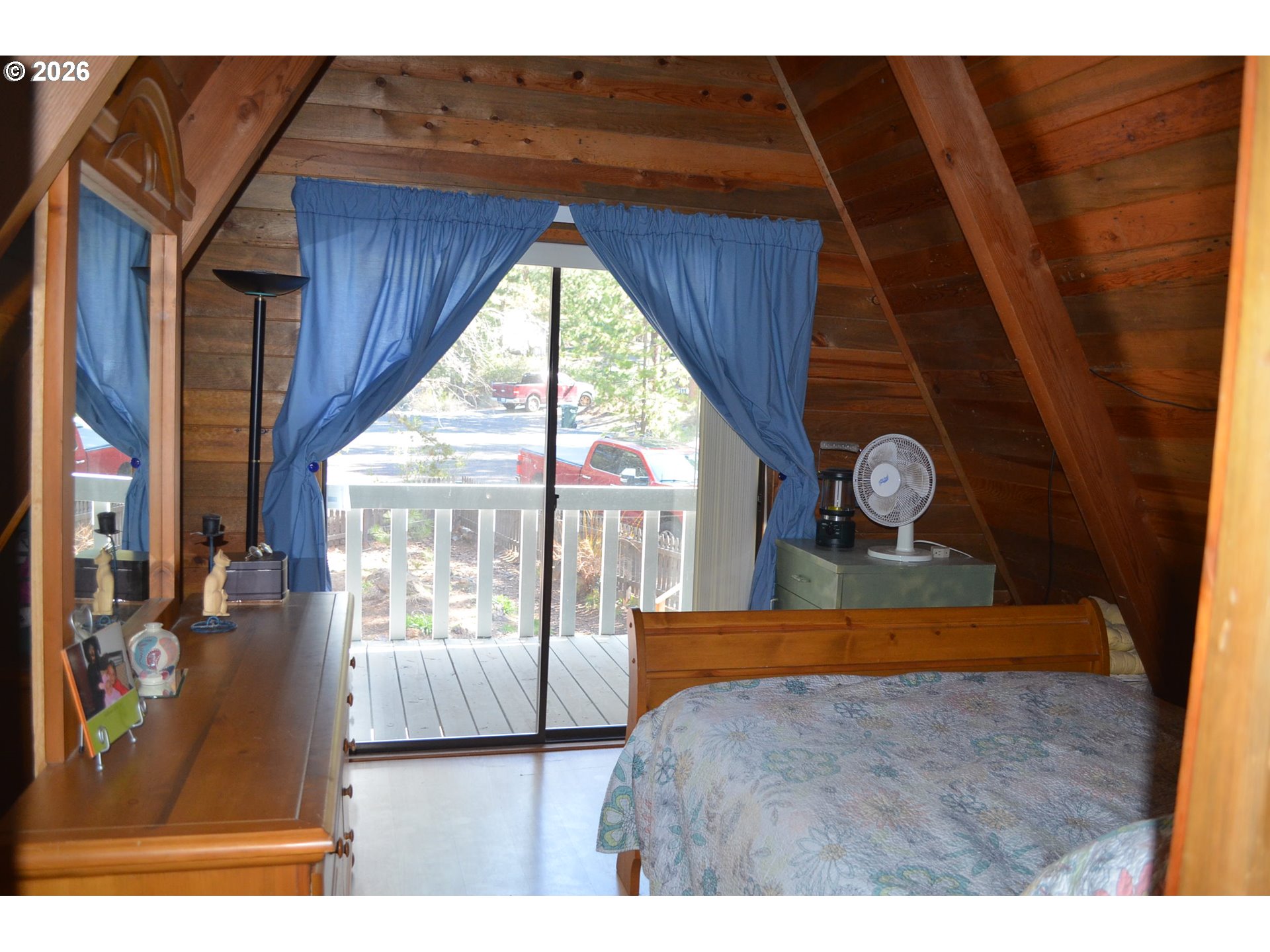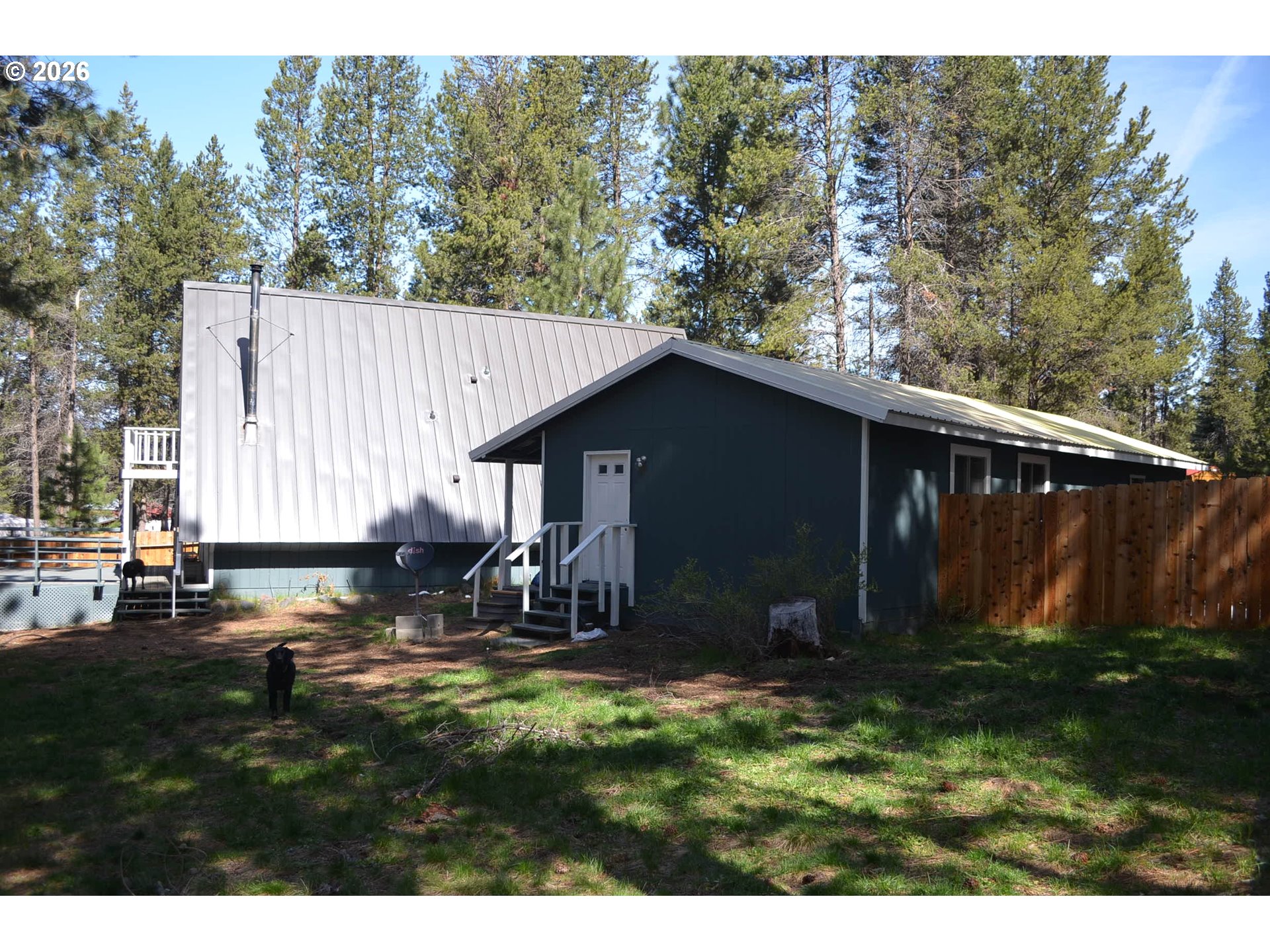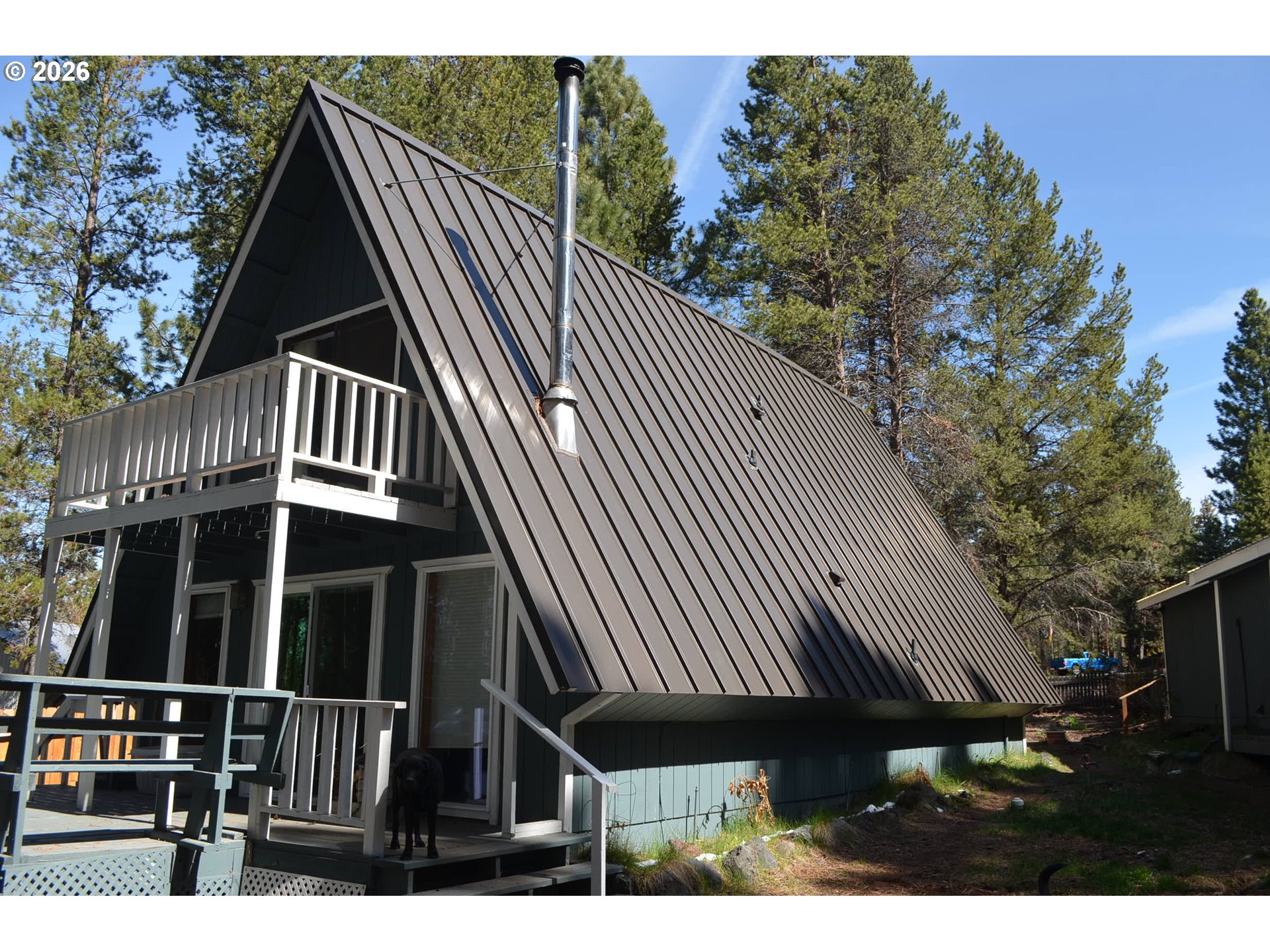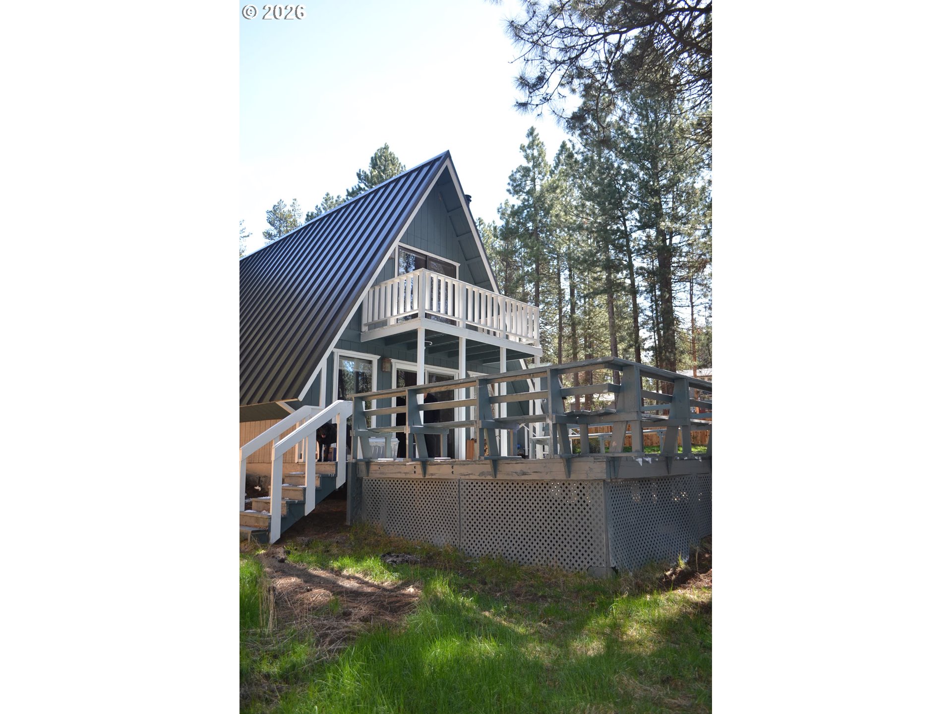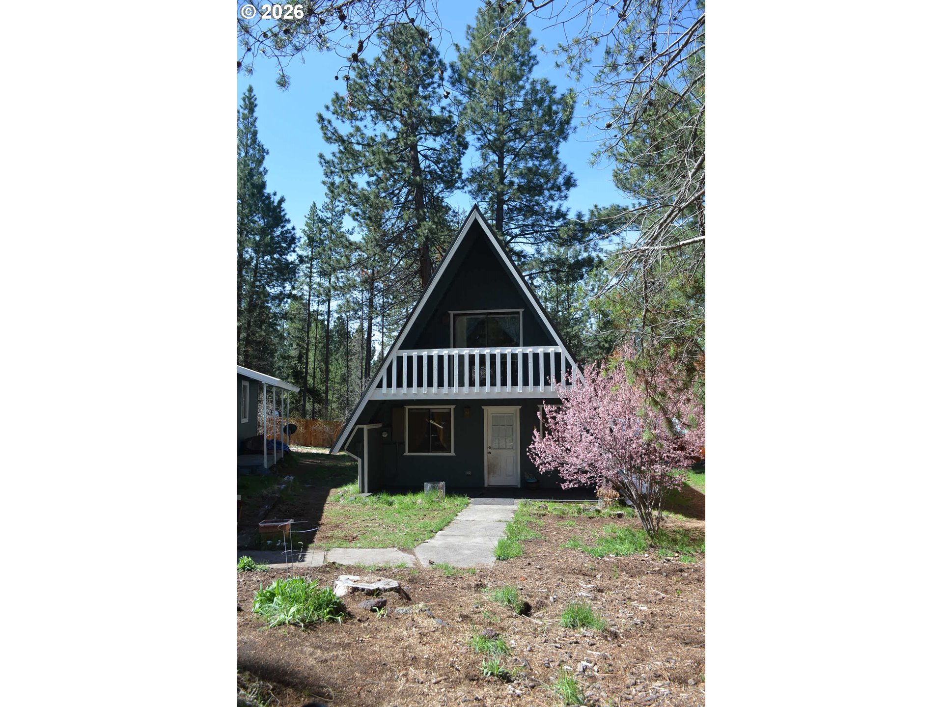 Charming A-frame home on a quarter-acre lot, offering the perfect blend of comfort, character, and outdoor adventure. This 3-bedroom, 2-bath property features balconies off both upstairs bedrooms, an open-beam ceiling, and a spacious deck off the living area—ideal for enjoying the peaceful surroundings. The living room is warm and inviting with a wood stove, complemented by new windows and a new sliding glass door that fill the space with natural light. A detached two-car garage adds excellent functionality with a workbench, dedicated laundry room with cadet heater, and a finished bonus room for hobbies, storage, or additional living space. The property is fully fenced with simple, low-maintenance landscaping and is located on a paved cul-de-sac for added privacy and convenience. Just minutes from forest land, beautiful lakes, and the Willamette Pass Ski Resort, this home is a fantastic base for fishing, hiking, boating, skiing, and year-round outdoor recreation. Whether you're seeking a full-time residence or a vacation getaway, this property offers the perfect retreat.