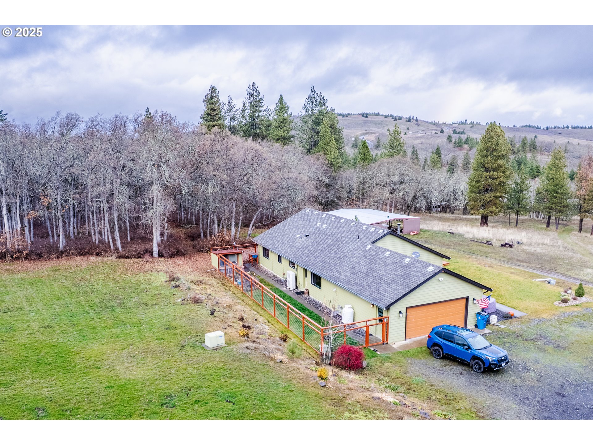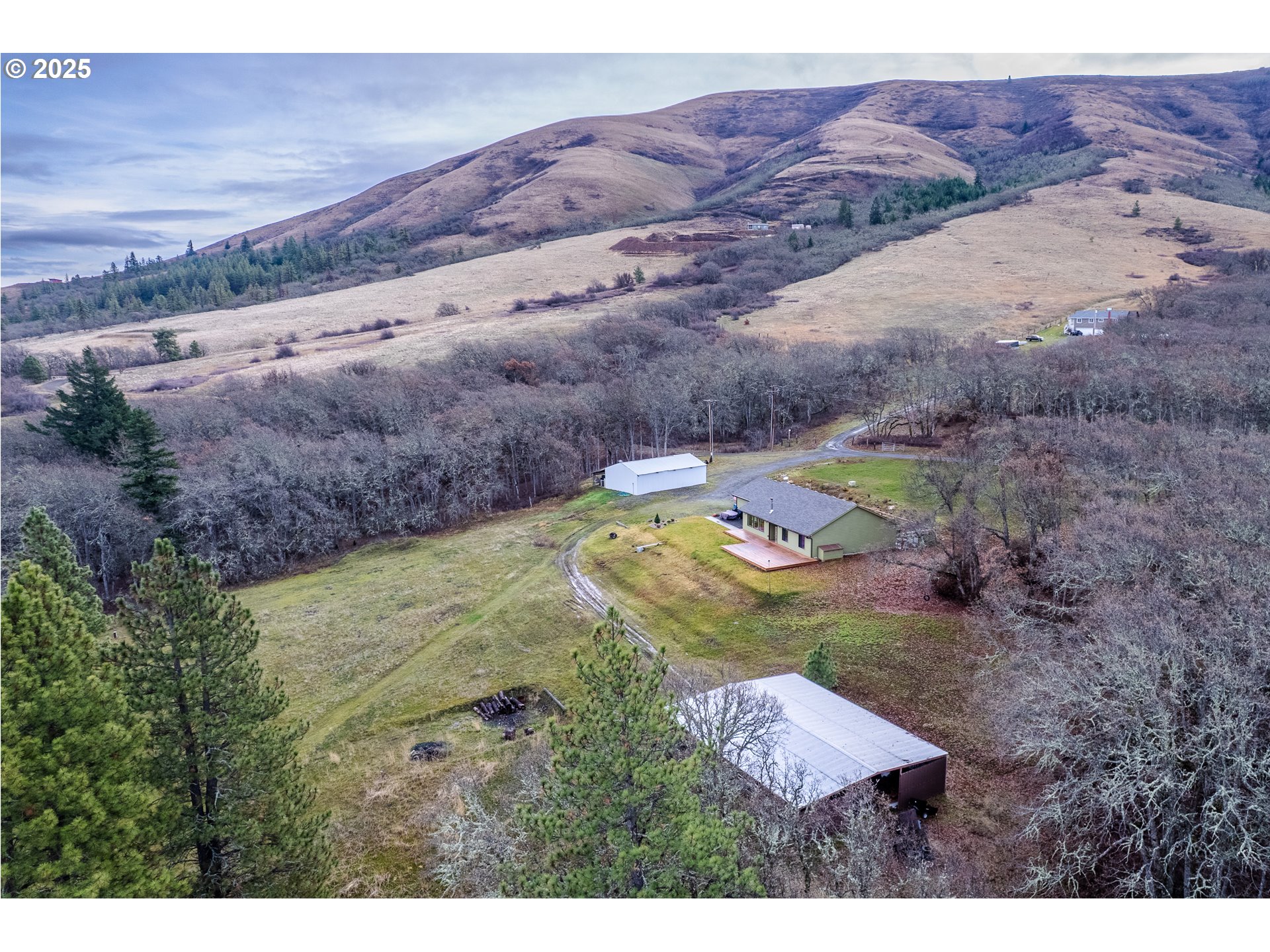 Discover this completely updated single-level contemporary country home on 20 sprawling acres in Lyle, Washington. This 3-bedroom, 2-bathroom property offers 1,704 square feet of thoughtfully designed living space with an open floor plan that seamlessly connects the gourmet kitchen to the vaulted ceiling living room. The heart of the home features a large kitchen with quartz countertops, counter-to-ceiling tile backsplash, eating island, and propane range. LVP flooring flows throughout the home , while a cozy wood-burning stove creates a welcoming atmosphere. The spacious primary bedroom includes its own mini split, a walk-in closet, and an oversized walk-in shower. Storage enthusiasts will appreciate the massive amount of built-in storage throughout the home. Step outside to enjoy the large deck overlooking your private 20-acre retreat, complete with pasture land and a serene pond. The property includes 2 outbuildings: a 24x42 shop with carport cover and a 36x48 lean-to barn, perfect for equipment storage or livestock. Additional features include a chicken coop, dog run, and ample parking areas with minimal steps for easy access. Located off Centerville Highway, you're just minutes from outdoor recreation opportunities including the nearby Klickitat Wildlife Area and Van Life Campground at Lyle Farmstead. This property combines modern updates with country living, offering the perfect balance of comfort and functionality on your own private acreage.