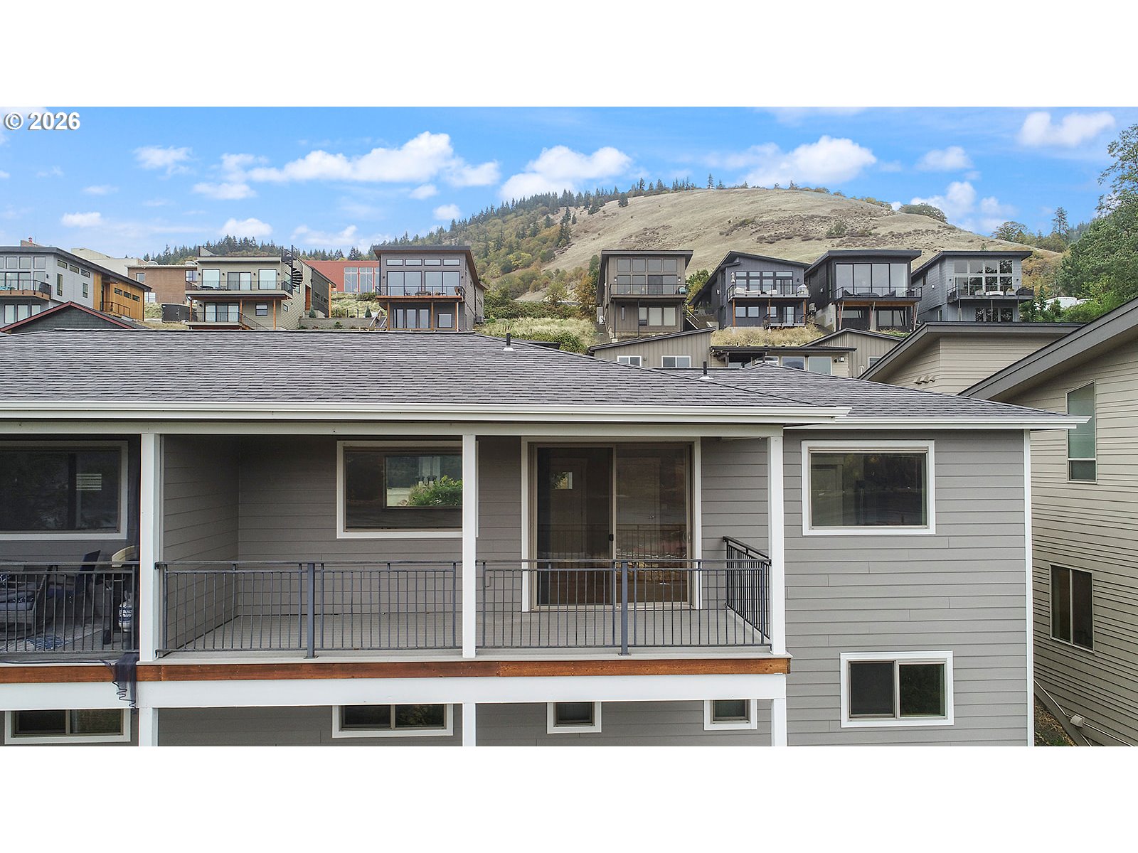 A fantastic Columbia River view awaits you from this low maintenance townhouse with high end finishes. The open floor plan when entering on the main boasts engineered hardwood floors throughout, the kitchen has slate SS appliances, and granite countertops on the island and in the half bath. The slider from the living area leads to the view deck with trex decking. Two bedroom suites on lower level with full bathrooms and large closets. Energy efficient mini splits throughout the home. The HOA painted the home this summer, as well as repaved the road. HOA also provides all exterior maintenance, including the yard and snow removal. Perfect for the busy buyer who wants to spend their free time playing in the Gorge.