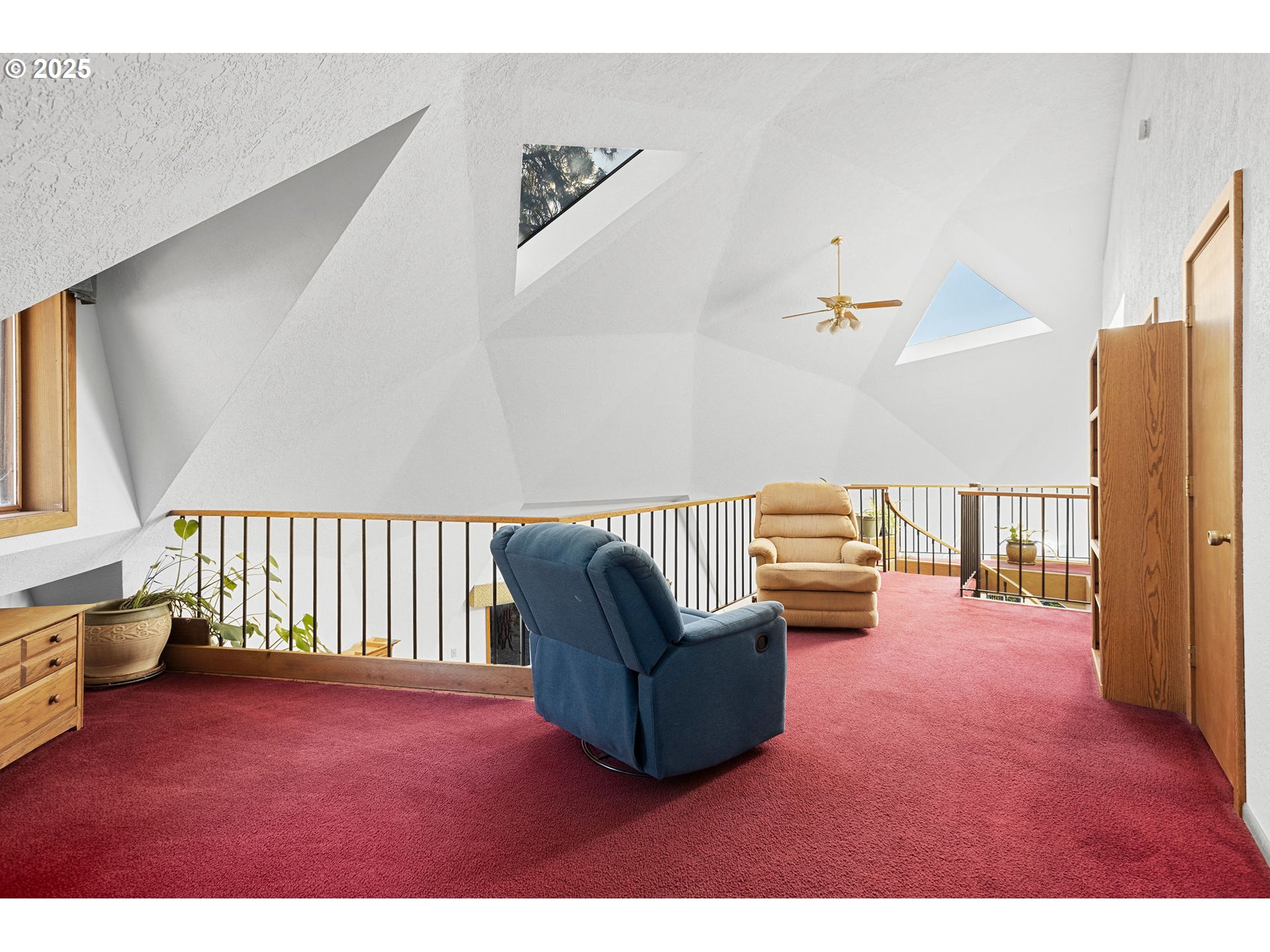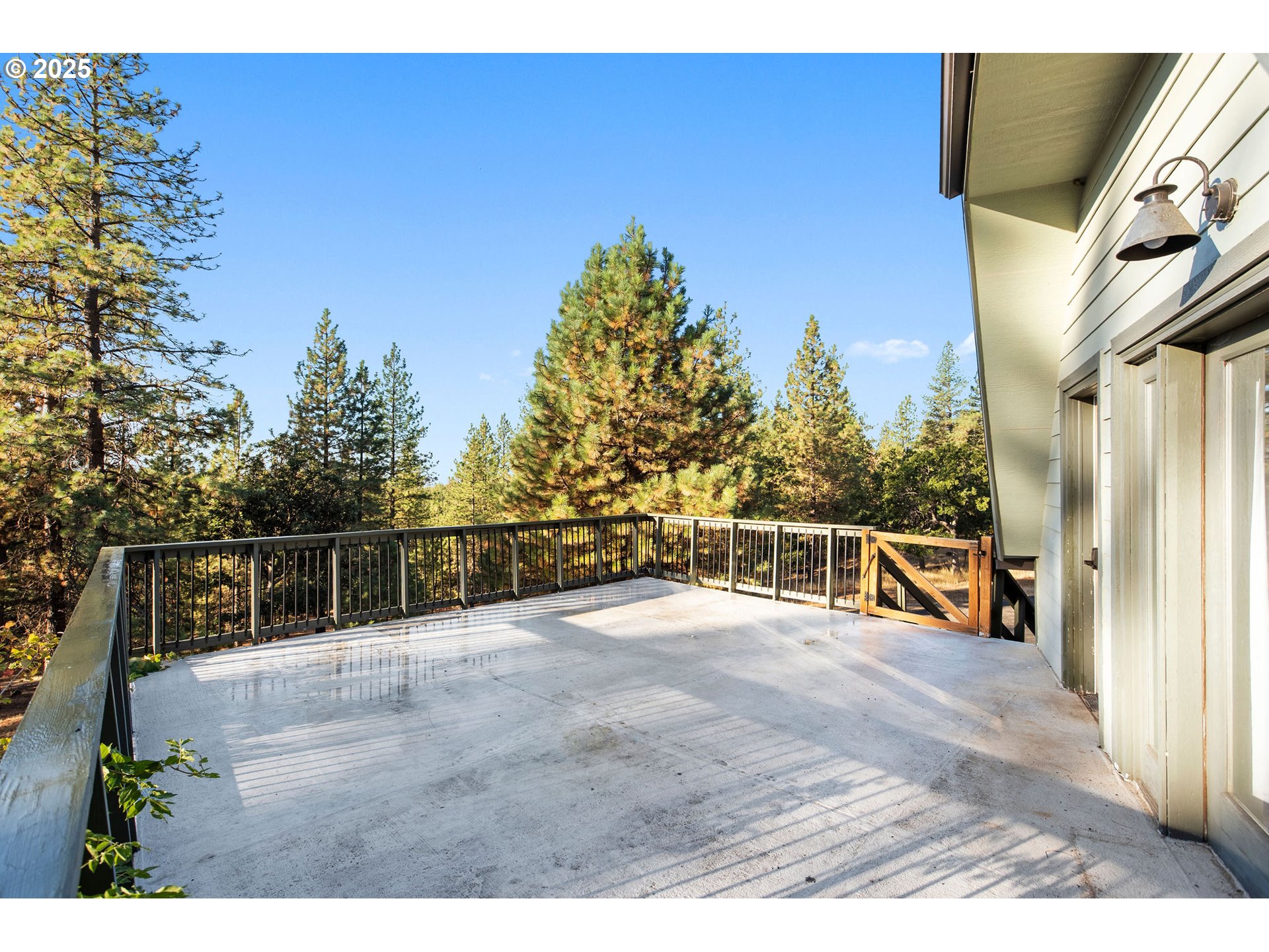 Set among tall Ponderosa pines on five forested acres, this spacious geodesic home combines distinctive architecture with versatile living space across three levels. With five bedrooms, three full bathrooms, and multiple indoor and outdoor gathering areas, the home offers both function and personality in a quiet, wooded setting. You’re welcomed into a light-filled living room with soaring ceilings and a sense of openness that carries throughout the home. Just off the main space, a hallway leads to two large bedrooms and a full bathroom. One of the bedrooms opens to a private balcony—an ideal spot to take in the tree-lined surroundings. The dining area flows directly from the living room and connects to a well-appointed kitchen featuring a center island with bar seating, generous counter space, and a walk-in pantry. At the heart of the home is a beautiful spiral staircase that leads to the upper and lower levels. Upstairs, the primary suite offers a quiet, private space complete with a full bathroom, large closets, and a soaking tub. Just outside the suite, a loft-style space overlooks the main living area below, bringing in natural light and maintaining an airy, connected feel throughout. Step out from the living room onto a spacious deck that extends your living space into the trees. Below, a patio area includes hookups for a hot tub and a private entrance to the lower level—perfect for guests, creative workspace, or multi-use living. Located on a private road in the Ponderosa Pines community, this home offers privacy and room to grow, while still being close enough to access everything you need in town. Come see the space, light, and layout for yourself—you may not want to leave.