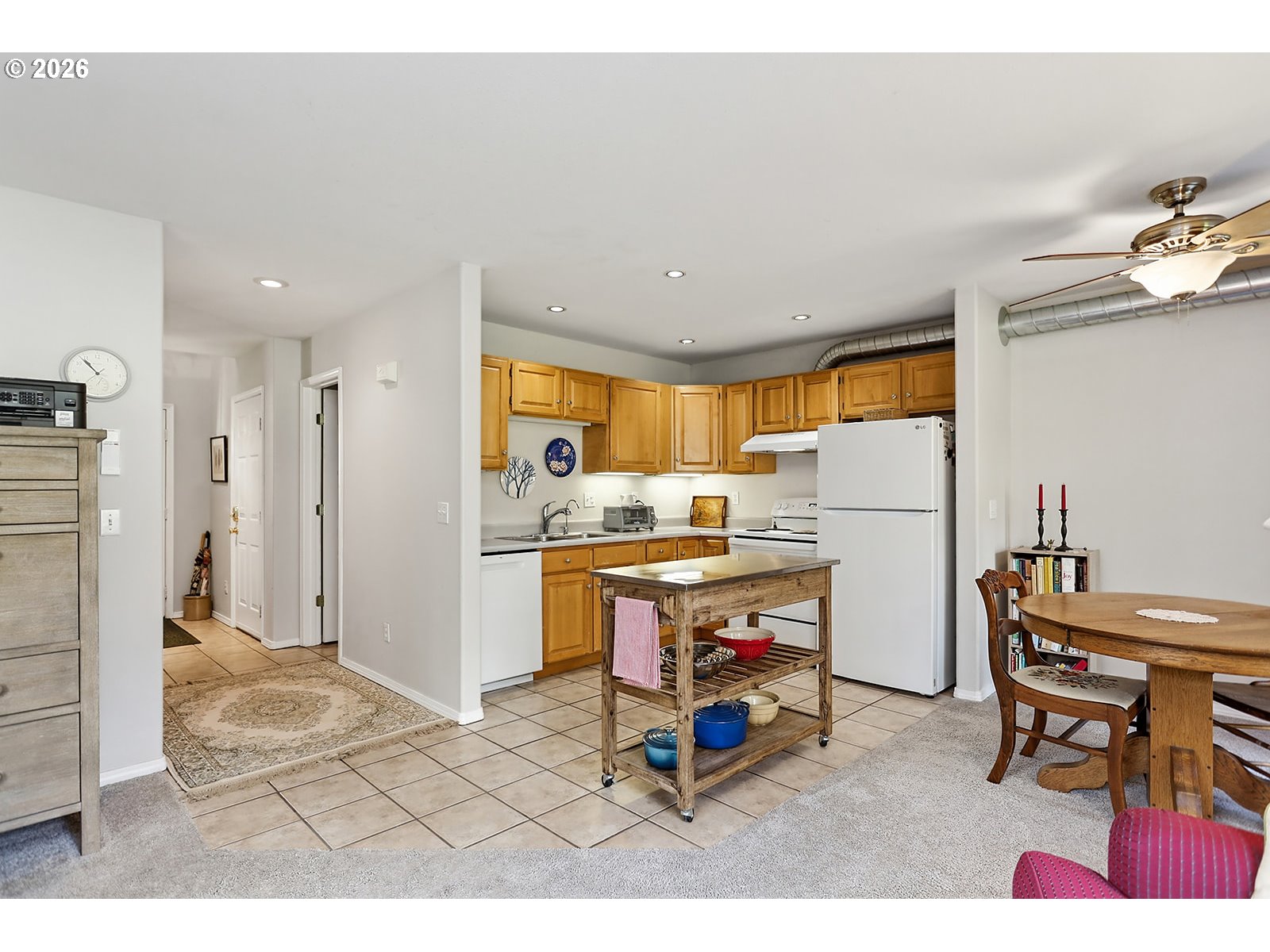 CeilingFan, Laundry, TileFloor, WalltoWallCarpet