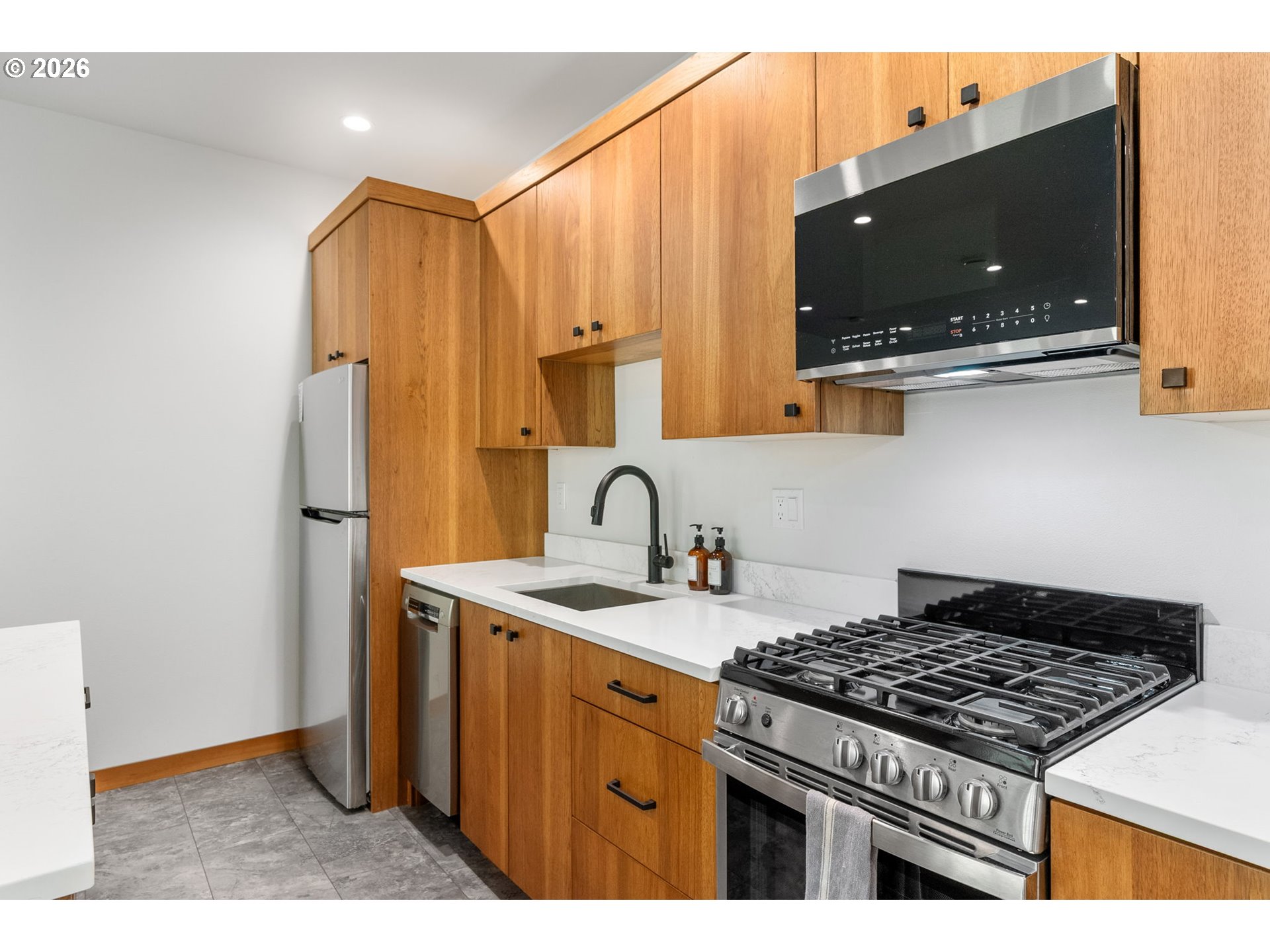 BuiltinOven, Cooktop, Dishwasher, Island, Microwave, Pantry, Quartz, SolidSurfaceCountertop, StainlessSteelA