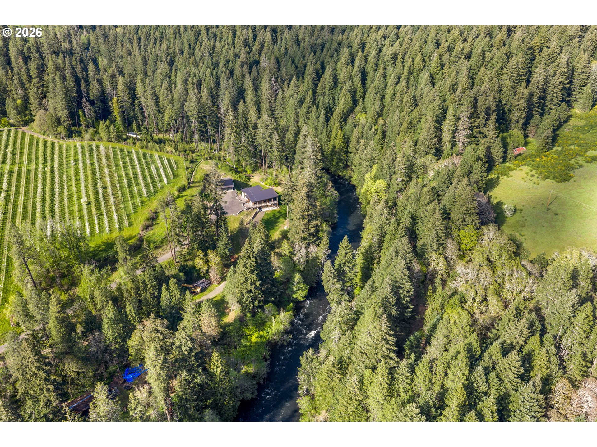 Boaters, anglers and river lovers - this is your dream! This one-of-a-kind riverfront jewel features low-bank frontage on the breathtaking White Salmon River just above the iconic Husum Bridge. This stunning 3,763 sq ft modern home has 5 bedrooms and 4 bathrooms, perfectly blending contemporary design with the tranquility of nature. Set on 1.95 private, gated acres, the property delivers exceptional privacy along with direct river access in one of the Gorge’s most sought-after locations.The main level features sleek concrete floors and a chef’s dream kitchen complete with gas cooktop, double wall ovens, stainless steel appliances, expansive counter space, large island, and walk-in pantry. The adjoining great room is a showstopper with a gas fireplace and dramatic floor-to-ceiling glass that frames the river below. The primary suite offers a peaceful retreat with a spacious walk-in closet and spa-inspired ensuite bath featuring double vanities, a walk-in shower, and soaking tub.The lower level offers a full second kitchen, generous living area—ideal for guests, another bedroom with ensuite bath and two more bedrooms ideal for retreats with family and friends or rental flexibility.Step outside to a hot tub spa and a large grassy yard that gently flows down to the river’s edge, creating a perfect setting for relaxation and recreation. Perched above the water is a charming “fishing cabin,” complete with a ping pong table, offering a fun and unique chill space right over the river.Built with energy-efficient green design, the home includes super insulation, radiant in-floor heat, zonal cooling, a heat recovery ventilator, and a generator for backup power, ensuring comfort and efficiency year-round.An oversized 3-car garage provides ample storage for vehicles and gear. Whether you’re seeking a private family retreat, luxurious second home, or investment opportunity, this property delivers with a proven short-term rental history and unforgettable setting.