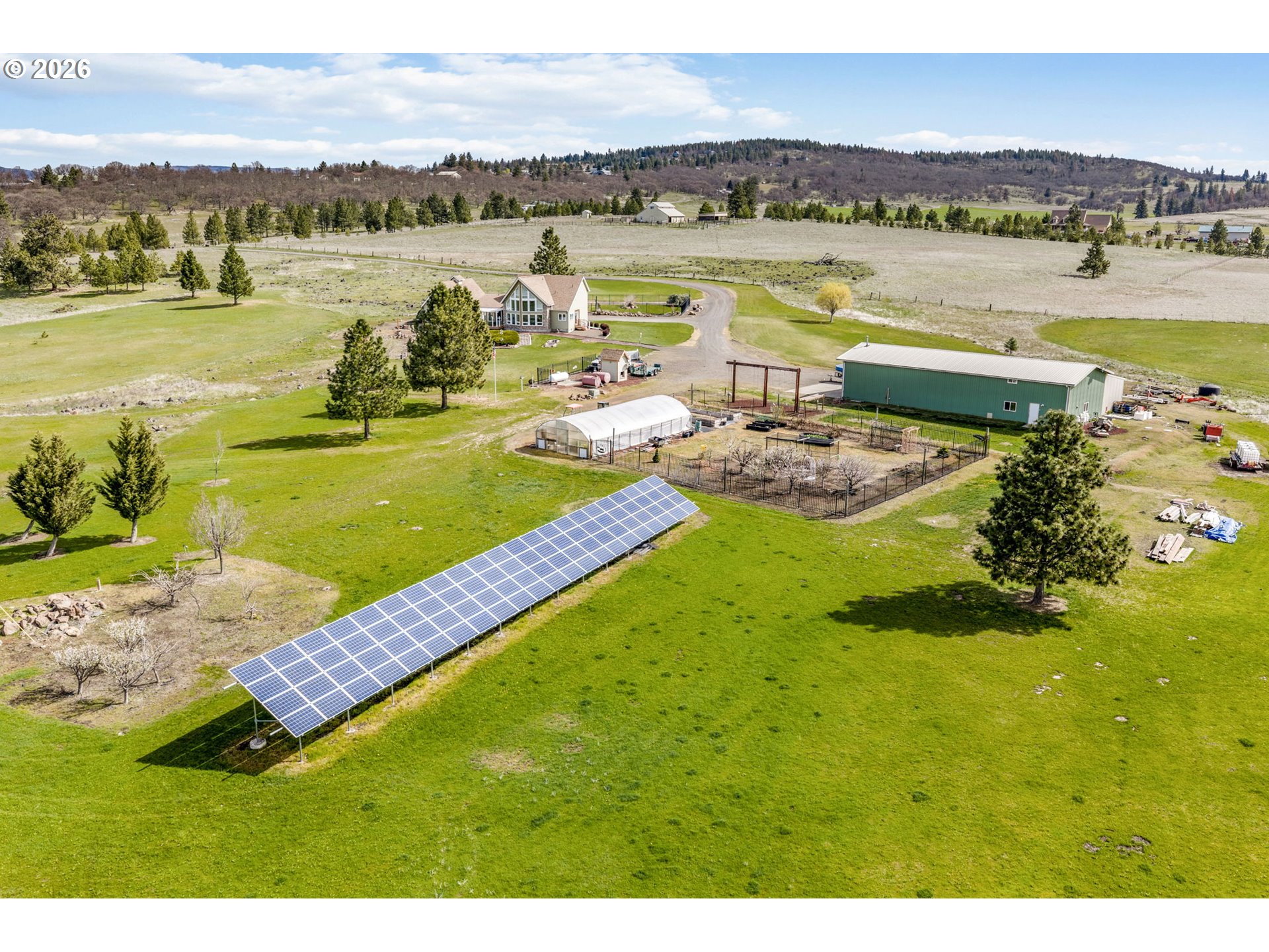 Wake up to sweeping 3-mountain views and the quiet luxury of owning your own 42.22-acre retreat. This custom 3-bedroom, 2.5-bath residence offers an elevated lifestyle defined by space, privacy, and purpose—where every sunrise feels like a getaway and every sunset reminds you you're home. Designed for both comfort and capability, the property blends refined living with unmatched functionality. Whether you're hosting under wide-open skies, creating, growing, or simply enjoying the peace of your surroundings, this estate delivers a rare sense of independence and possibility. At the heart of the property is a 30' x 80' shop with concrete floors, double doors, 220/110 power, and a dedicated insulated/heated storage area—ideal for projects, business use, or storing what matters most. A separate insulated workshop with heat, A/C, and 220/110 power offers year-round productivity. A canning kitchen building is fully equipped with laminate flooring, propane stove/oven, counters, sink, and two man doors—perfect for preserving harvests or expanding your homestead lifestyle. Above, a private 1-bedroom apartment with bathroom provides space for guests, extended living. An enclosed lean-to with dual doors adds even more versatility. A second living space is found in the 24' x 45' metal carport structure, complete with cedar storage cabinets, a bathroom with shower, and an additional 1-bedroom apartment—ideal for multi-generational living or private guest quarters. Outdoors, cultivate your vision with a fenced garden area and a 20' x 48' greenhouse, all set against a backdrop of stunning natural beauty. Built for resilience and efficiency, the property features 88 solar panels to offset energy use, along with a 30 kW diesel generator and substantial 1,100-gallon fuel storage, offering peace of mind and true self-reliance. This is more than a home-it's a sanctuary,m a legacy, and a lifestyle few ever achieve. Space to breathe. Freedom to live on your terms. See featured list.