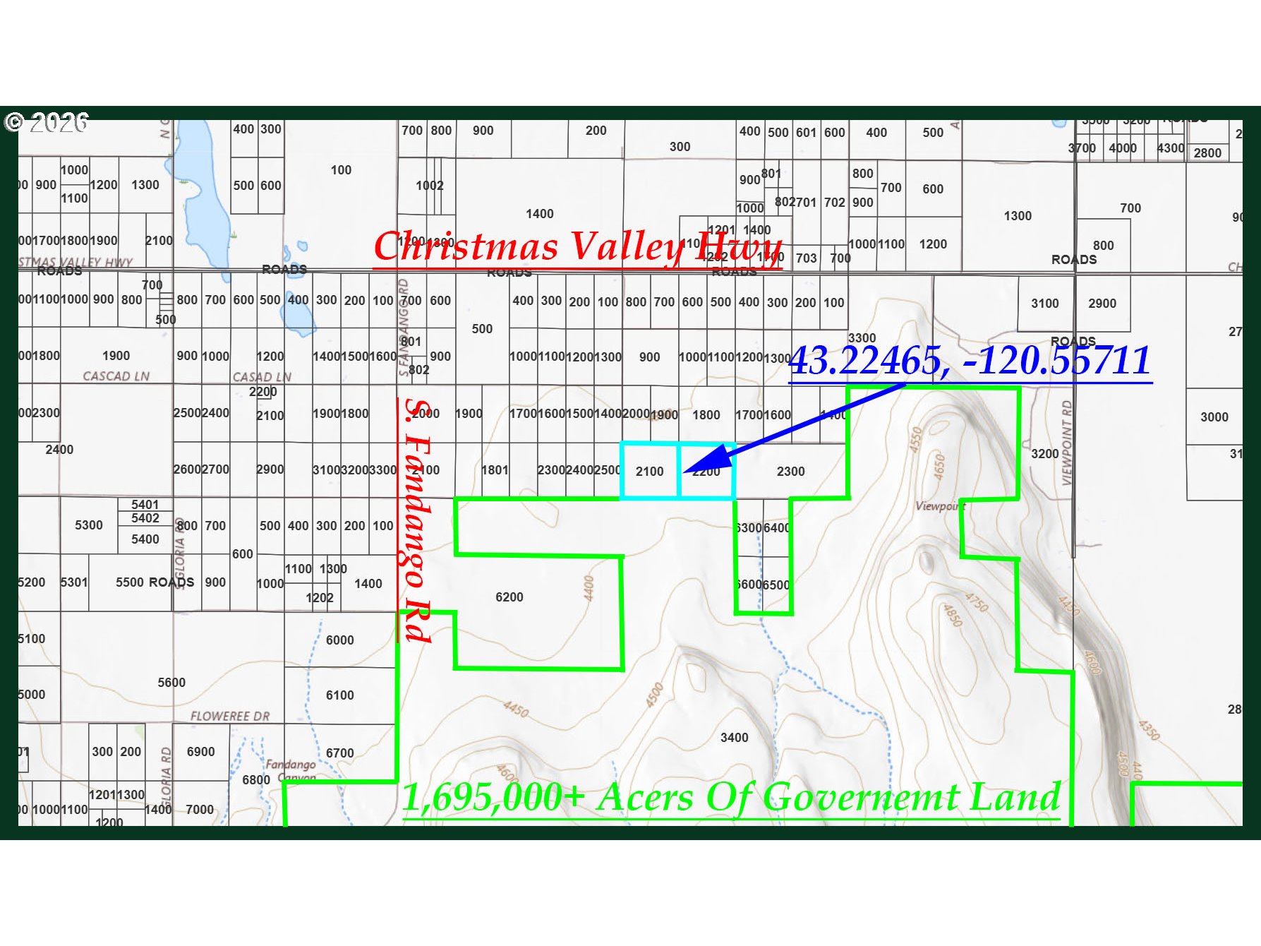 Discover an extraordinary opportunity to own two, 40 acres of pristine land in Christmas Valley, Oregon—a rare find that offers both adventure and tranquility. While having direct access to over 1.5 million acres of protected government land right at your doorstep, it creates endless possibilities for exploration, recreation, and escape from everyday life. With the Christmas Valley Golf Course, Lake, and iconic sand dunes just minutes away, this property serves as the ultimate base camp for outdoor enthusiasts seeking unforgettable experiences. While a Conditional Use Permit (C.U.P.) is required to develop your dream homestead or cabin retreat under Lake County Zoning regulations, the untouched land is well worth it. These parcels showcase breathtaking, unobstructed views of the landscape, and as part of the Oregon Outback—officially designated the world's largest Dark Sky Sanctuary in 2024—you'll enjoy a level of serenity and world-class stargazing that simply cannot be found elsewhere. This is more than land; it's your gateway to a lifestyle defined by natural beauty, freedom, and wonder.
