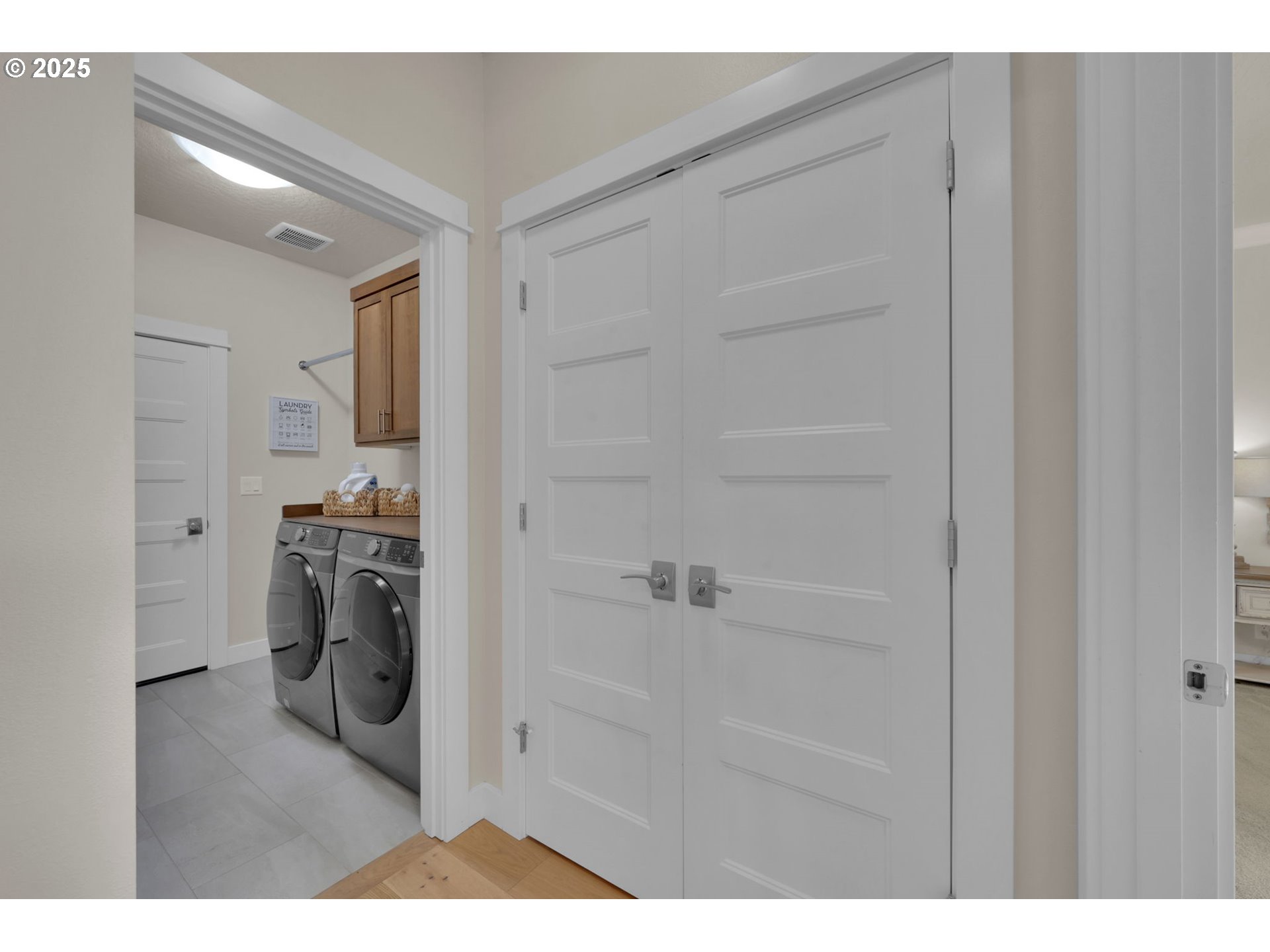 Move-In Ready Before the Holidays!This charming, well-maintained home built by Bruce Weichert Custom Homes is now vacant and ready for immediate occupancy.Enjoy brand-new carpet installed in November 2025, complementing the original real wood floors and tile that highlight the quality craftsmanship of this 2001-built home.Step inside to a bright, open-concept layout featuring a spacious living room, warm wood flooring, and a cozy dining area that flows seamlessly into the kitchen. The kitchen offers stainless steel appliances, a gas range, and includes the stainless refrigerator, gas dryer, and washer—everything you need to move right in!The primary suite provides a private full bath and a generous walk-in closet. Step outside to a freshly updated backyard with an extended privacy fence, new lush grass, and plenty of space for entertaining, gardening, or simply relaxing.Built on a solid concrete perimeter foundation with a clean, accessible crawl space, this home combines comfort, quality, and long-term functionality.Conveniently located near Willamalane parks, Clearwater Park along the McKenzie River, schools, shopping, and freeway access—you’ll enjoy quiet neighborhood living with quick access to city amenities.