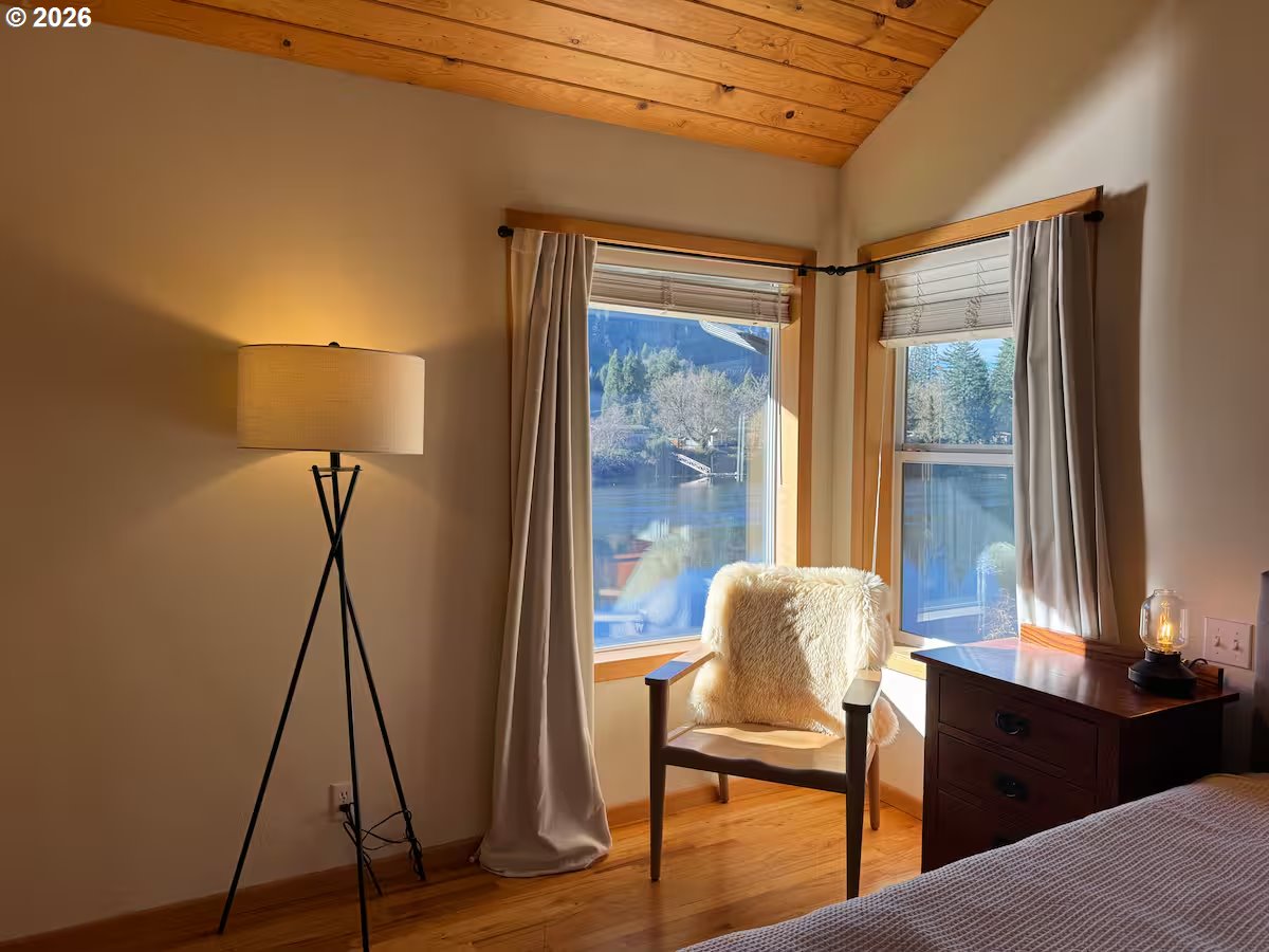 Come enjoy this beautiful riverfront 2-bedroom, 2-bathroom home with private access to the Siuslaw River! Start your morning on the deck with breathtaking river and mountain views, watching wildlife including birds, fish, seals, and turtles. After breakfast, grab a kayak and head down to your private dock to explore the river, or go take a walk on the beach in Florence for added fun. Seasonally enjoy the bounty of pears, apples, blueberries, and blackberries from your yard and garden! This impressive 2,428 sq ft two-story daylight ranch sits on 0.71 acre, and features vaulted ceilings, hardwood floors, and abundant natural light from double-pane windows. Prepare your favorite meals in the stylish kitchen boasting quartz counters, stainless steel appliances, built-in range and refrigerator, cook island with downdraft, and eat bar. The upper level primary suite offers a walk-in closet with organizer, soaking tub, and full bath. The daylight basement provides excellent flex space. Recent updates include a new water filtration system (7/21), new water heater (7/22), and new water softener (10/24). Exterior features include cement siding, metal roof, attached oversized 2-car garage, RV/boat storage, patio, and garden areas. Located 12 miles east of Florence on Highway 126. A rare riverfront opportunity combining scenic beauty, recreation, and comfortable living! Property sold furnished with acceptable offer. Owner is a licensed Real Estate Broker in Oregon.