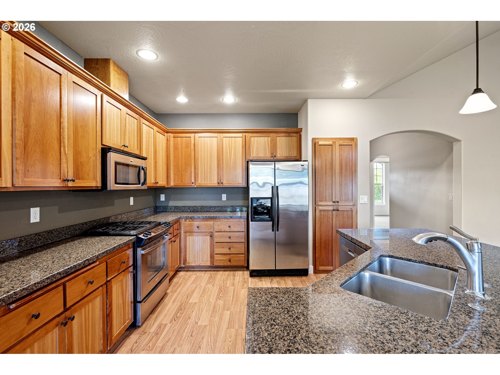 Stunning Bruce Wiechert–built home on a spacious lot, ideally located on a quiet, wide non-through street. This thoughtfully designed custom home offers the quality and amenities today’s buyers expect. Step through the foyer into a light-filled living space, perfect for both everyday living and entertaining. The expansive living room features a gas fireplace and flexible layout options to suit your style. The kitchen is beautifully appointed with custom cherry cabinetry, granite countertops, stainless steel appliances, and a walk-in pantry. The split-level floor plan provides privacy, highlighted by an oversized primary suite with a walk-in closet and a well-appointed bathroom featuring double sinks, a soaking tub, and a separate shower. Enjoy outdoor living year-round in the large backyard with a covered patio ideal for staying dry in the winter and cool in the summer. Additional highlights include a two car garage with attic storage and convenient rear street access, offering excellent potential for RV or boat parking. Located directly across from Rain Tree Park, with basketball courts and two play structures. Peaceful setting with convenient access to schools and shopping. This well-maintained home is a must-see!
