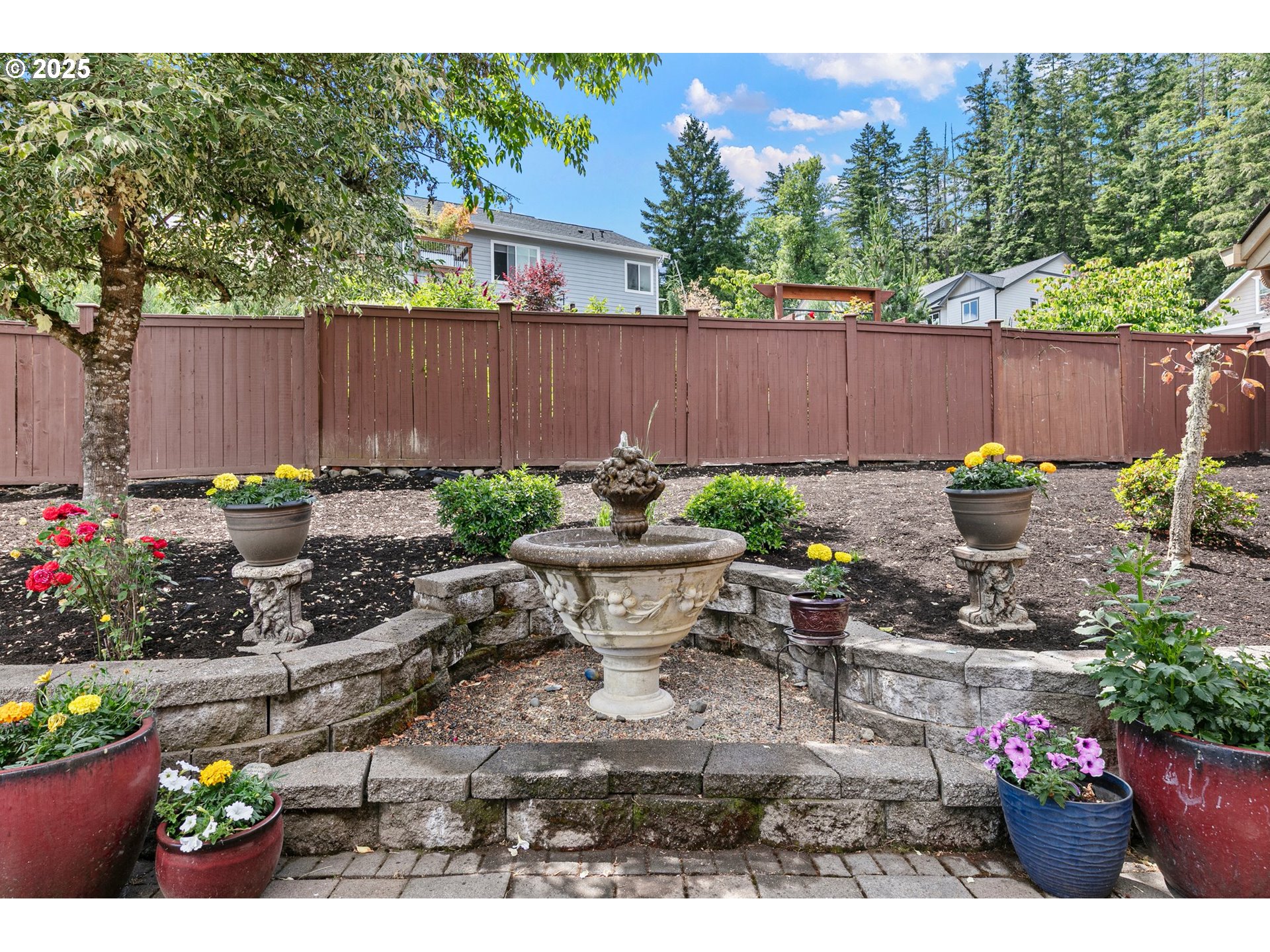 CoveredPatio, Fenced, Garden, Patio, RaisedBeds, WaterFeature, Yard
