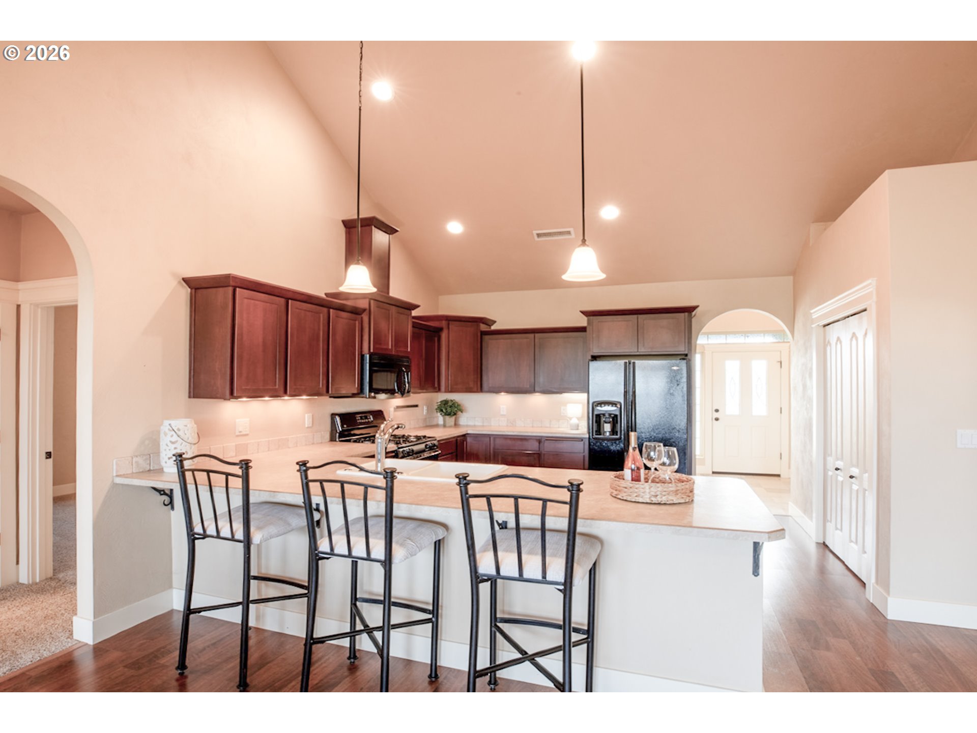 OPEN HOUSE SUNDAY January 25th 1:45pm-3:30pm. Set on a desirable corner lot with no homes behind it, this beautifully maintained single-level home offers privacy, comfort & a thoughtfully designed layout in the heart of Creswell. Surrounded by pastoral views the home feels both peaceful & welcoming from the moment you arrive. Inside, the floor plan offers excellent separation of space, ideal for both everyday living & entertaining. A more formal living room sits just off the entry & is anchored by a cozy gas fireplace—perfect for quiet evenings or hosting guests. The heart of the home opens into a stunning vaulted great room where the kitchen, dining area & great room come together in a truly open-concept design. Vaulted ceilings & walls of windows fill the space with natural light, highlighting the engineered hardwood flooring & creating a bright, airy atmosphere. The kitchen opens seamlessly to the great room & features a long eat-bar, making it an ideal gathering place for entertaining or casual meals. A door from the great room provides easy access to the private, fully fenced backyard—an inviting outdoor retreat with raised garden beds & serene views. Whether you’re enjoying a morning coffee or hosting a summer evening get-together, the outdoor space offers both beauty & privacy. The home's layout is especially well designed as the primary suite is located on one side of the house & two additional bedrooms on the opposite side, providing wonderful separation of space. The primary suite feels like a private retreat, featuring two walk-in closets & a spacious bathroom with dbl sinks, a jetted soaking tub & a separate shower. The 2 full bathrooms in the home are well-appointed & thoughtfully placed to serve both residents & guests. Its location adds to the appeal, with Emerald Valley Golf Club less than 2 miles away & Creswell’s charming small-town feel, local dining & proximity (15 minutes) to Eugene & Springfield make it an ideal place to call home.
